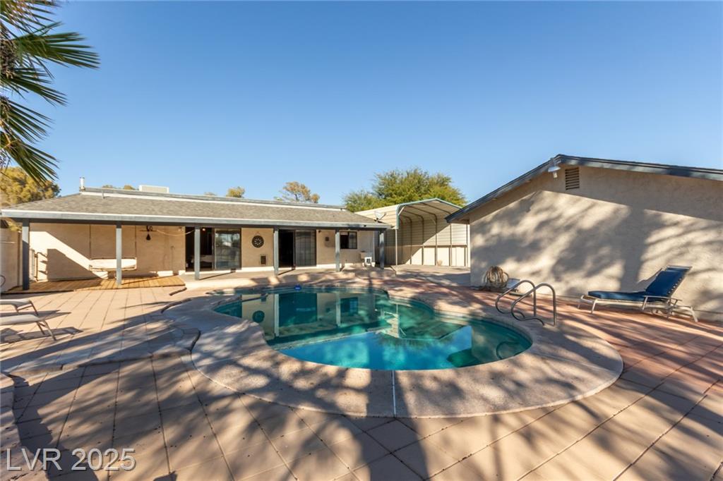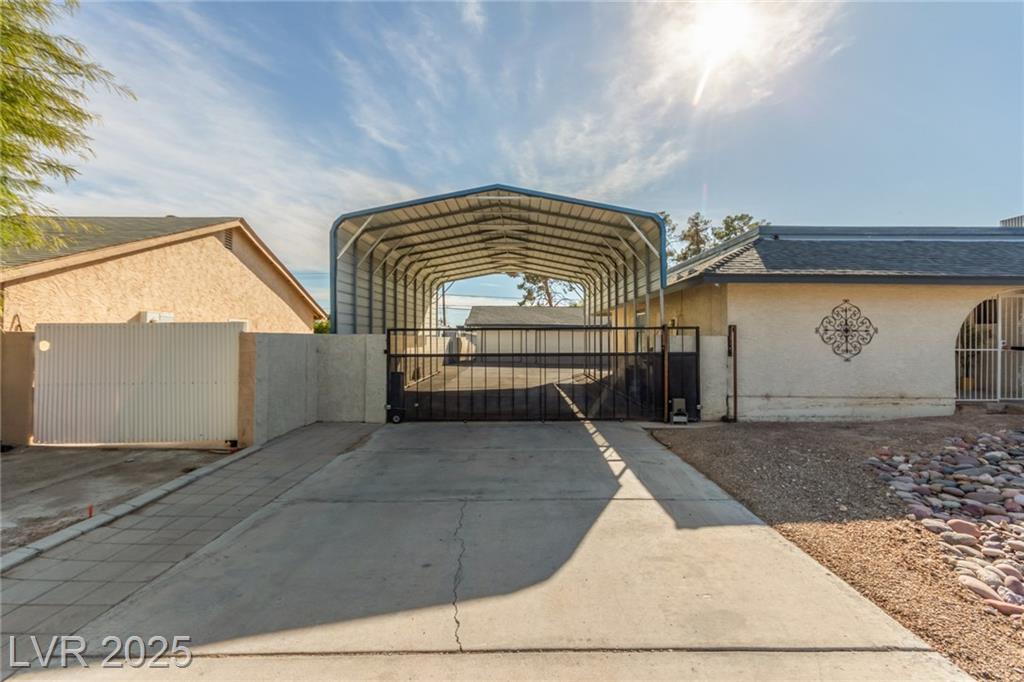 Discover this ranch-style home set on an impressive 13,000+ sq. ft. lot, offering unparalleled space and versatility. The property boasts a towering 14 foot tall x 40 Long x 22 Wide carport/RV Parking with built-in lighting, capable of accommodating up to four vehicles, your boat, trailers, or RV—all with 50-amp service. You'll also find a detached three-car garage, providing even more storage and parking options, all tucked securely behind a motorized gate. Inside, the open floor plan is perfect for gatherings, featuring a stunning 9x5 granite kitchen island and a spacious dining area with views of the sparkling pool. This 4-bedroom, 2.5-bath home is designed for comfort and convenience. For equestrian enthusiasts, the property is zoned for horses and includes rear access to an alley that leads directly to the community horse arena. With so much to offer, this property is a rare find that perfectly balances outdoor functionality and indoor charm.