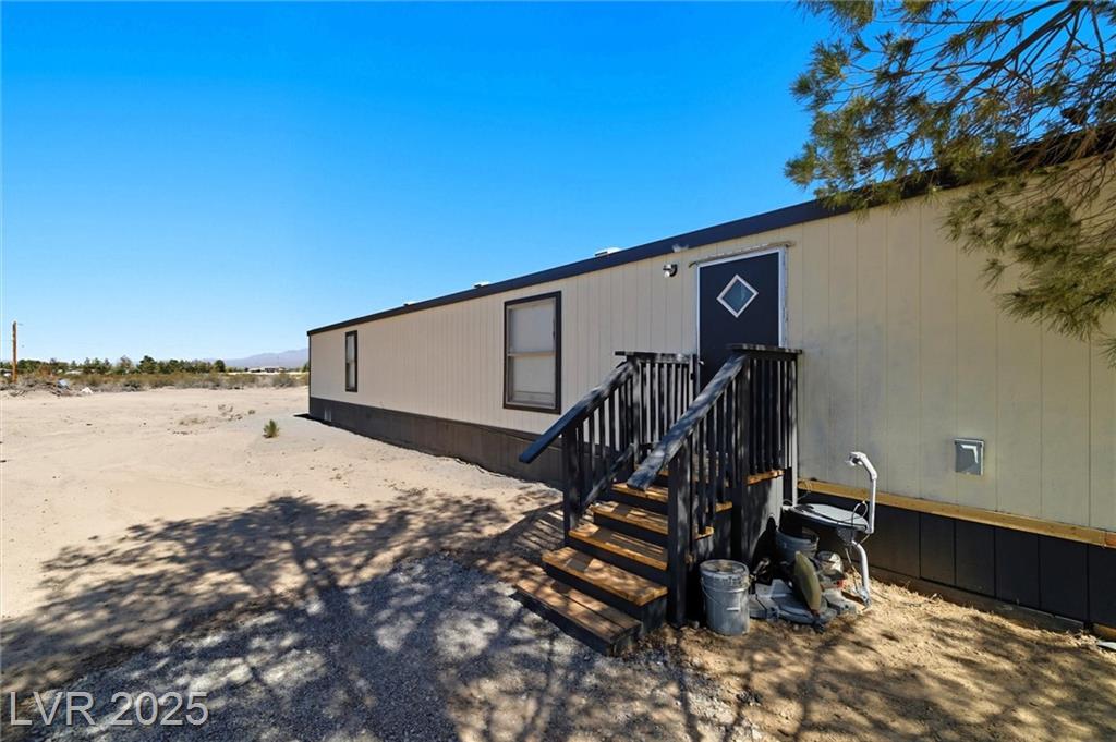 Don’t miss this incredible opportunity in the fast-growing town of Pahrump! Just a short drive from Las Vegas, this move-in ready 3 bed, 2 bath home sits on a sprawling 2.75-acre lot with no HOA and private well with water rights — the possibilities are endless! Step inside to fresh interior and exterior paint, brand new wood-look LVP flooring, and a new stove and dishwasher. This home is clean, modern, and ready for you today! Need space? You’ve got it! A massive 1,200 sq. ft. detached garage with plumbing and electrical is perfect for a workshop, garage, storage, or even a future ADU. Manufactured home is converted to real property and built in 2015. Eligible for FHA, VA, and Conventional financing. Homes like this don’t come around often — schedule your showing now before it’s gone!