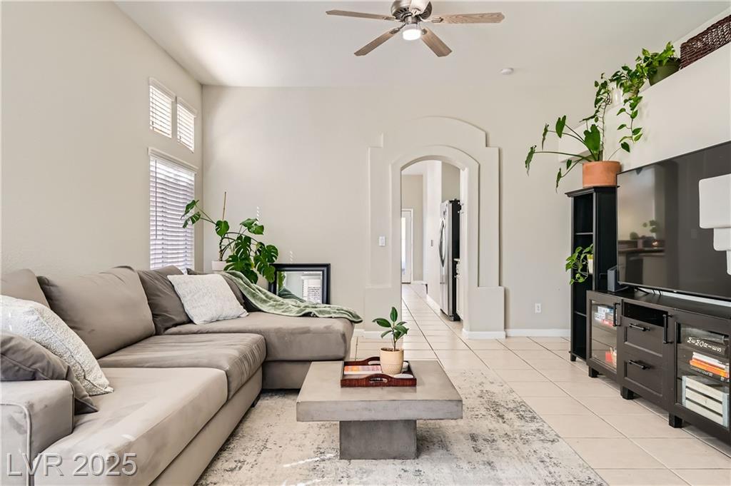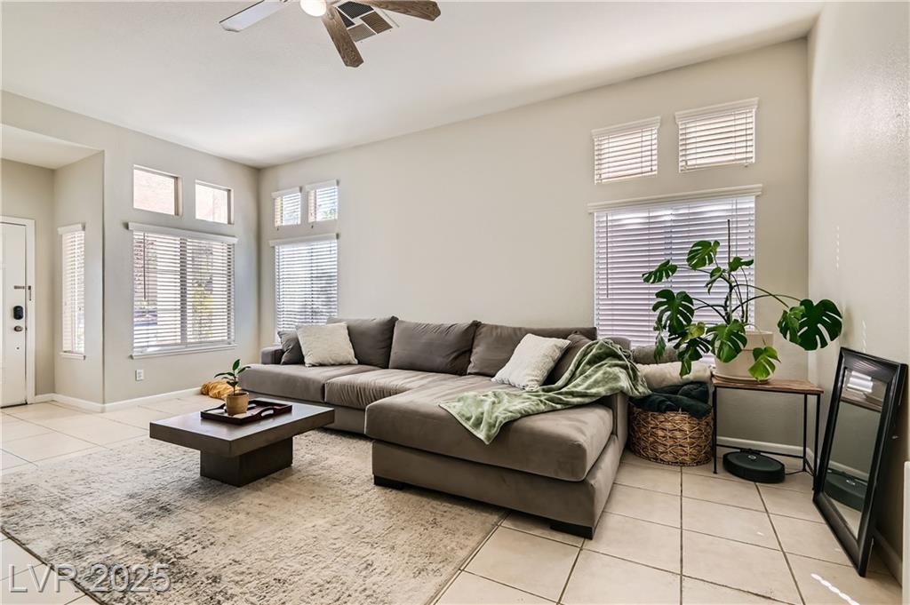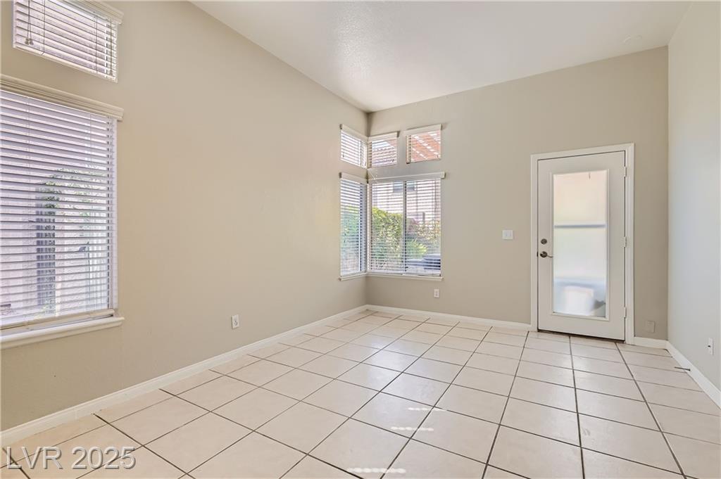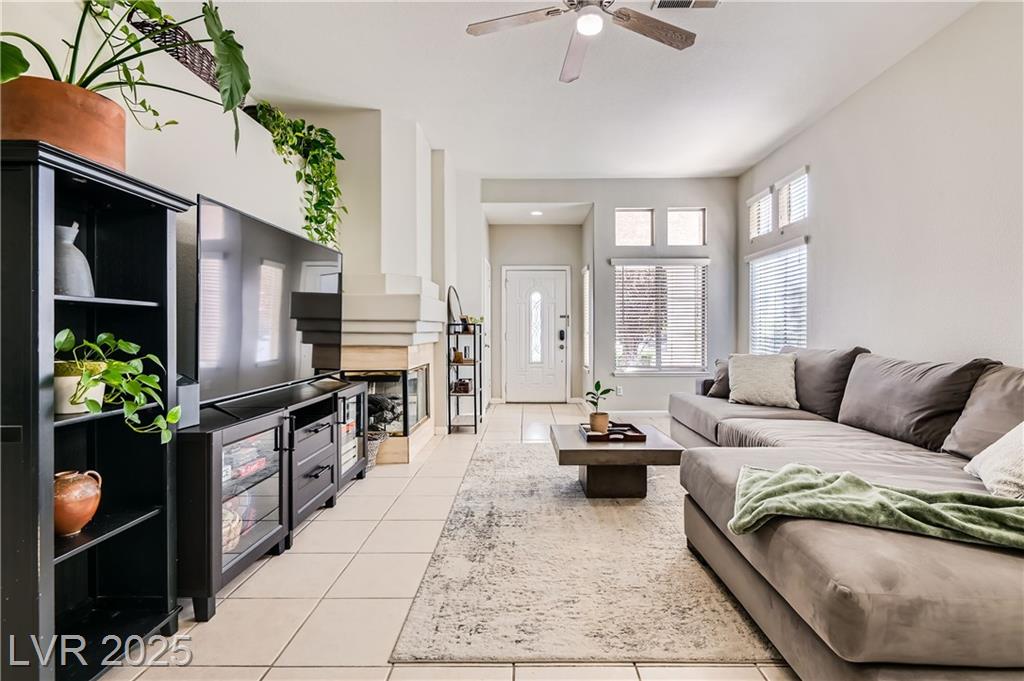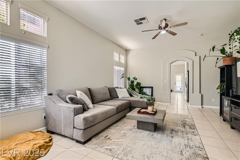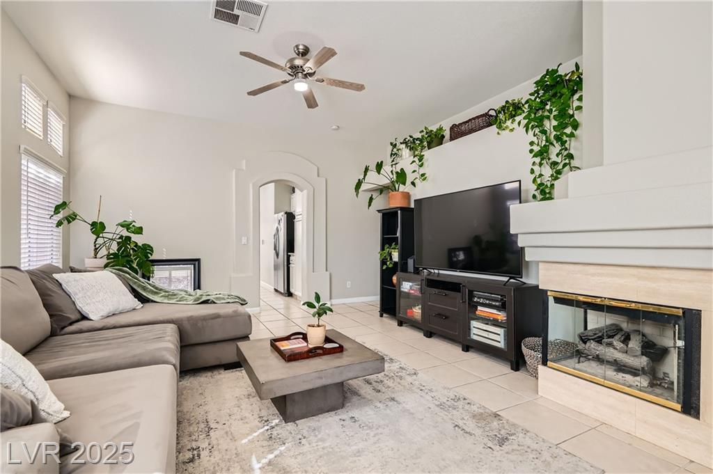 STUNNING SINGLE-STORY HOME IN THE HEART OF SUMMERLIN! CONVENIENTLY LOCATED NEAR PARKS, POOLS, SHOPPING, DINING, ENTERTAINMENT, FREEWAYS & DOWNTOWN SUMMERLIN. BE GREETED BY A CHARMING COVERED FRONT PORCH. THIS 3 BEDROOM, 2 BATH HOME FEATURES A BRIGHT, OPEN FLOORPLAN WITH VAULTED CEILINGS AND ABUNDANT NATURAL LIGHT. ENJOY ELEGANT ARCHED DOORWAYS, LOW-MAINTENANCE TILE FLOORING, AND FRESH MODERN PAINT THROUGHOUT. SPACIOUS FORMAL LIVING ROOM OFFERS A GAS FIREPLACE AND SOARING CEILINGS. KITCHEN INCLUDES A LOVELY GARDEN WINDOW, STAINLESS STEEL APPLIANCES, BREAKFAST BAR, GRANITE COUNTERTOPS, DINING AREA, AND SLIDING GLASS DOOR WITH DIRECT ACCESS TO THE BACKYARD. LARGE PRIMARY SUITE FEATURES BAY WINDOWS, WALK-IN CLOSET, CEILING FAN, AND DOUBLE FRENCH DOORS TO EN-SUITE BATHROOM WITH DOUBLE SINKS AND SPACIOUS SHOWER. SECONDARY BEDROOMS ARE GENEROUSLY SIZED WITH AMPLE CLOSET SPACE. PRIVATE BACKYARD OFFERS A LARGE COVERED PATIO AND LOW-MAINTENANCE LANDSCAPING—PERFECT FOR ENTERTAINING OR RELAXING.