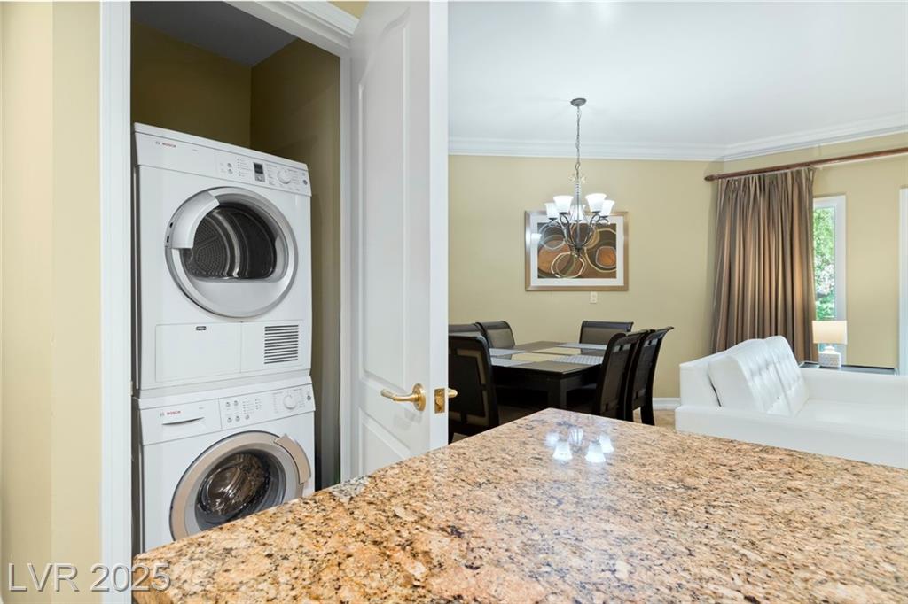 SPACIOUS POOLSIDE TWO-BR CONDO IN BEAUTIFUL LAKE LAS VEGAS - ALL UTILITIES INCLUDED! This furnished unit is perfect for those looking for the resort lifestyle in a vibrant luxury community. Situated in the heart of Montelago Village, the home offers lovely views of a landscaped courtyard and greenbelt area with direct outside access to an oversized patio as well as the community pools and spa amenities. It has an attractive open style layout with many upgrades including travertine flooring throughout, track and recessed lighting, remodeled bathrooms and stackable washer-dryer in the suite. The kitchen has a generously sized island with granite counters and white cabinetry. Just steps away from village restaurants and services, Seasons market, special events, water sports, walking-biking trails and the Reflection Bay golf course is nearby. Great as a primary residence, vacation home or investment property. Just 30 min. from the famous Las Vegas Strip! HOA also includes cable & internet.