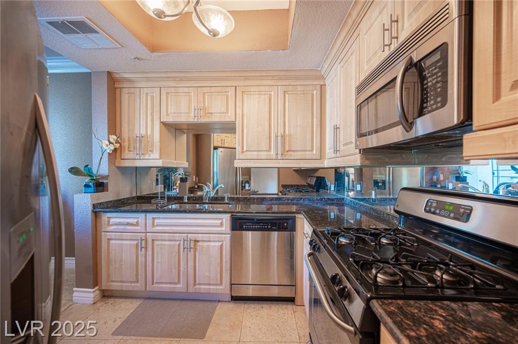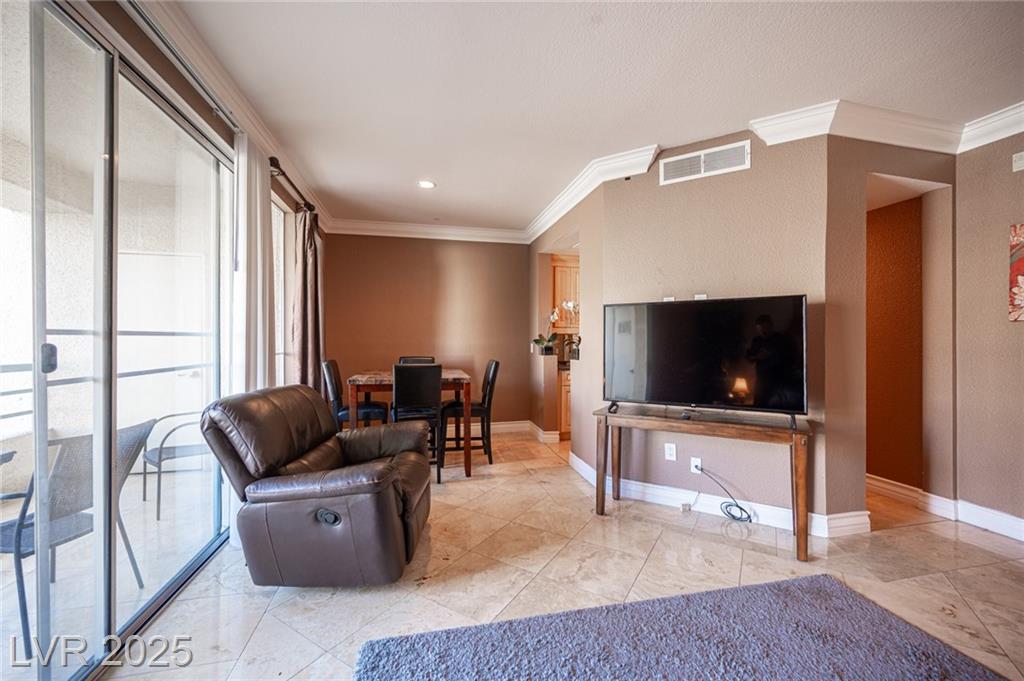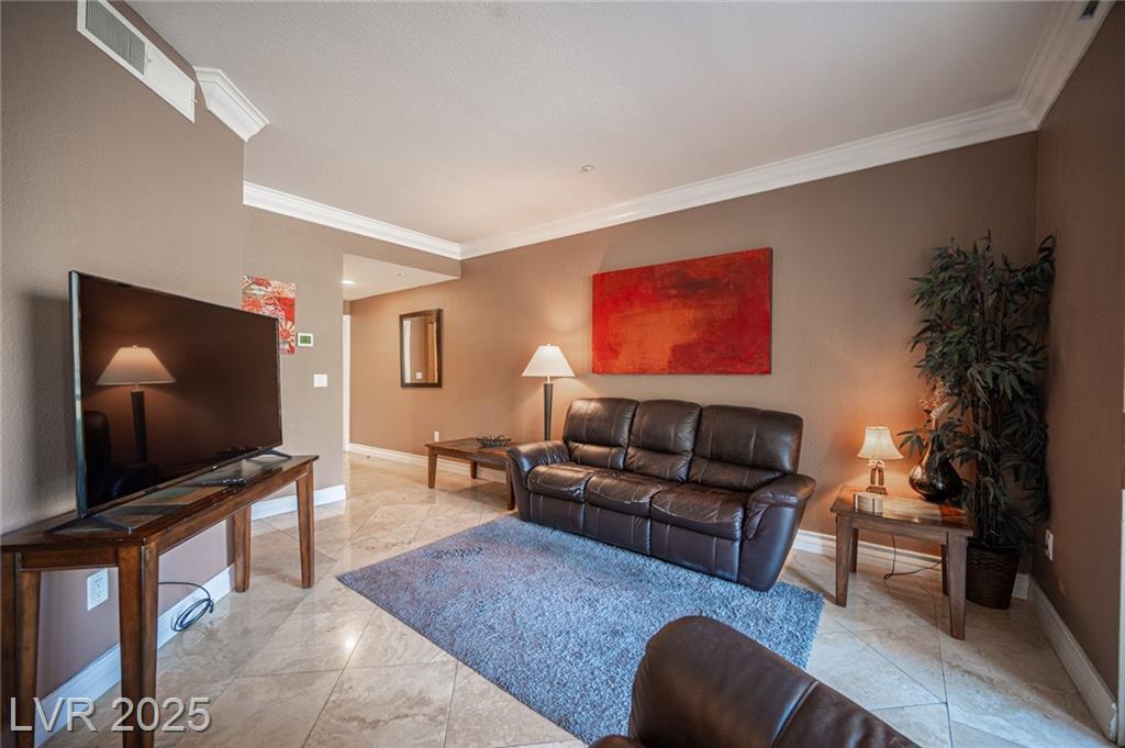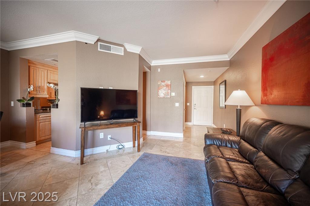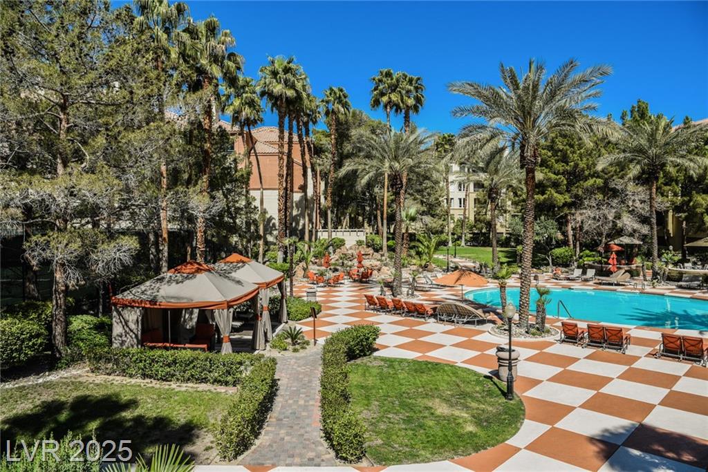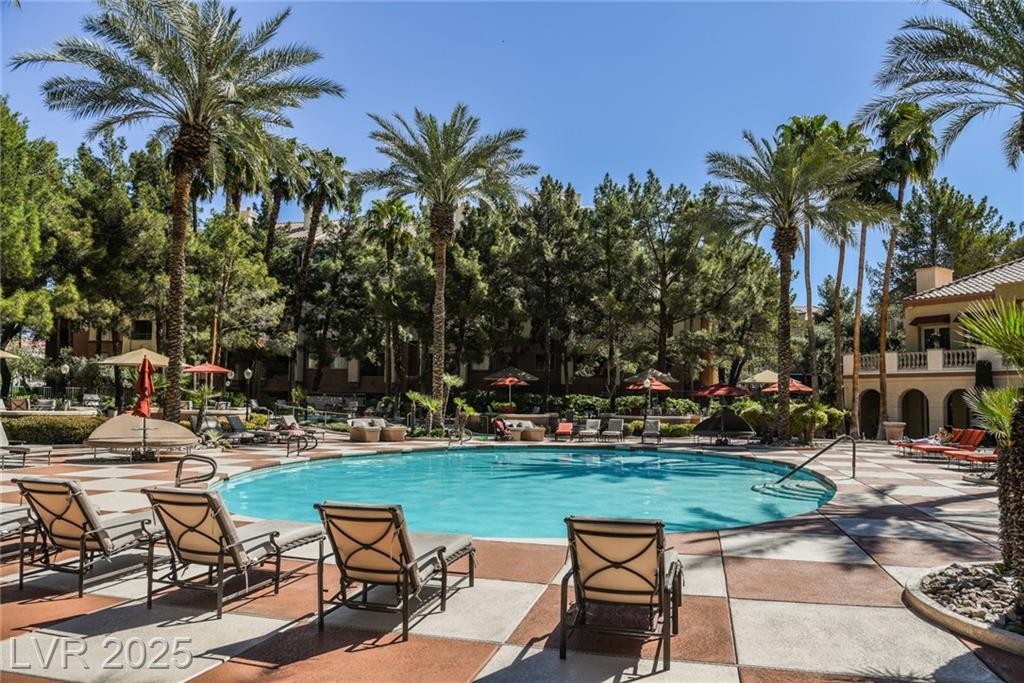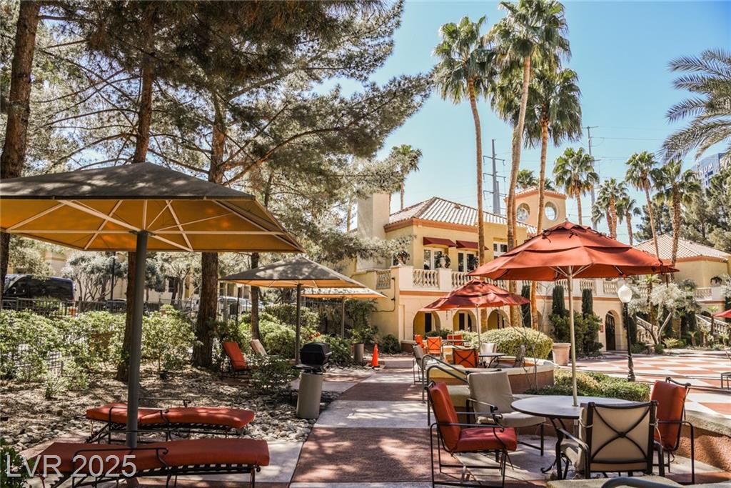 Fully Furnished 1 Bed 1 Bath Condo. Guard Gated community within walking distance to the strip. Beautiful view from the balcony. Granite Counter tops. Stainless Steel Appliances. Resort Style Pool with Gym, Tennis Courts, and Racquetball Courts. Gated Parking Garage. MONTH TO MONTH leasing (30 Day Minimum.)