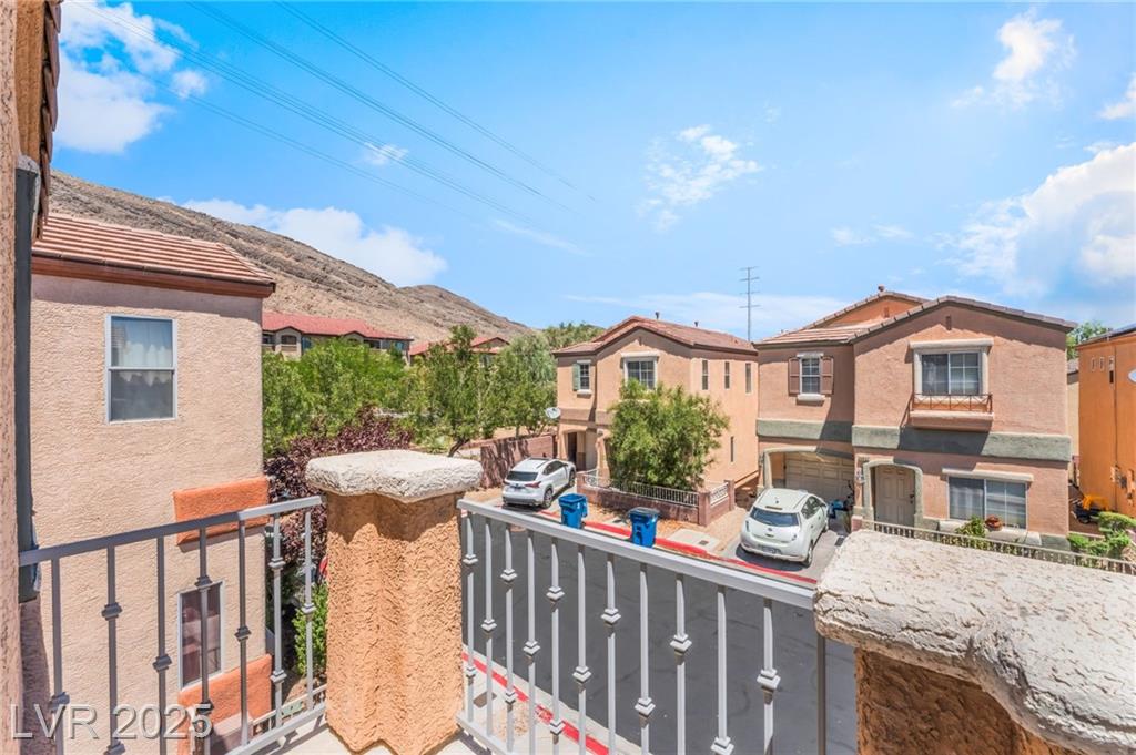 Discover this well-maintained 2-bedroom home located in the desirable Lone Mountain area. The kitchen features a convenient breakfast bar, ample cabinetry, and essential appliances. A half bathroom is located downstairs for added ease. Upstairs, you'll find two spacious bedrooms each with their own bathroom, including one with a private balcony offering beautiful mountain views. A small upstairs nook provides the perfect space for a computer desk or reading area. Enjoy the low-maintenance backyard with desert landscaping—ideal for relaxing or entertaining.