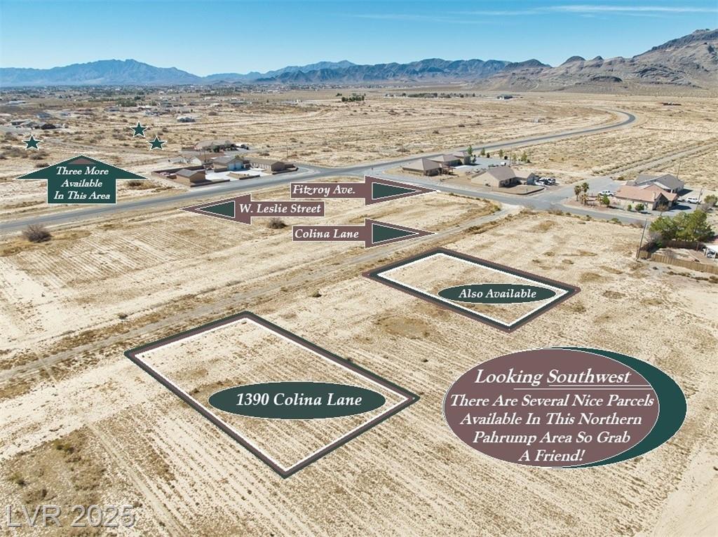 1390 Colina Lane Is Located In Beautiful Northern Pahrump & 10 Minutes From The Center Of Town~~~This .23 Acre Parcel Is Nearly A Quarter Of An Acre & Located In An Established Community With Lovely Custom Homes & No HOA~~~Power Is Already Within 250 Feet With Water Lines Just 4 Parcels Away On Fitzroy Ave. & This Nice Parcel Is Priced Right & Far Below "Ready To Build" Properties~~~There Are Two Others Available On Colina Lane & Several Others In This Established, But Still Growing, Neighborhood Nestled Near The Base Of Shadow Mountain~~~If You Are Looking To Add Pieces Of Pahrump To Your Portfolio, This Colina Lane Parcel Offers Nearly A Quarter Acre Of Fine Future Pahrump For An Outstanding Price!