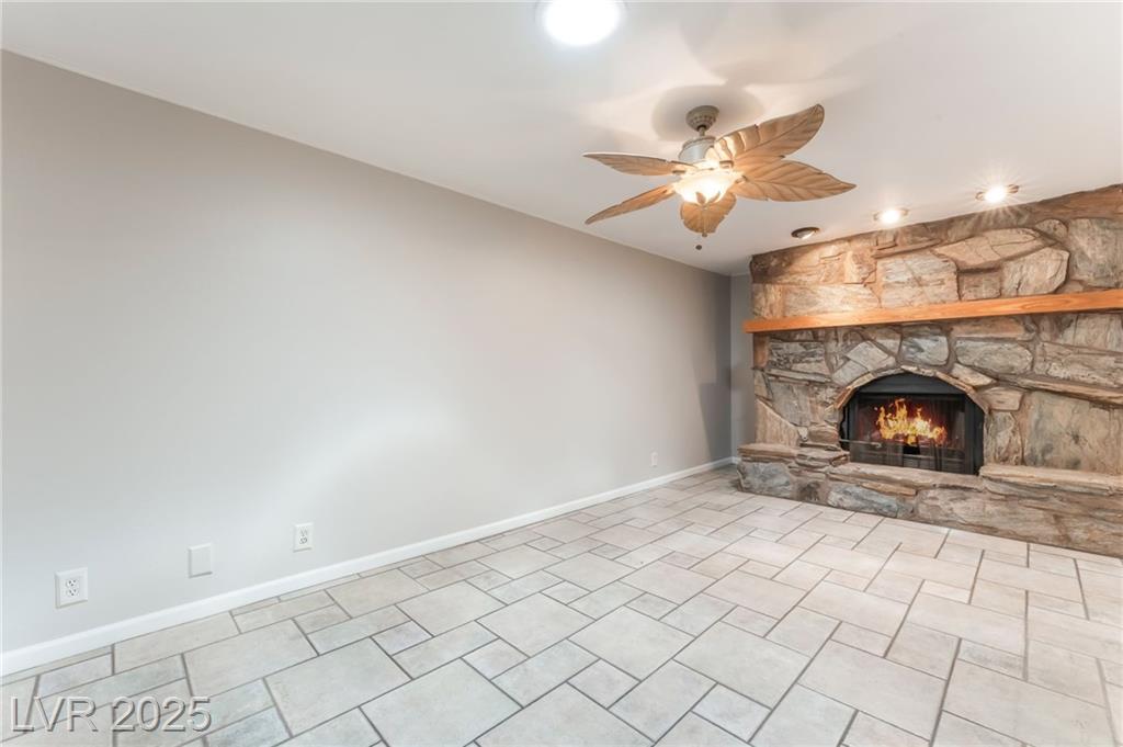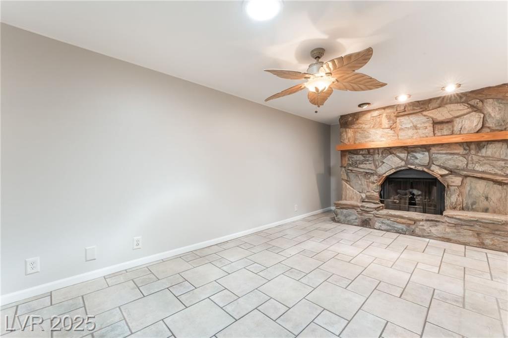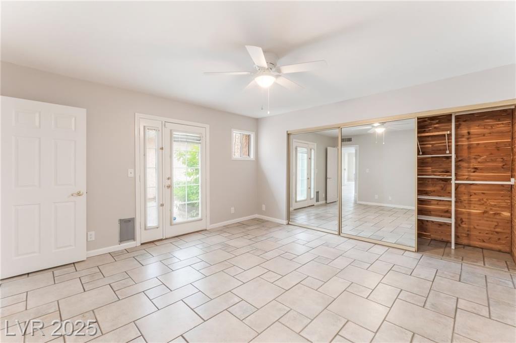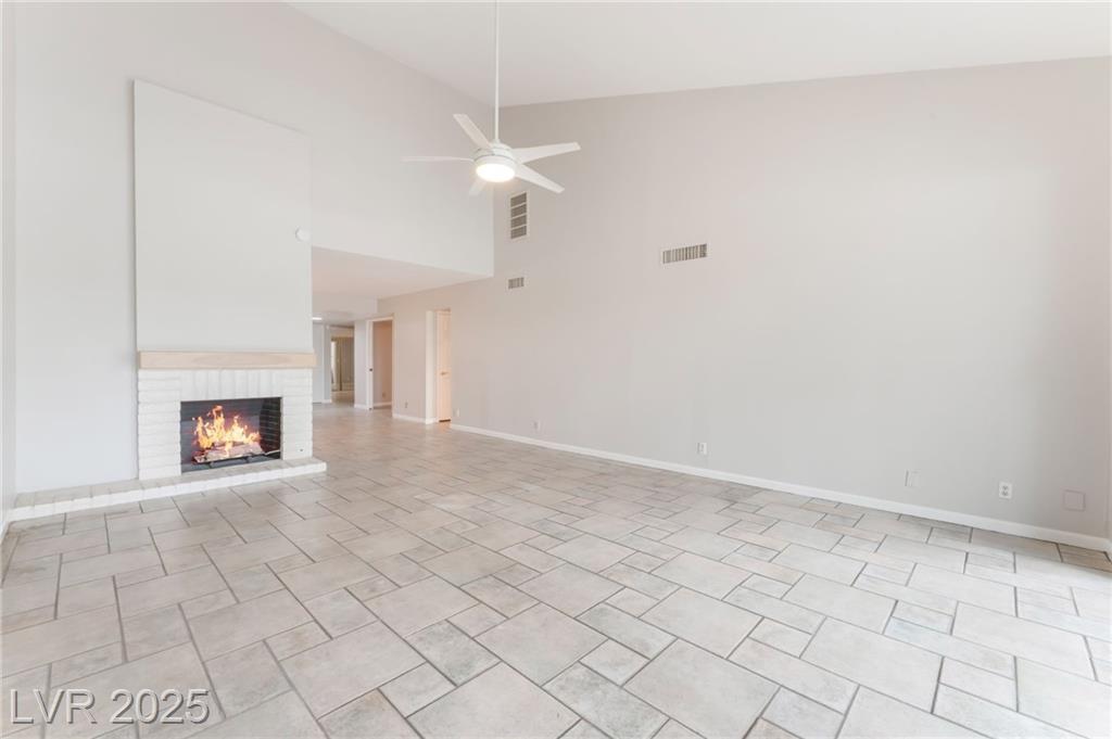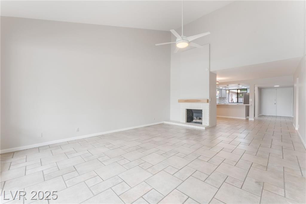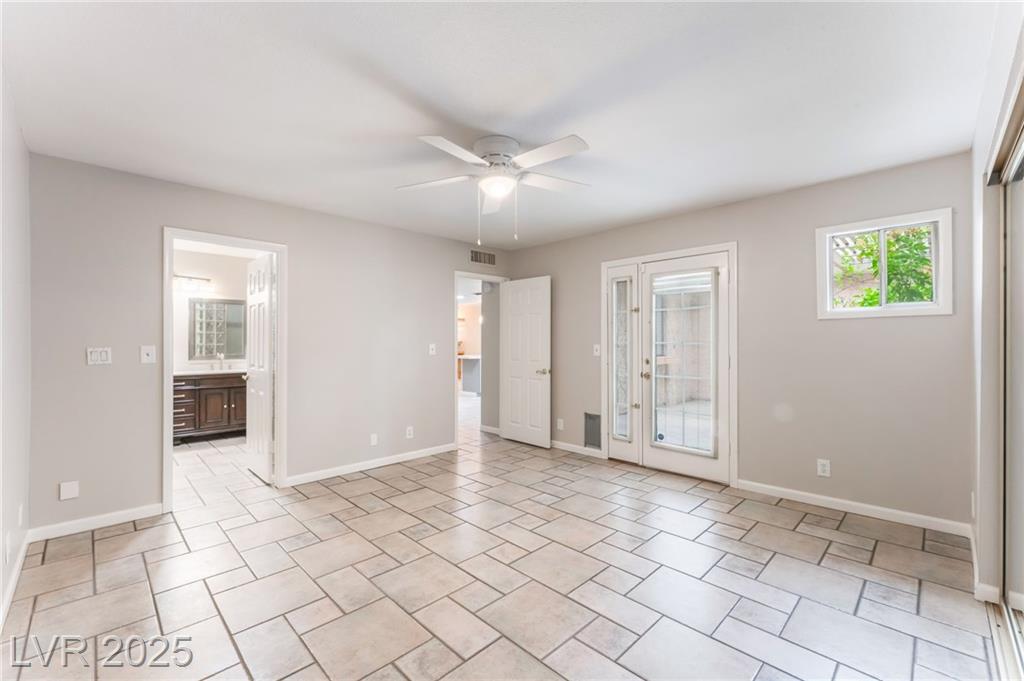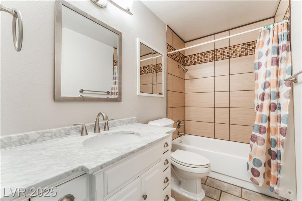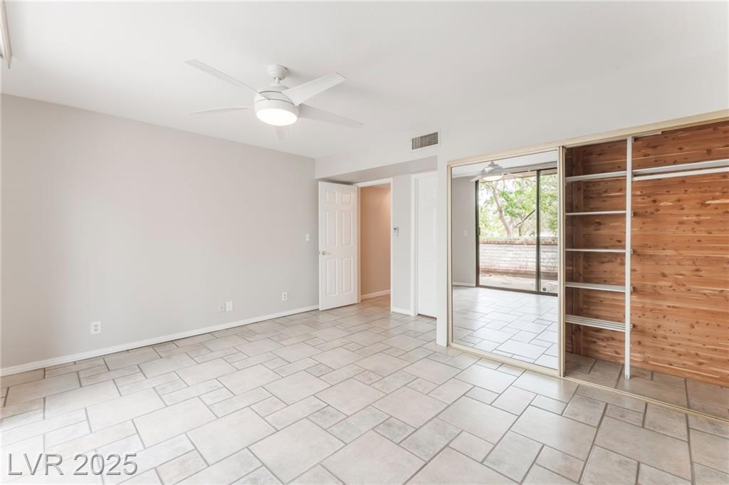 Step into this stunningly upgraded single story townhome in the desirable gated Sunrise Villas community. With vaulted ceilings and fresh interior paint, this bright and open home features sleek quartz countertops, custom cabinetry, a designer farm sink, chic pendant and recessed lighting, tile flooring, ceiling fans, and a fully remodeled custom shower. The stainless steel refrigerator, microwave, and dishwasher are included. Enjoy indoor outdoor living with a peaceful covered patio, lush greenery, a charming garden window, and a private gated courtyard. The spacious garage provides extra storage, and the location offers easy access to the Strip, parks, schools, shopping, and dining. This beautifully maintained property blends modern style, comfort, and convenience in one of the most sought after neighborhoods.