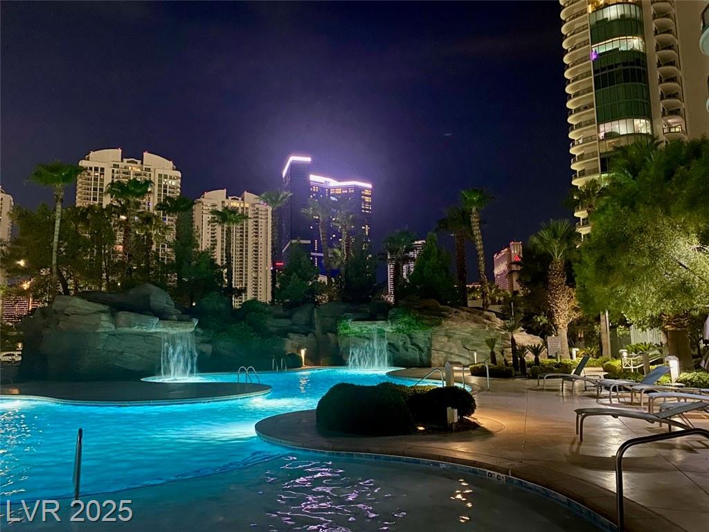 Experience luxury high-rise living at its finest from this STUNNING 22nd floor Turnberry Towers condo with PICTURESQUE VIEWS of the Las Vegas Country Club Golf Course, Strip, & Mountains. This 1 BR, 1.5 BA condo features floor-to-ceiling windows, beautiful kitchen with contemporary European-style cabinetry, granite counters, and SS Appliances. Step out onto your private terrace from either the living room or primary bedroom—to soak in the GORGEOUS views from sunrise to sunset. Spacious Primary BR with textured wallpaper accent wall, custom built in walk in closet & luxury ensuite bath. High rise living doesn't get any better than Turnberry Towers with luxurious 5 star resort style amenities: lush grounds, lagoon style pool with waterfalls, fabulous fitness center, tennis courts BBQ's, putting green, concierge & valet. Wi-Fi Included! Close to Strip, Monorail, Airport & Downtown LV! ** If you're looking for the perfect Vegas Pied-a-Terre - this is the BEST BUY for VIEWS & FINISHES!**