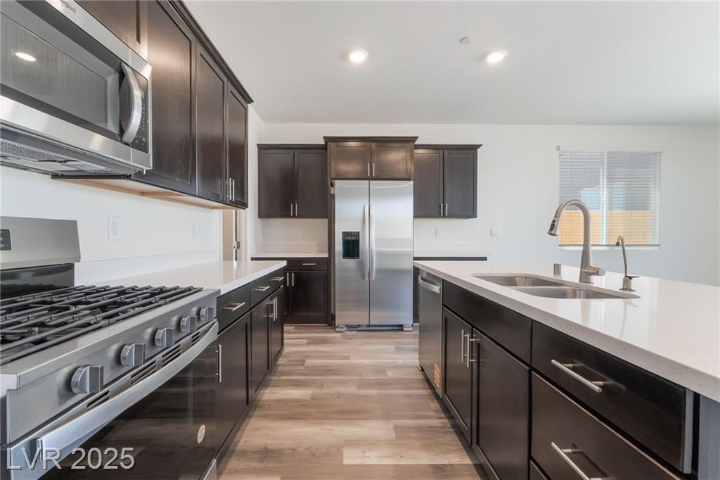 Now leasing a brand-new 4-bedroom home located in the desirable Cadence master-planned community of Henderson, NV. This residence features a large primary suite, generous walk-in closet, and well-appointed en-suite bathroom. The spacious open-concept downstairs layout includes a formal living room, a modern kitchen with granite countertops, custom cabinetry, walk-in pantry, and full stainless steel appliances, and dining area. Additional upgrades include washer and dryer, water softener and purification systems, central alarm, smart home automation, Ring doorbell, and fully landscaped rear yards with turf, paver patio, drip irrigation, low-voltage lighting, and a covered patio. Situated just steps from walking trails and a future park with a pool and recreation area, residents will also enjoy access to Cadence’s extensive amenities including a central park, splash pad, lake, and sports complex.