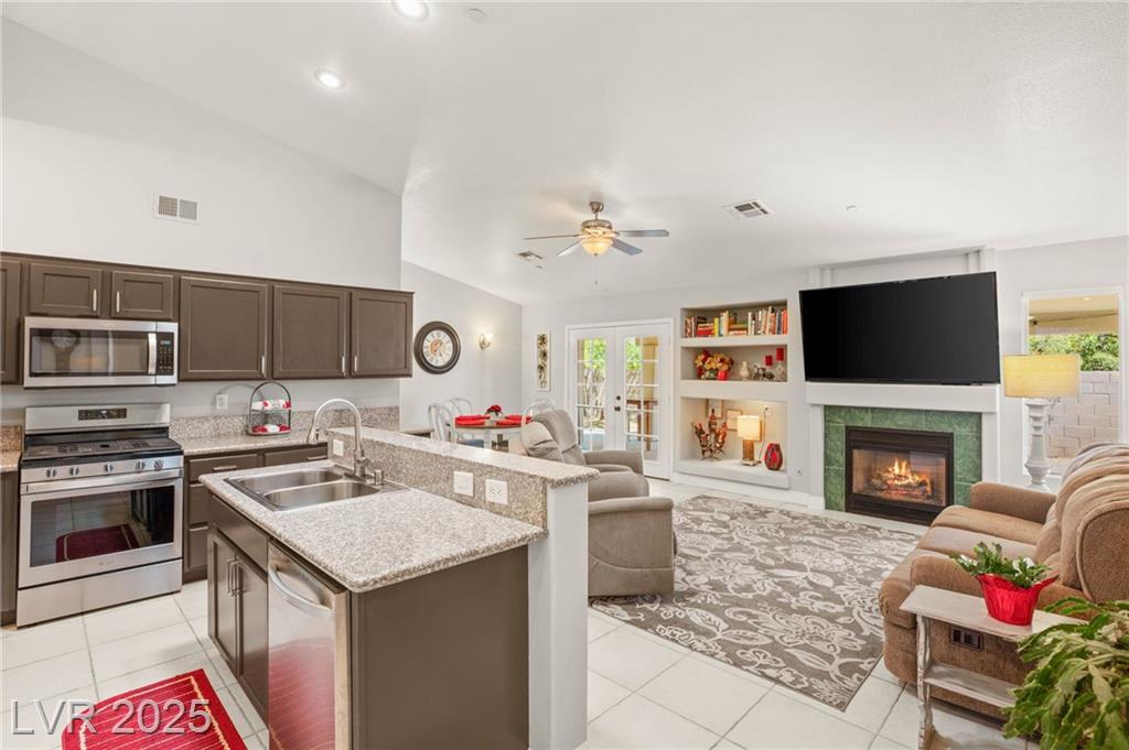 Rare 6-Bed, 4-Bath Single Story with Full Guest Suite – No HOA! This 3,093 sq ft home offers two full living spaces under one roof, ideal for multi-generational living, long-term guests, or rental income. The private guest suite has its own entrance, kitchen, family room, 3 bedrooms, and 2 baths. The main home boasts a chef’s kitchen with granite counters, an island, stainless steel appliances, a breakfast nook, vaulted ceilings, a gas fireplace, and low-maintenance tile/laminate flooring. The owner’s suite features dual vanities, a soaking tub, a separate shower, and a walk-in closet. Enjoy a covered patio, desert landscaping, oversized 3-car garage, and gated bay for boat/trailer or toys. Situated on a 7,841 sq ft lot with no HOA, this property offers space, flexibility, and a prime location just minutes from shopping, dining, entertainment, and the airport. Move-in ready, income-ready, and perfect for your lifestyle.