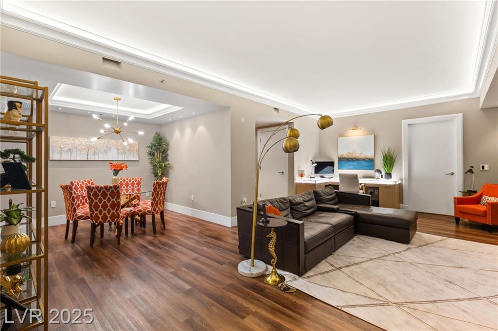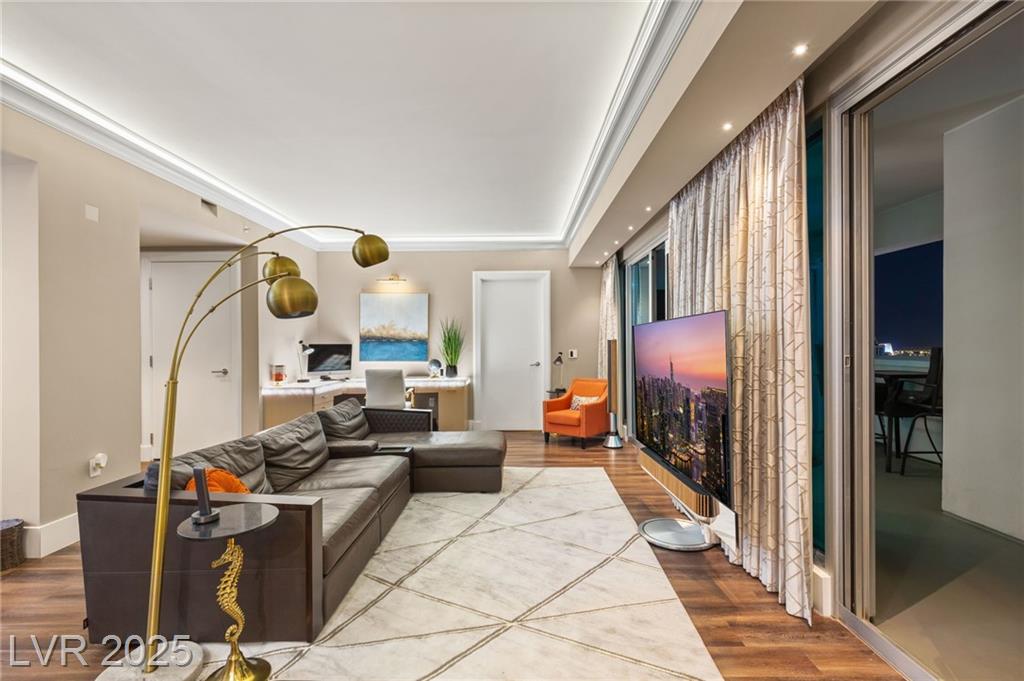2700 South Las Vegas Blvd, Unit 3705 is a luxurious unit located in the prestigious Sky Las Vegas high-rise, a premier address along the world-famous Las Vegas Strip. Positioned on the 37th floor, this unit offers stunning panoramic views of the Las Vegas skyline, including the vibrant Strip, surrounding mountains, and Fontainebleau.The residence features a modern and sophisticated design, floor-to-ceiling windows, and a spacious layout.This unit includes a gourmet kitchen, sleek cabinetry, and custom countertops. The open-concept living and dining areas create an airy ambiance, while the private bedroom suite ensures comfort and privacy. I will provide a list of amenities and upgrades for the unit and Sky.