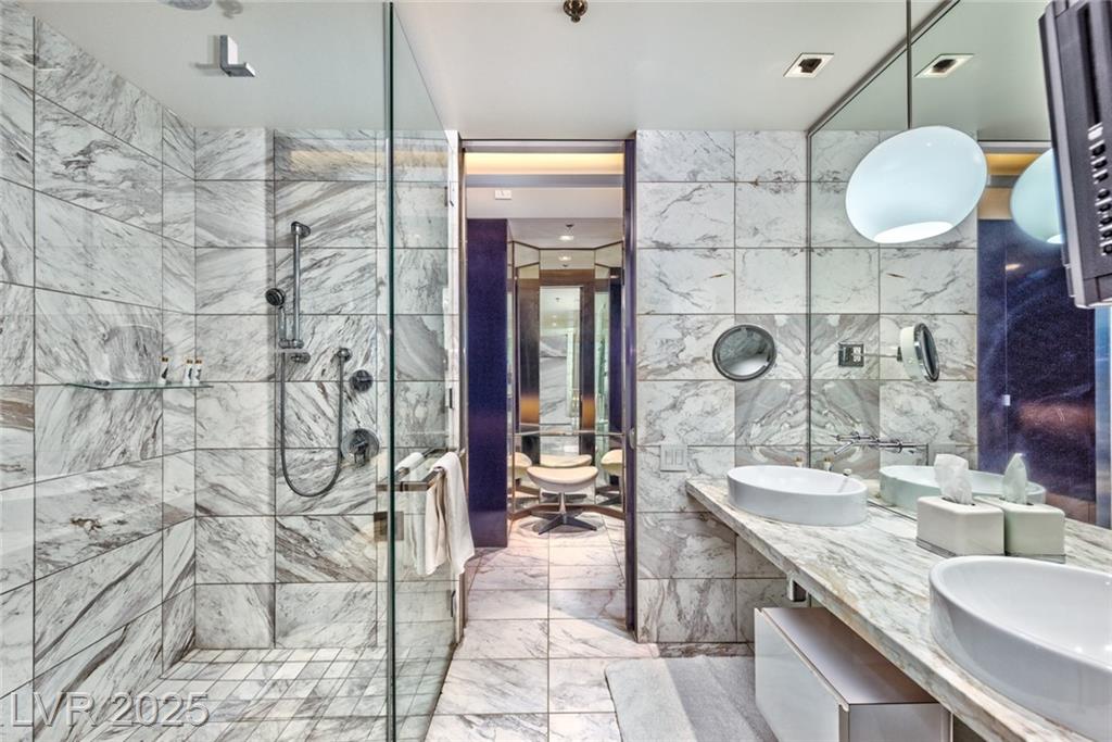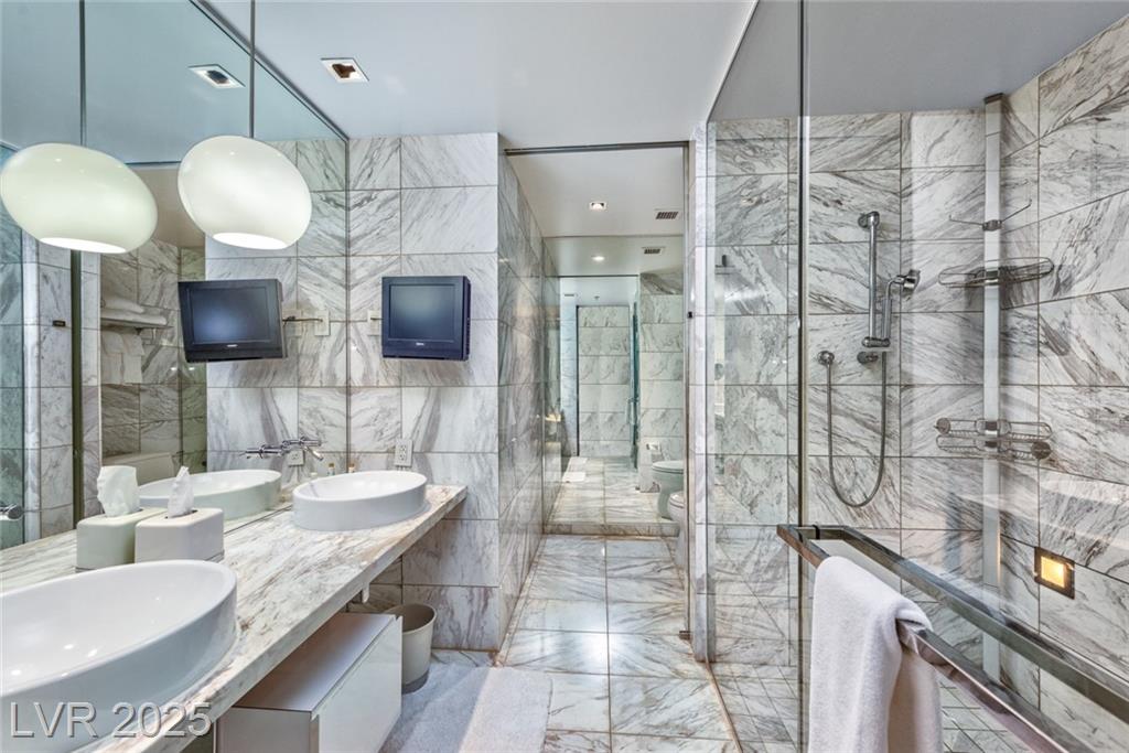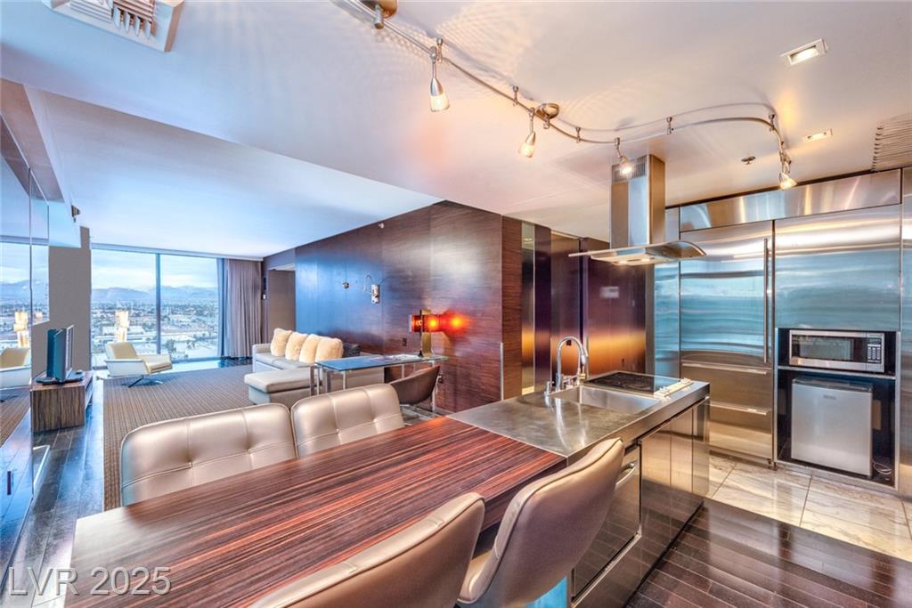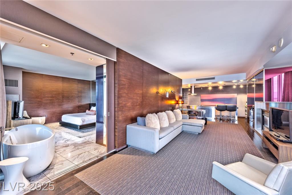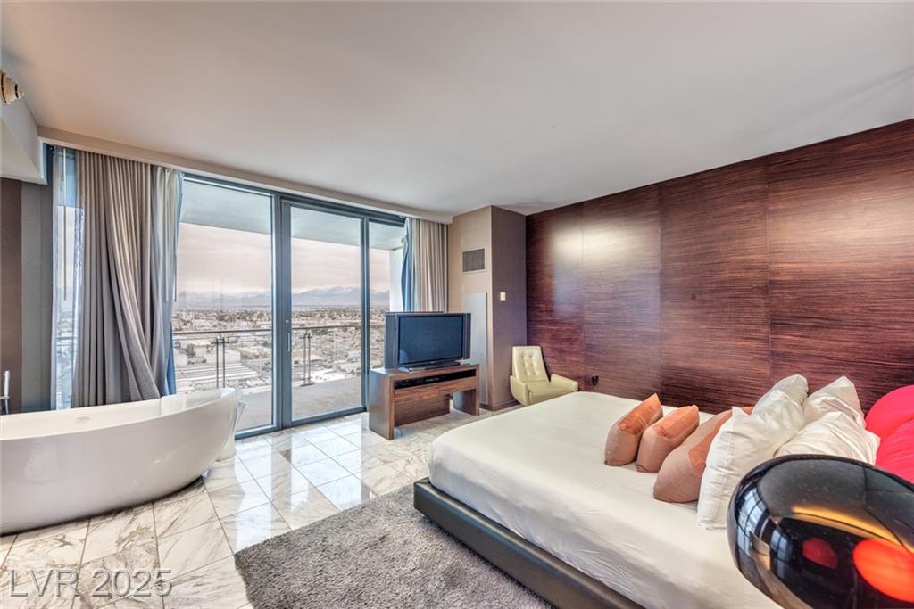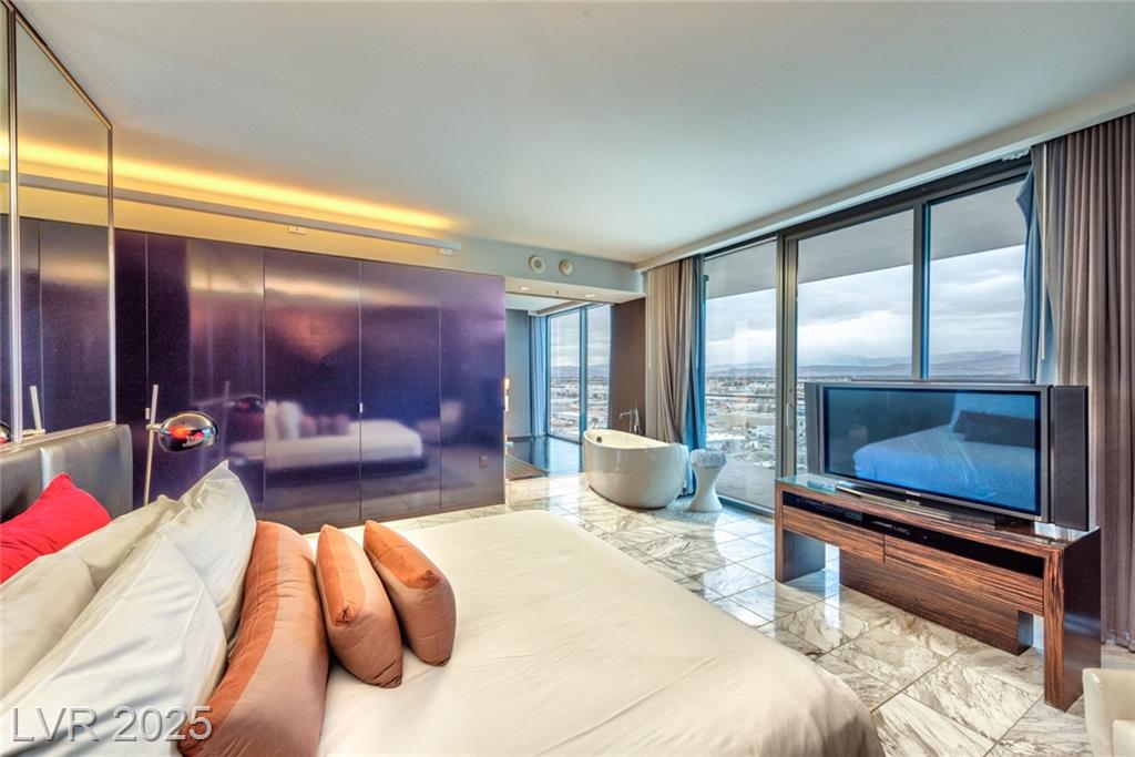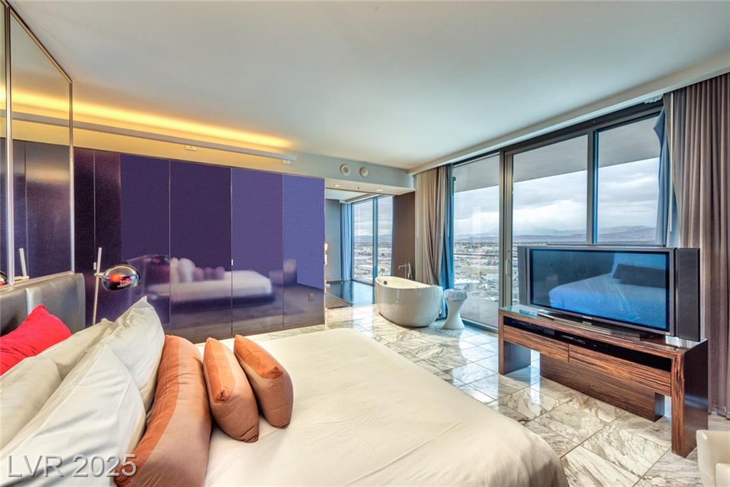 Located in the prestigious AAA Four Diamond Palms Place Resort & Spa, this one-bedroom high-rise unit offers spectacular views of the Las Vegas Strip, surrounding mountains, and Allegiant Stadium off of two beautiful terraces. Inside, this spacious condo offers an open-concept layout with a modern kitchen featuring an island with cooktop, sink, and additional prep sink. The generously sized bedroom includes a spa-inspired bathroom with a separate soaking tub and walk-in shower. Floor-to-ceiling glass doors open to two private balconies, showcasing sweeping views and filling the space with natural light. Furniture is negotiable. Owners enjoy exclusive access to premier amenities, including concierge services, a state-of-the-art fitness center, a luxurious resort-style pool, and discounts on on-site dining and spa services. Experience upscale, resort-style living just minutes from the world-famous Las Vegas Strip—ideal for both primary residents and investors.