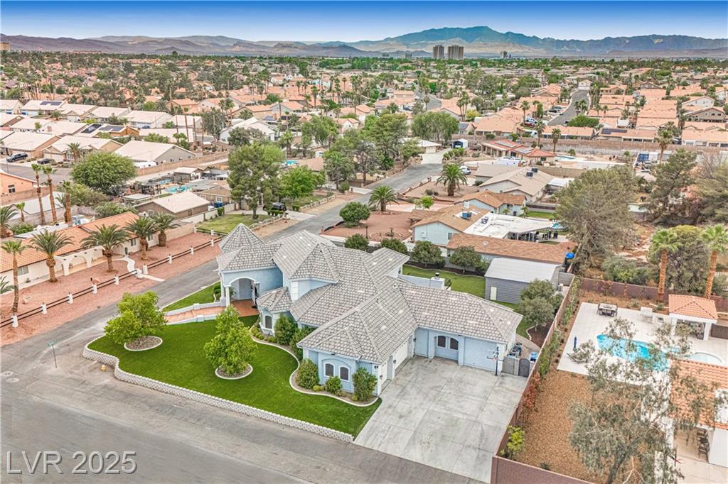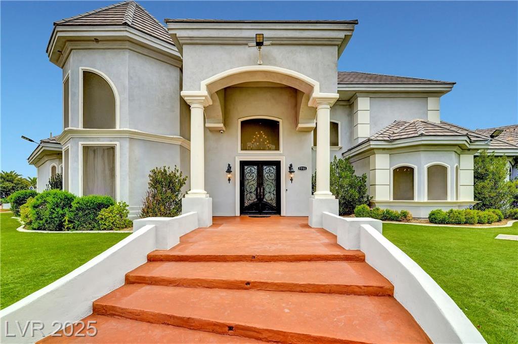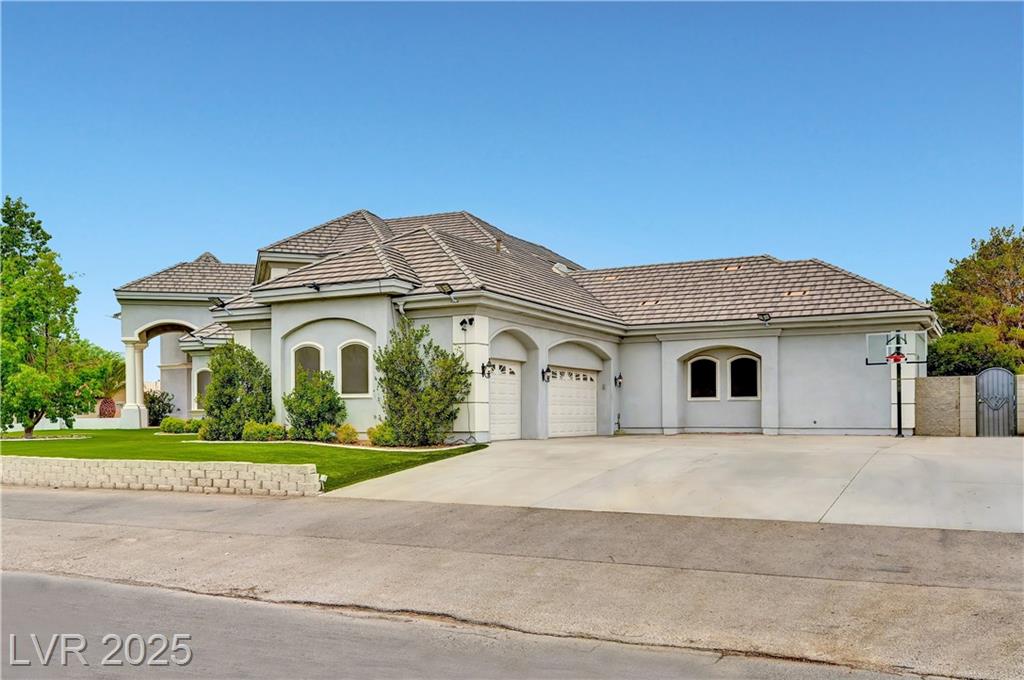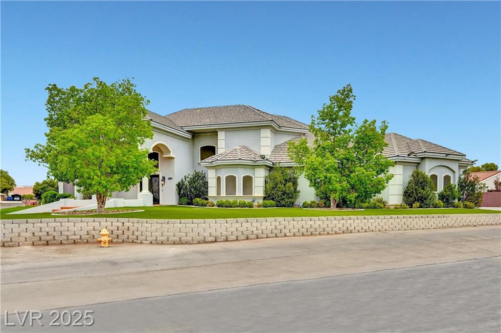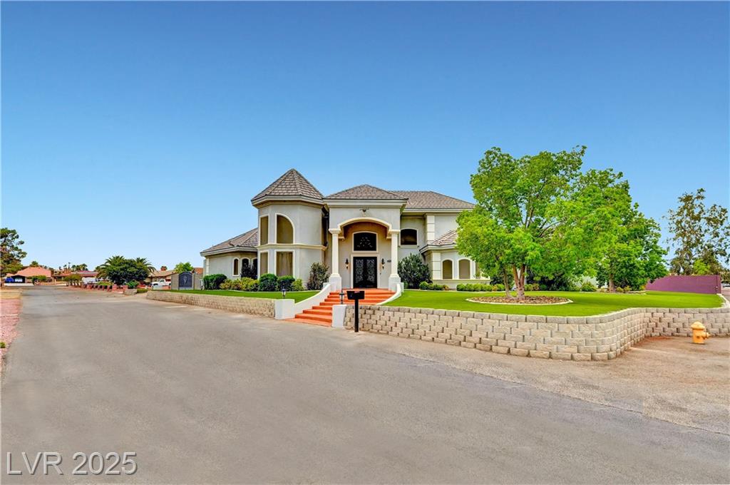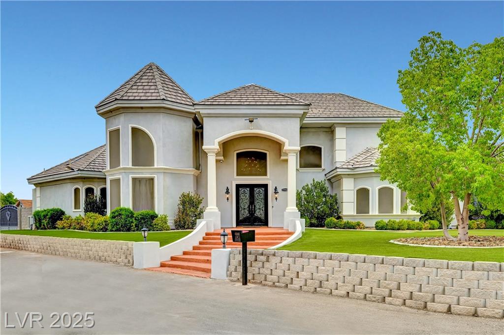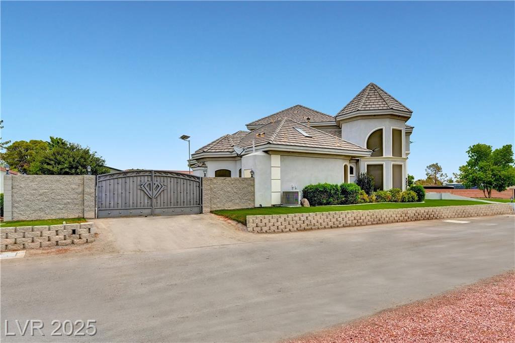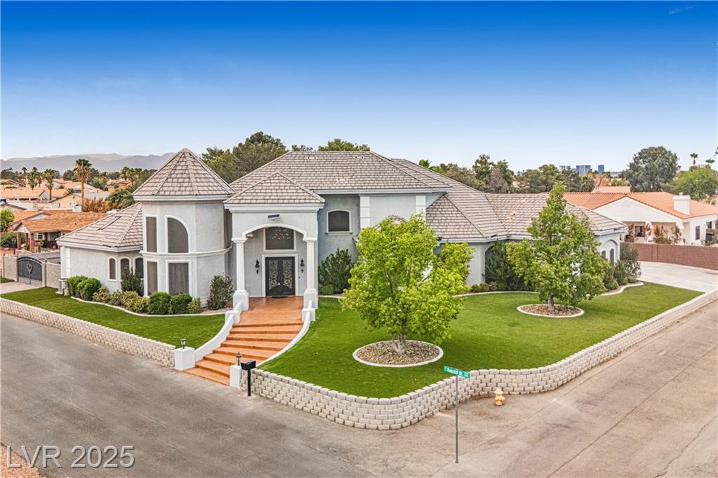 This one-of-a-kind custom Las Vegas estate offers rare privacy, space, and character on a 0.5+ acre corner lot with no HOA or SID. Boasting 4,711 sq ft, this 2-story home features a grand entry with 8-ft wrought iron doors, soaring ceilings, rich wood cabinetry, polished travertine flooring, and abundant natural light. The entertainer’s kitchen includes granite counters and custom finishes, while a loft and home theater add flexibility. The main-level primary suite offers a fireplace, spa-like bath, and backyard access. Enjoy low-maintenance outdoor living with turf landscaping, paver patios, and a pergola. Car lovers will appreciate the detached workshop with a lift, plus a 3-car garage and gated RV/utility parking. Additional features include a central vac, septic system, city water, and gas/electric service. Truly a unique opportunity just minutes from Las Vegas strip, Raiders Stadium, Knights Hockey Arena, and so much more! Schedule your private showing today!
