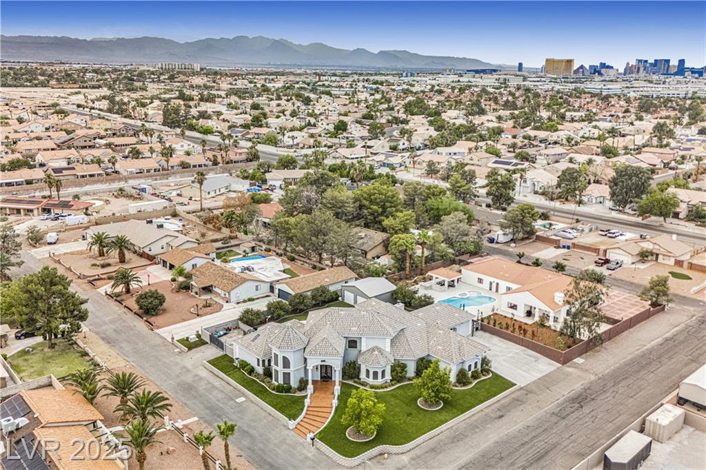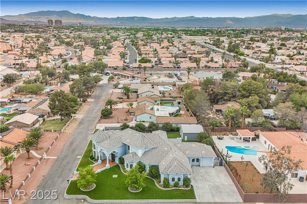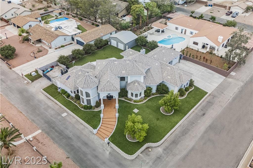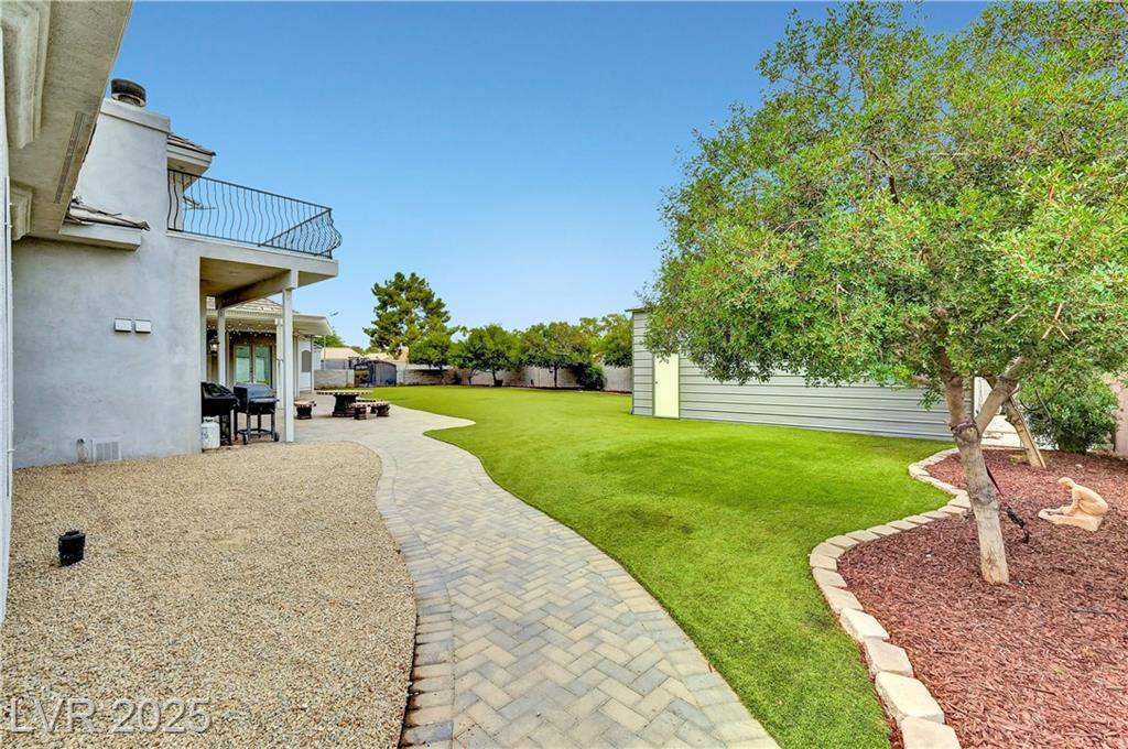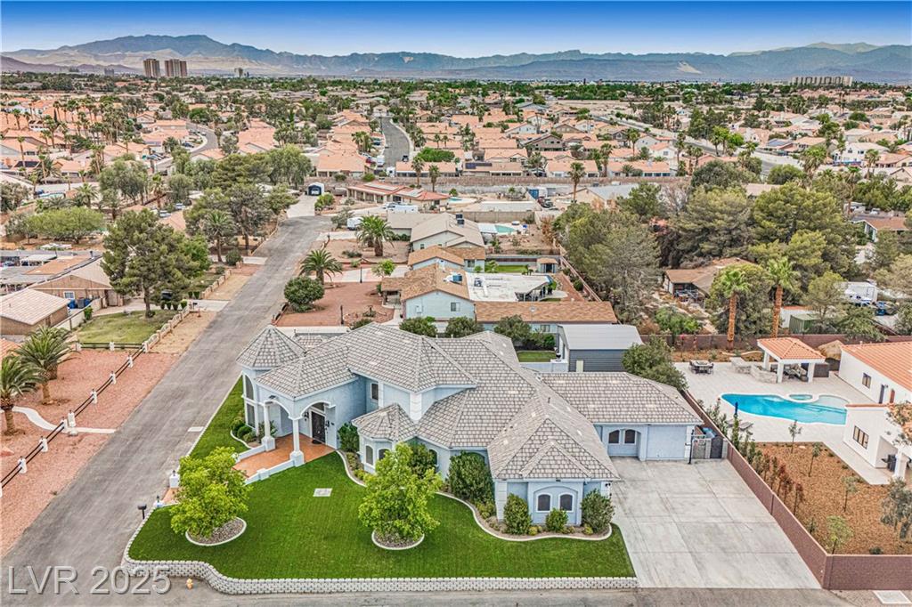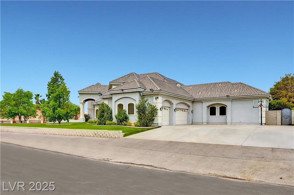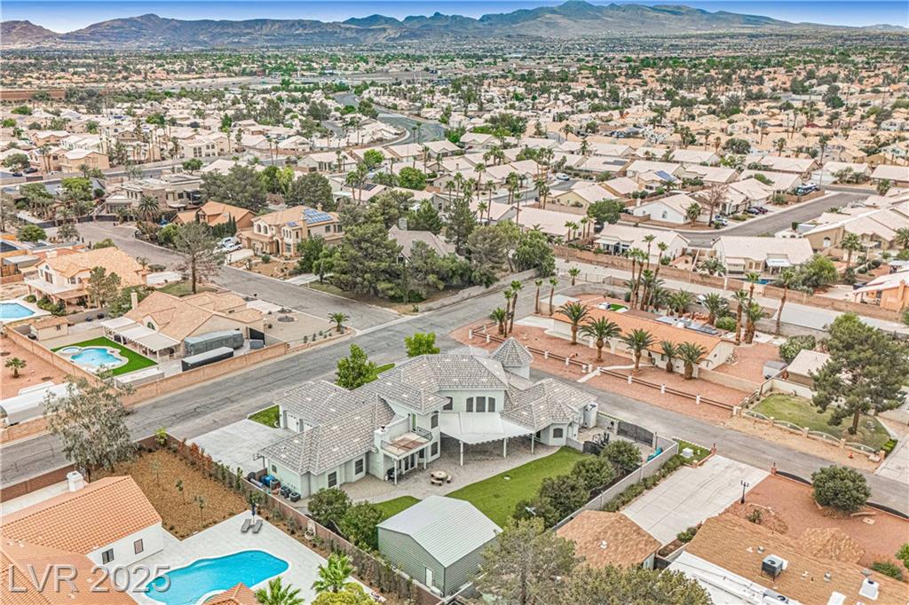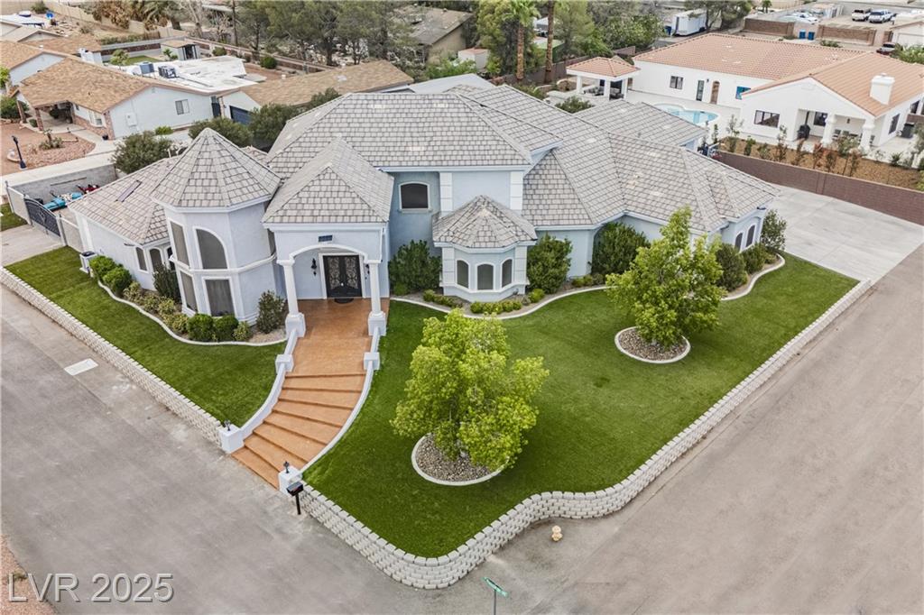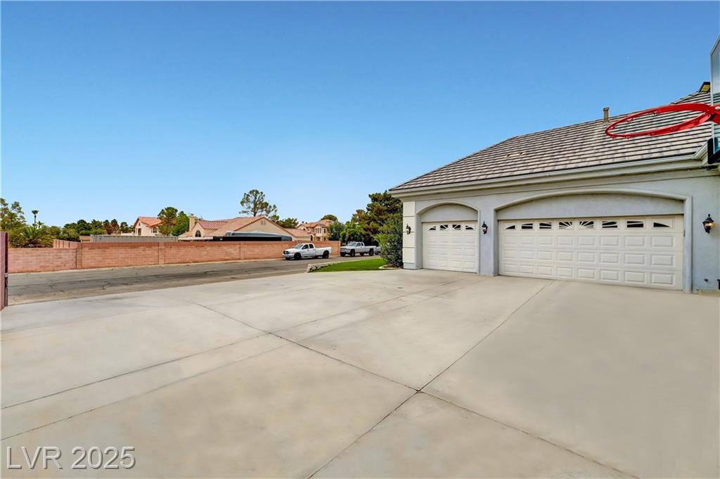 This one-of-a-kind custom Las Vegas estate offers rare privacy, space, and character on a 0.5+ acre corner lot with no HOA or SID. Boasting 4,711 sq ft, this 2-story home features a grand entry with 8-ft wrought iron doors, soaring ceilings, rich wood cabinetry, polished travertine flooring, and abundant natural light. The entertainer’s kitchen includes granite counters and custom finishes, while a loft and home theater add flexibility. The main-level primary suite offers a fireplace, spa-like bath, and backyard access. Enjoy low-maintenance outdoor living with turf landscaping, paver patios, and a pergola. Car lovers will appreciate the detached workshop with a lift, plus a 3-car garage and gated RV/utility parking. Additional features include a central vac, septic system, city water, and gas/electric service. Truly a unique opportunity just minutes from Las Vegas strip, Raiders Stadium, Knights Hockey Arena, and so much more! Schedule your private showing today!