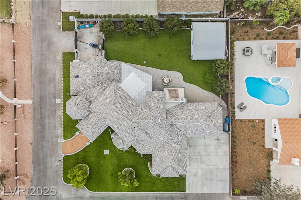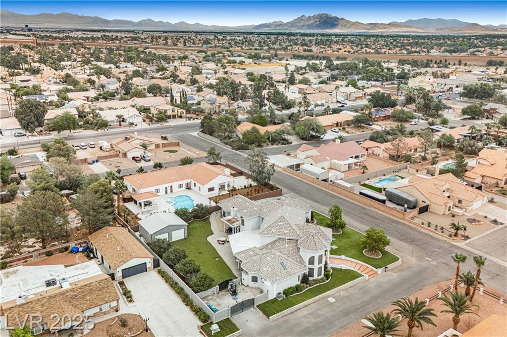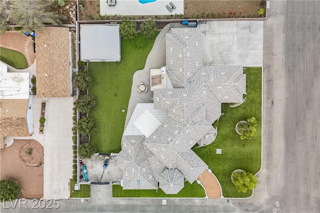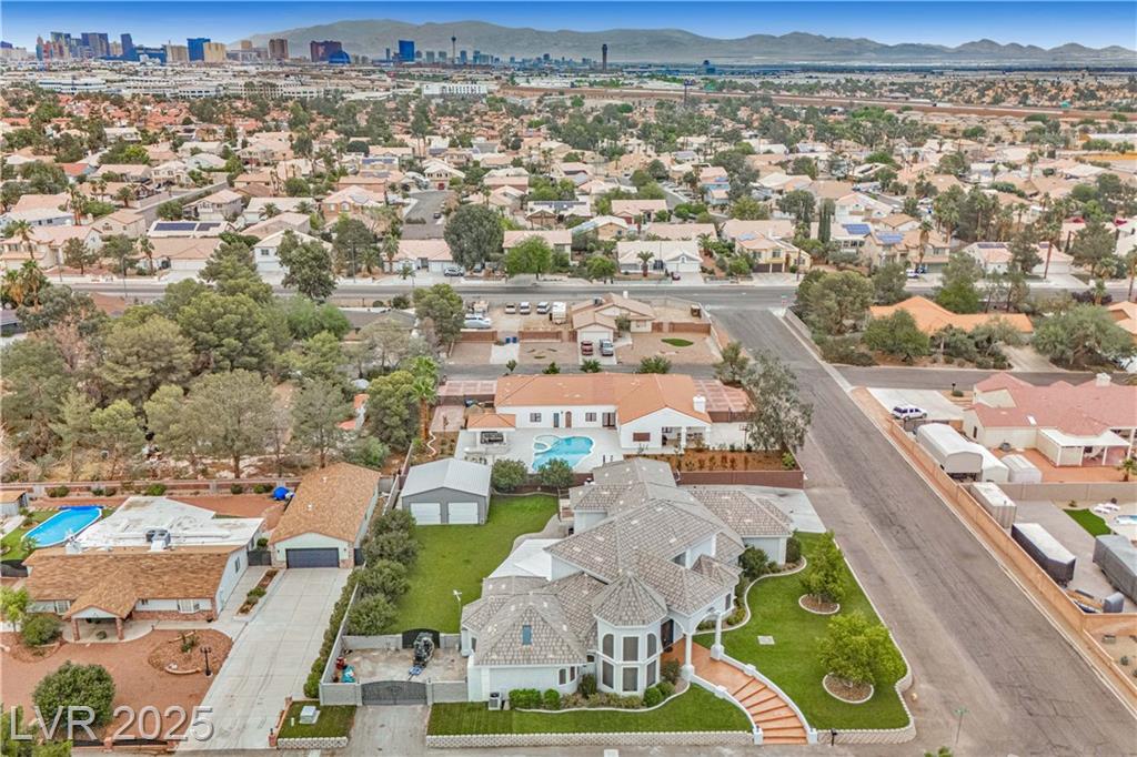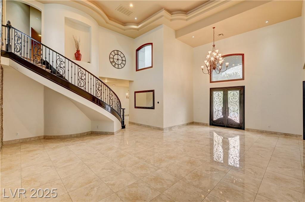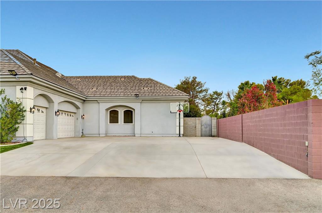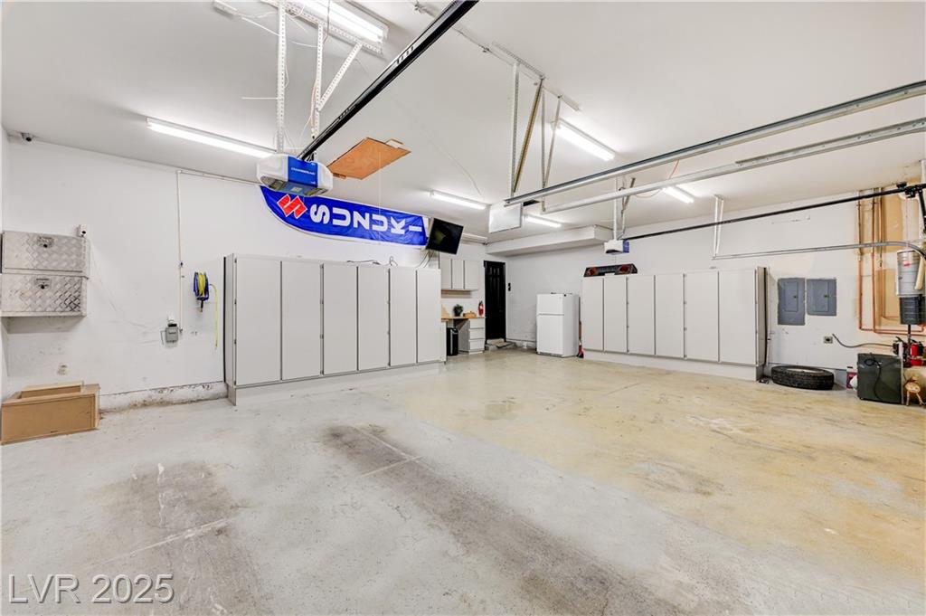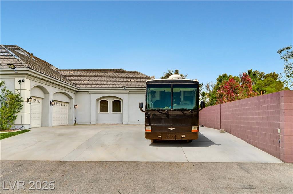 This one-of-a-kind custom Las Vegas estate offers rare privacy, space, and character on a 0.5+ acre corner lot with no HOA or SID. Boasting 4,711 sq ft, this 2-story home features a grand entry with 8-ft wrought iron doors, soaring ceilings, rich wood cabinetry, polished travertine flooring, and abundant natural light. The entertainer’s kitchen includes granite counters and custom finishes, while a loft and home theater add flexibility. The main-level primary suite offers a fireplace, spa-like bath, and backyard access. Enjoy low-maintenance outdoor living with turf landscaping, paver patios, and a pergola. Car lovers will appreciate the detached workshop with a lift, plus a 3-car garage and gated RV/utility parking. Additional features include a central vac, septic system, city water, and gas/electric service. Truly a unique opportunity just minutes from Las Vegas strip, Raiders Stadium, Knights Hockey Arena, and so much more! Schedule your private showing today!