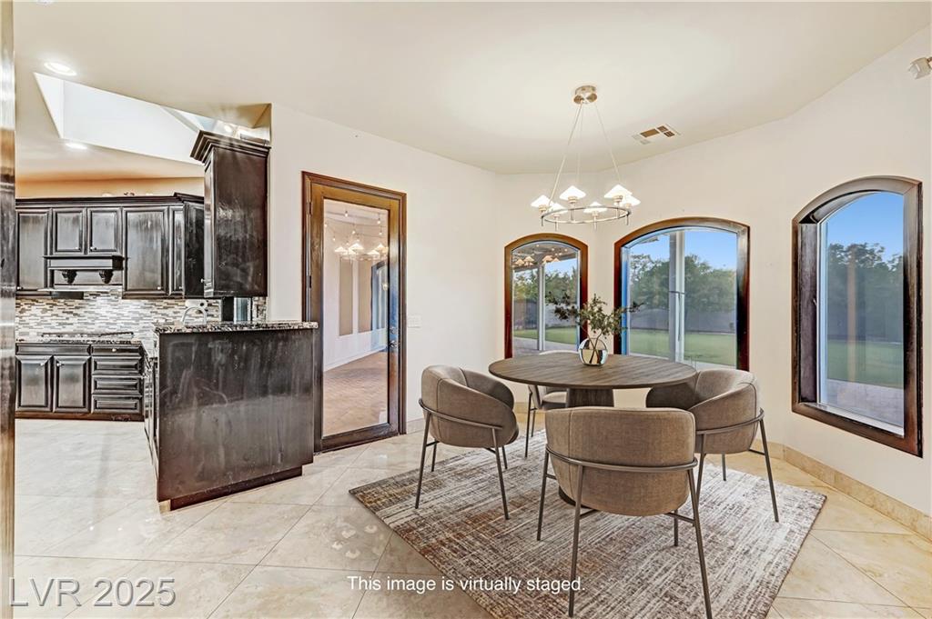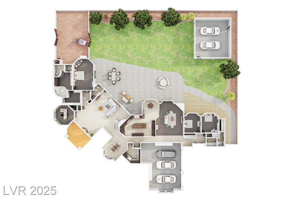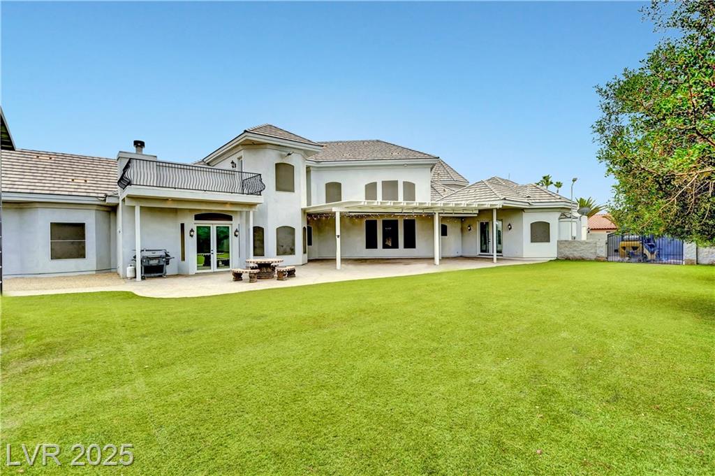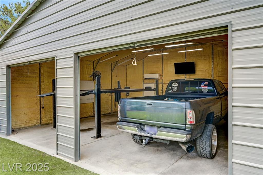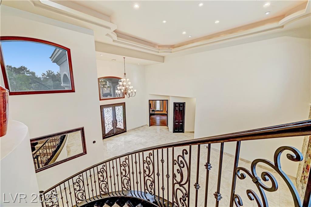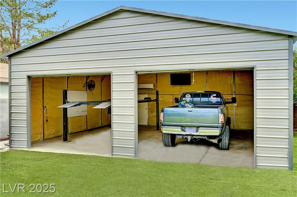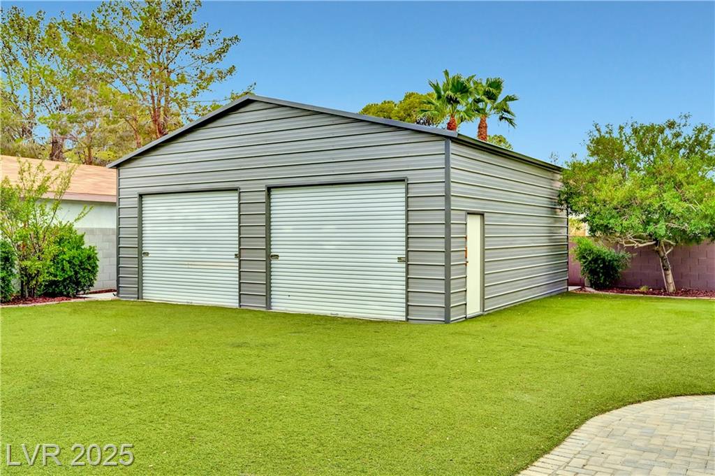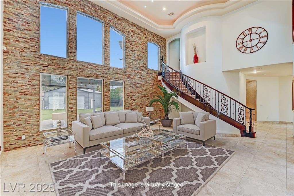 This one-of-a-kind custom Las Vegas estate offers rare privacy, space, and character on a 0.5+ acre corner lot with no HOA or SID. Boasting 4,711 sq ft, this 2-story home features a grand entry with 8-ft wrought iron doors, soaring ceilings, rich wood cabinetry, polished travertine flooring, and abundant natural light. The entertainer’s kitchen includes granite counters and custom finishes, while a loft and home theater add flexibility. The main-level primary suite offers a fireplace, spa-like bath, and backyard access. Enjoy low-maintenance outdoor living with turf landscaping, paver patios, and a pergola. Car lovers will appreciate the detached workshop with a lift, plus a 3-car garage and gated RV/utility parking. Additional features include a central vac, septic system, city water, and gas/electric service. Truly a unique opportunity just minutes from Las Vegas strip, Raiders Stadium, Knights Hockey Arena, and so much more! Schedule your private showing today!
