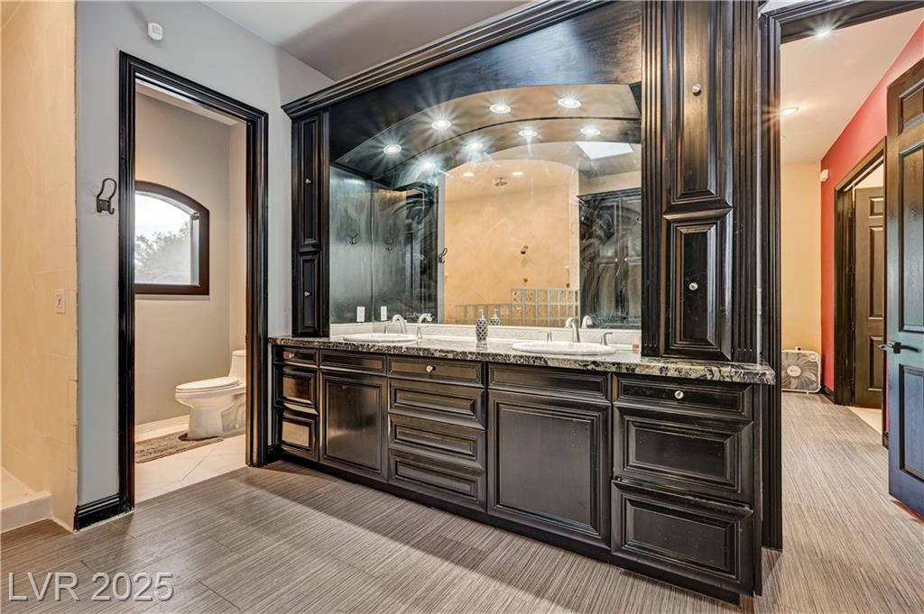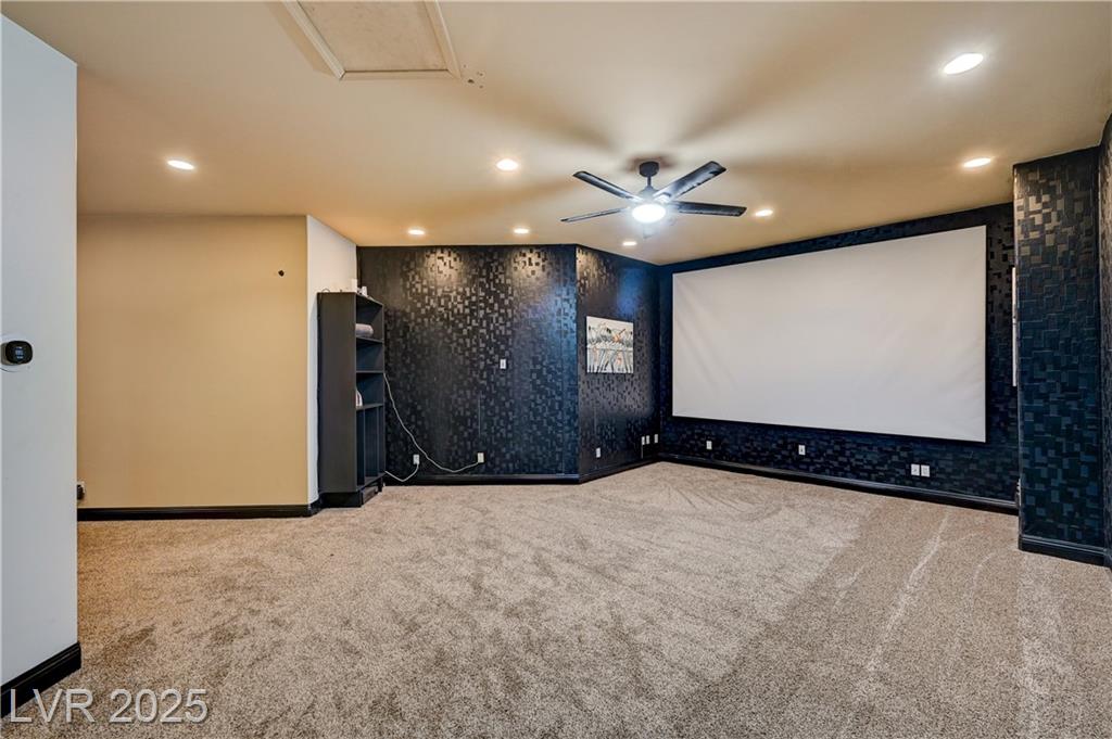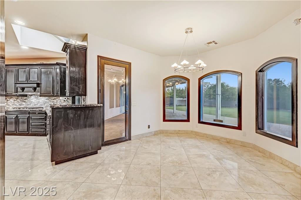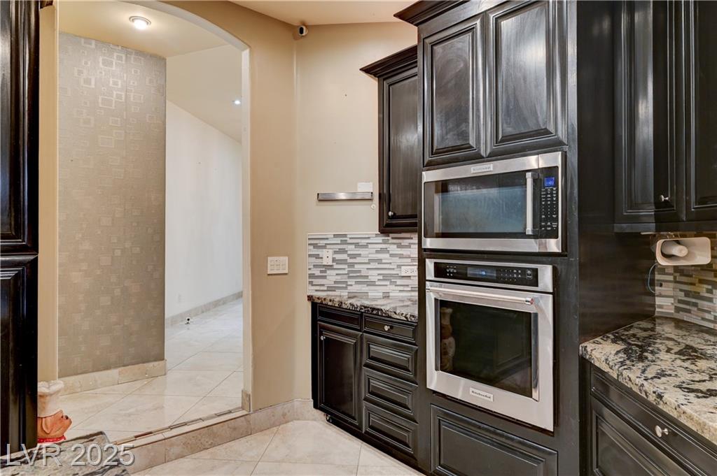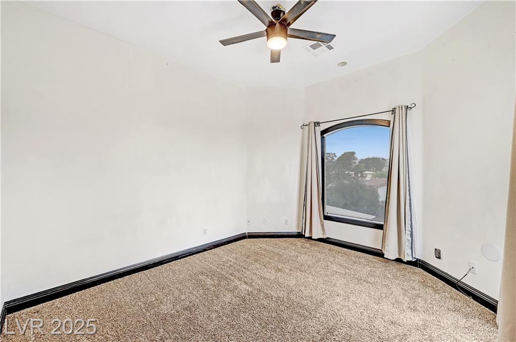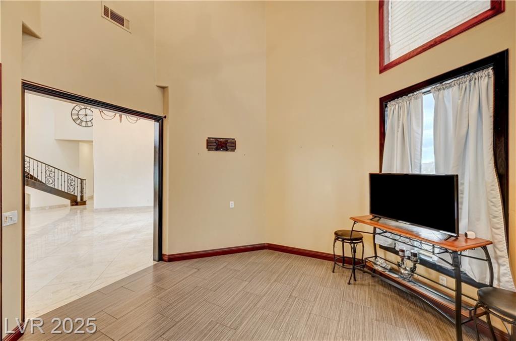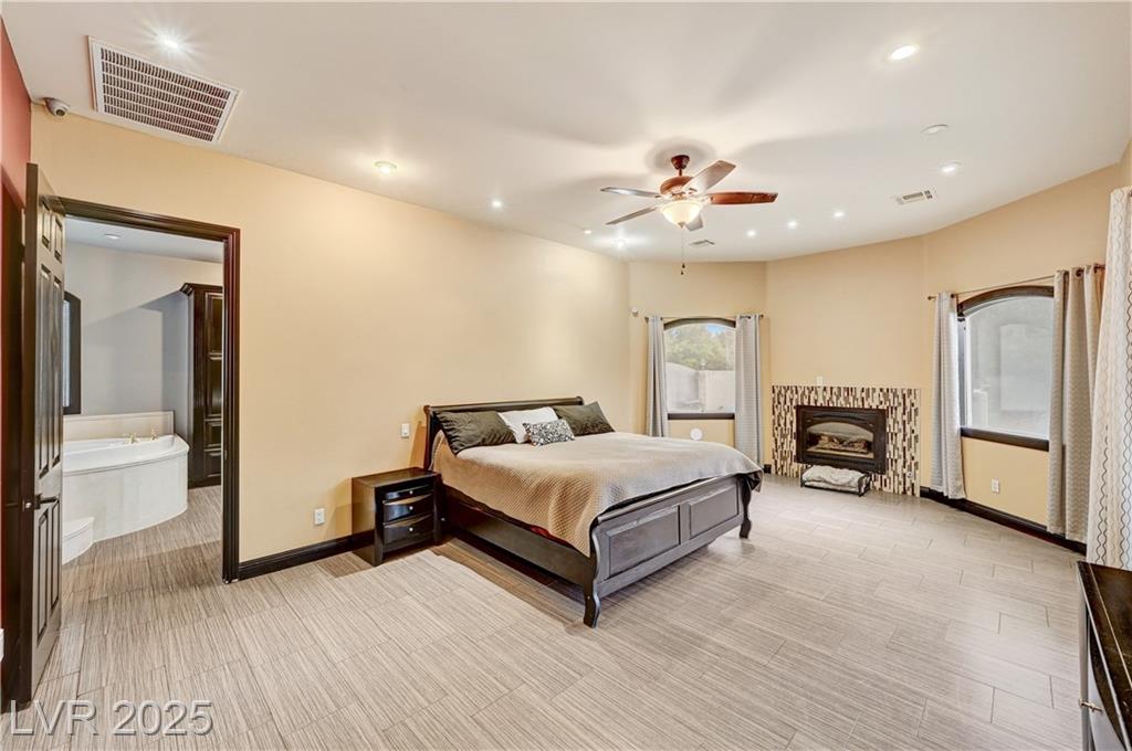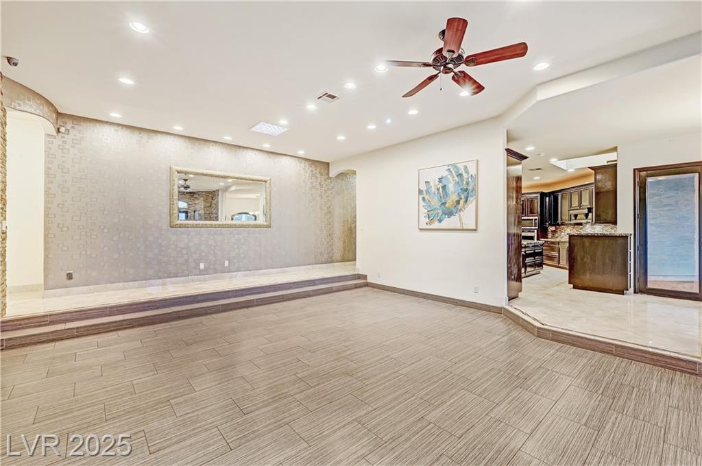This one-of-a-kind custom Las Vegas estate offers rare privacy, space, and character on a 0.5+ acre corner lot with no HOA or SID. Boasting 4,711 sq ft, this 2-story home features a grand entry with 8-ft wrought iron doors, soaring ceilings, rich wood cabinetry, polished travertine flooring, and abundant natural light. The entertainer’s kitchen includes granite counters and custom finishes, while a loft and home theater add flexibility. The main-level primary suite offers a fireplace, spa-like bath, and backyard access. Enjoy low-maintenance outdoor living with turf landscaping, paver patios, and a pergola. Car lovers will appreciate the detached workshop with a lift, plus a 3-car garage and gated RV/utility parking. Additional features include a central vac, septic system, city water, and gas/electric service. Truly a unique opportunity just minutes from Las Vegas strip, Raiders Stadium, Knights Hockey Arena, and so much more! Schedule your private showing today!