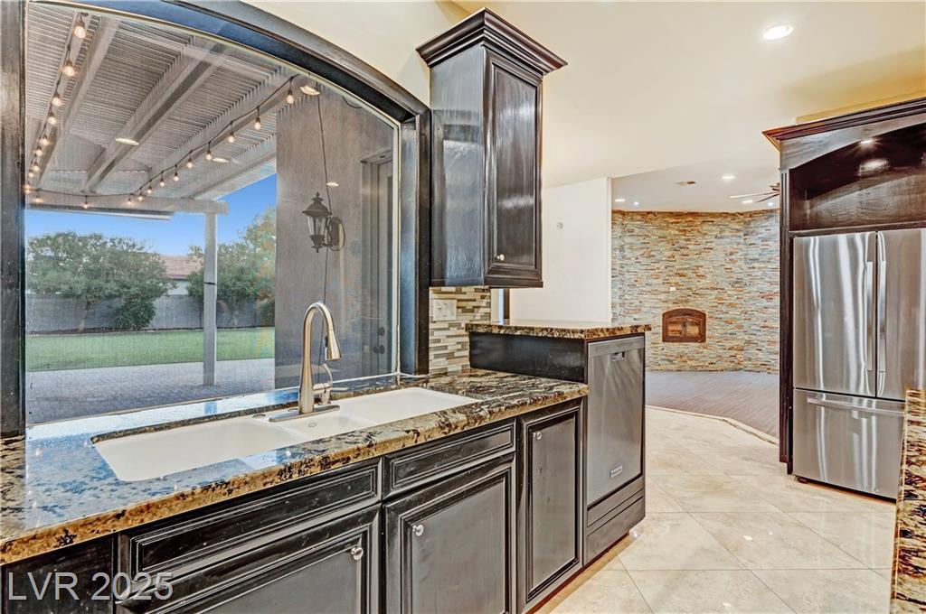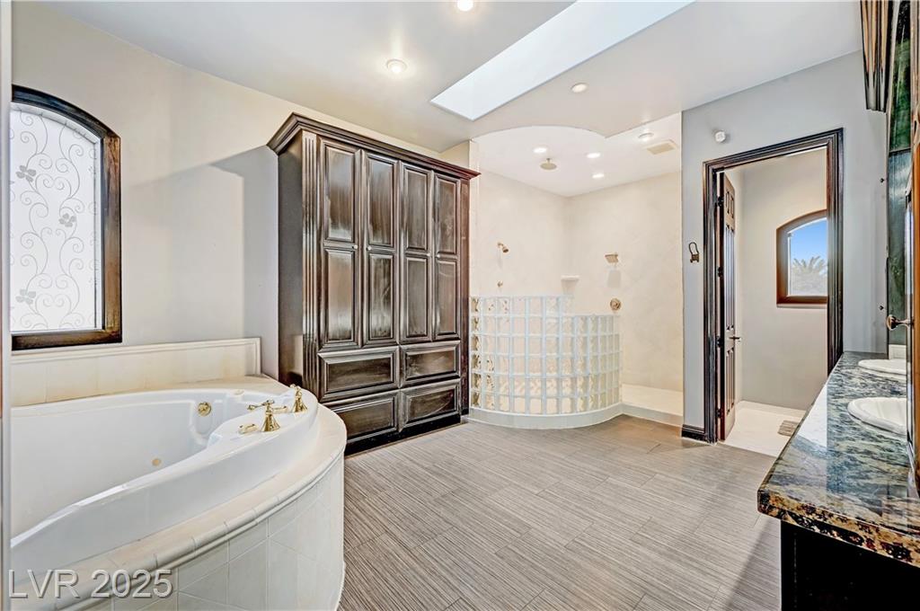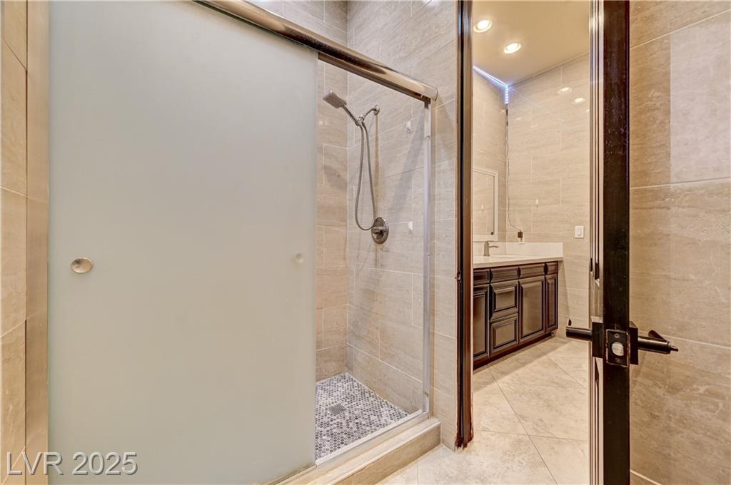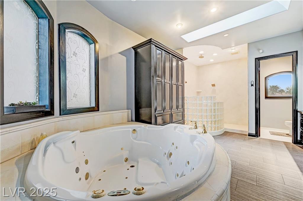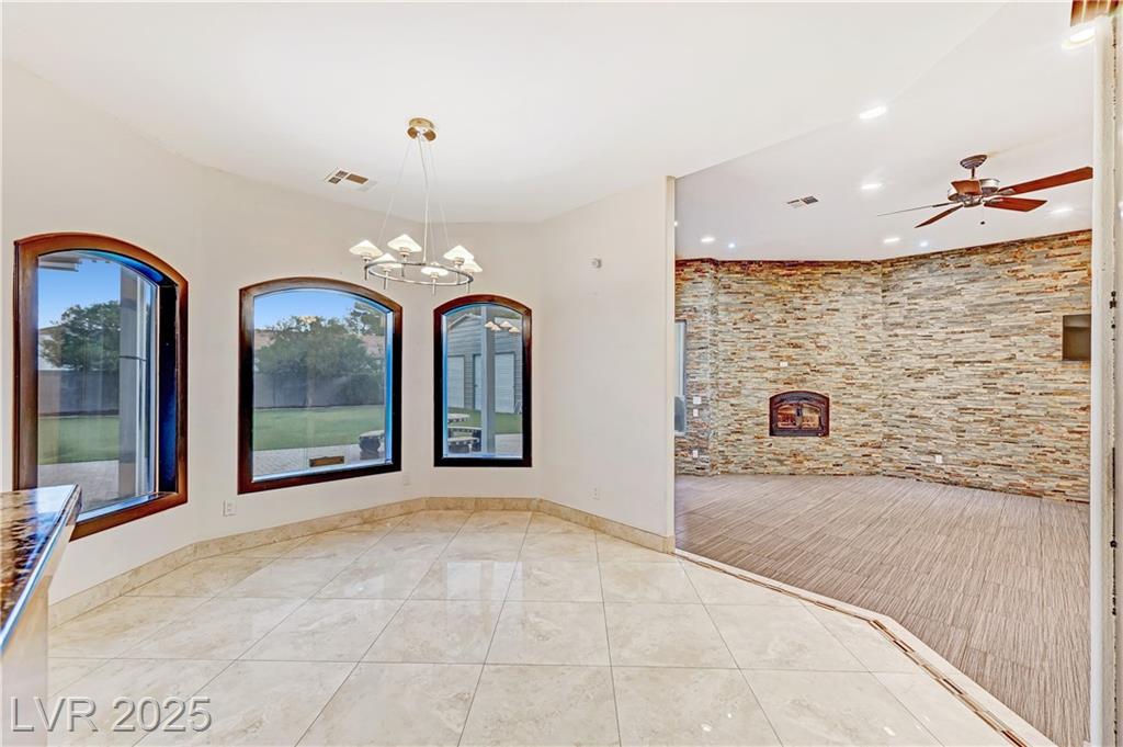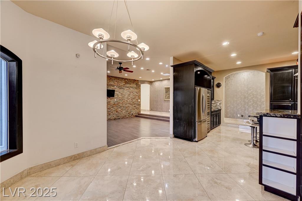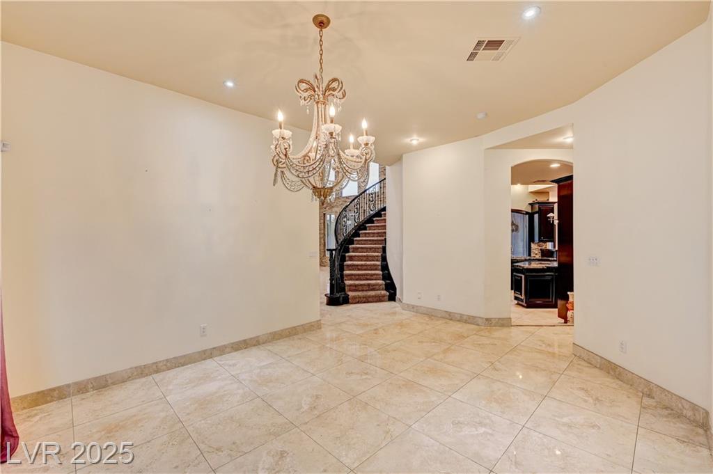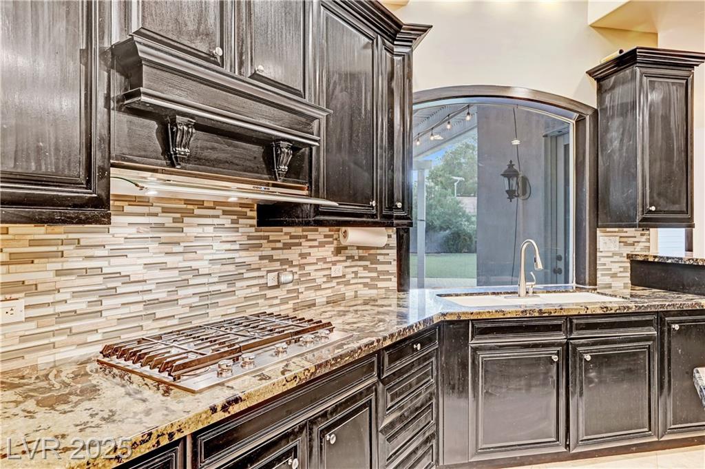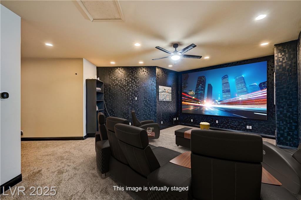 This one-of-a-kind custom Las Vegas estate offers rare privacy, space, and character on a 0.5+ acre corner lot with no HOA or SID. Boasting 4,711 sq ft, this 2-story home features a grand entry with 8-ft wrought iron doors, soaring ceilings, rich wood cabinetry, polished travertine flooring, and abundant natural light. The entertainer’s kitchen includes granite counters and custom finishes, while a loft and home theater add flexibility. The main-level primary suite offers a fireplace, spa-like bath, and backyard access. Enjoy low-maintenance outdoor living with turf landscaping, paver patios, and a pergola. Car lovers will appreciate the detached workshop with a lift, plus a 3-car garage and gated RV/utility parking. Additional features include a central vac, septic system, city water, and gas/electric service. Truly a unique opportunity just minutes from Las Vegas strip, Raiders Stadium, Knights Hockey Arena, and so much more! Schedule your private showing today!