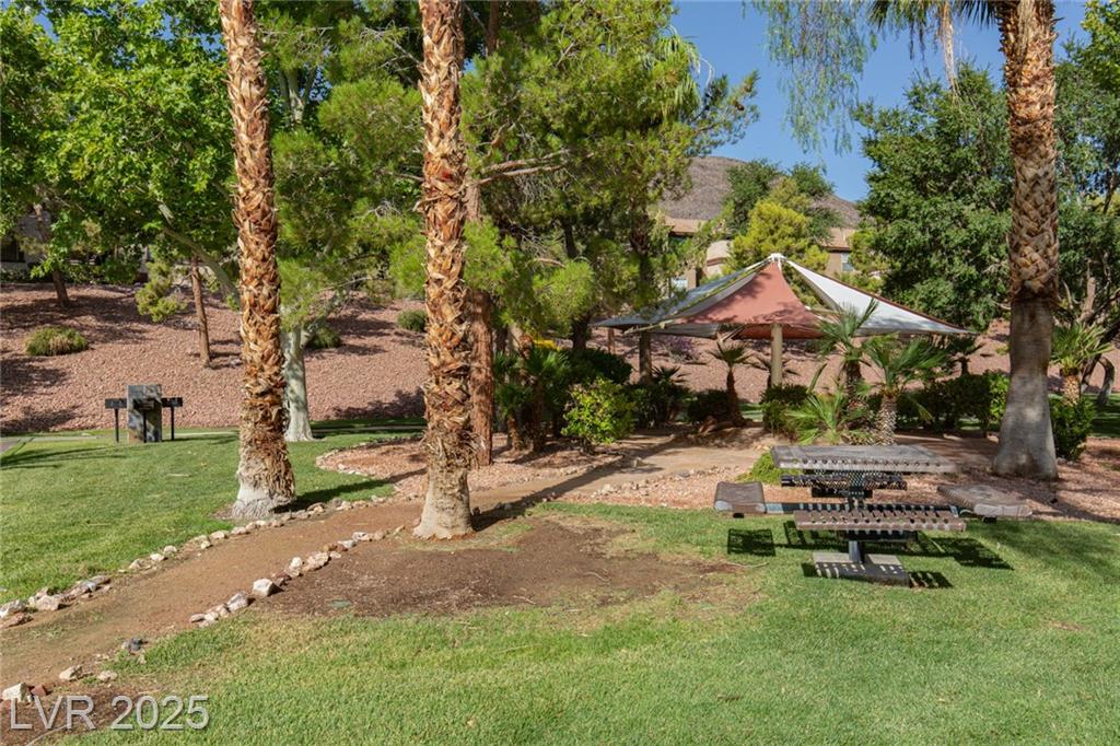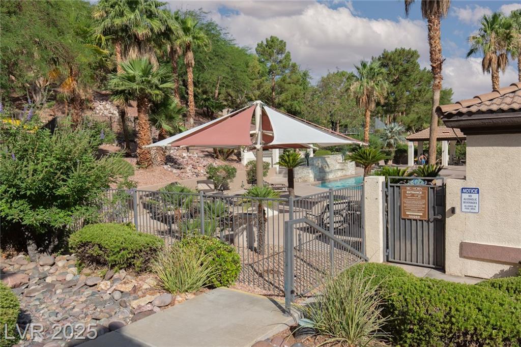 Beautiful Henderson Gated Community Condo with breathtaking mountain views from the balcony! Community Pool and Spa, Tennis courts, Clubhouse and fitness room. No houses behind and Strip View across. Walking Trail and picknick area. Laminate floors through out and vaulted ceiling in the living room. Bedroom has a walking closet and another mirrored doors closet. Ceiling fans are in the dining and bedroom areas. Lots of storage areas. Close to shopping and one mile from highway, great location!