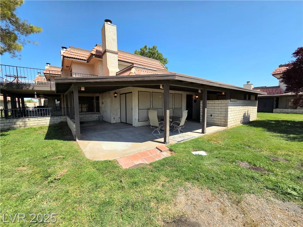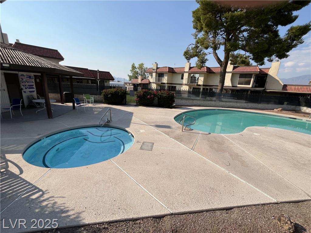 Charming & Updated 2 Bedroom Condo in the Heart of Pahrump! This adorable downstairs end unit is single-story living at its best, tucked into a well-maintained gated community with two covered parking spaces. Enjoy the privacy of your wraparound covered patio and extra storage in the outdoor shed. Inside, the kitchen boasts newer stainless steel appliances, custom cabinetry, upgraded lighting, and a cozy breakfast bar. The living room features built-in cabinetry and peaceful park views. The spacious primary suite includes a large bedroom, double sinks, a luxurious jetted tub, and a separate shower. Both bedrooms offer generous walk-in closets. Newer windows throughout add to the comfort and efficiency. Community perks include park access, a sparkling swimming pool, and the security of gated living!