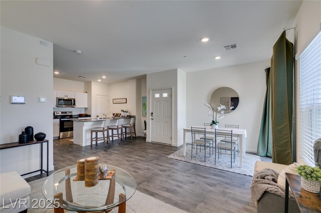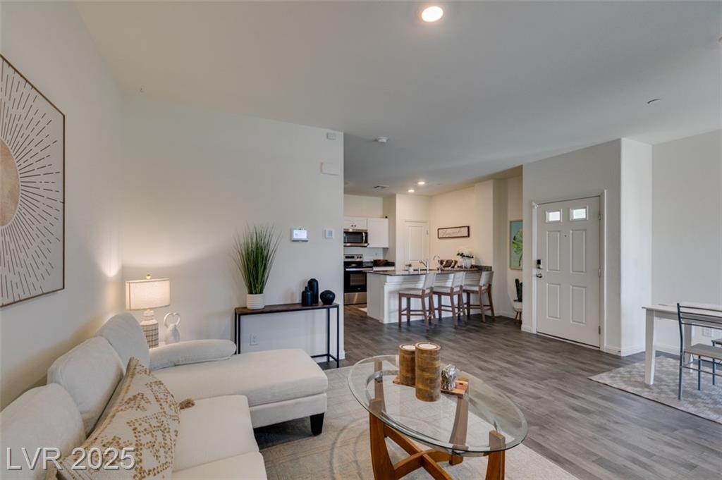 AMAZING VALUE!! Welcome to Willow Trails adjacent to Inspirada and Henderson Hospital West! Built in 2022, this stylish corner unit townhome features 3 bedrooms, a spacious loft, and a 2-car garage. The open-concept main level offers a bright living area, and a modern kitchen complete with stainless steel appliances, breakfast bar, and pantry. Upstairs, enjoy the versatile Loft perfect as a home office or second lounge, and a separate oversized primary suite for added privacy. Convenient upstairs laundry and plenty of storage throughout. All appliances included/washer & dryer. Whole house water softener. Nestled in a neighborhood with community pool, parks, doggie park, trails, and stunning mountain views. Solar is financed *ASK FOR DETAILS * Don’t miss this opportunity to own in one of Henderson's most desirable communities!