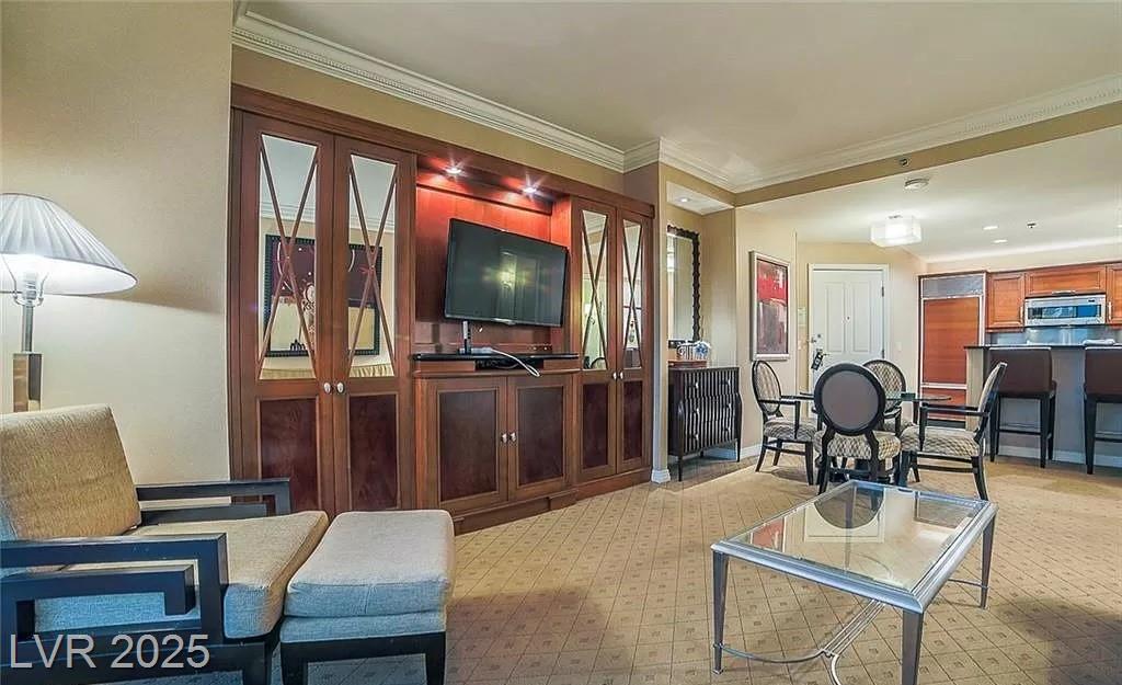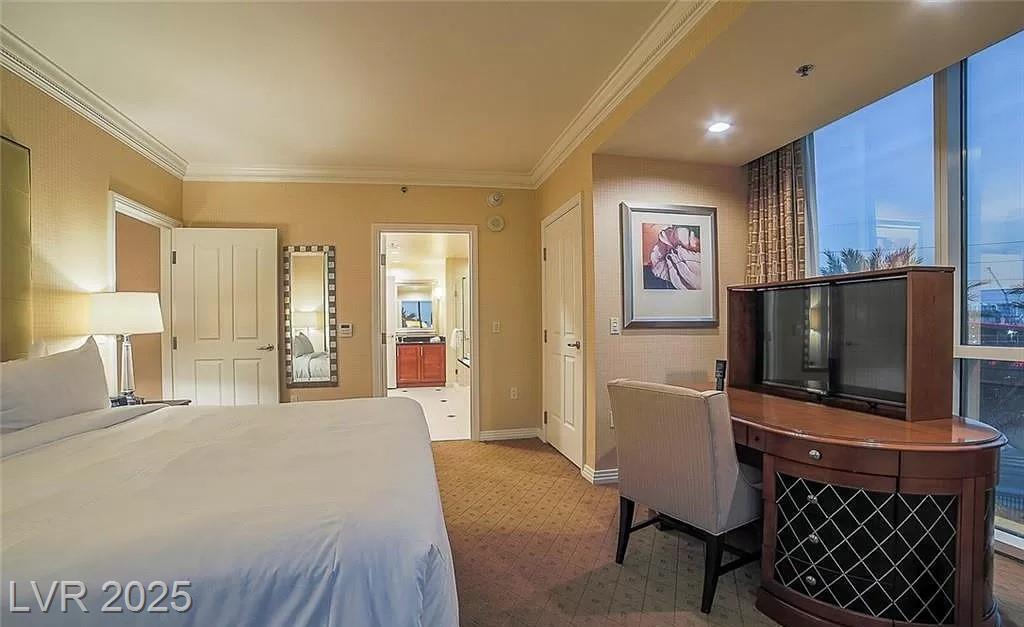 Location, Location, Location! Air BnB Approved!!Great Investment Opportunity! Own your own condo on the Las Vegas Strip! This is a fully furnished, luxury Corner-Unit, one-bedroom suite with a balcony and a view of Top Golf in the much-desired Tower 3. Next to the Formula 1 finish line, the Sphere, mountains, and TopGolf! Perfect for a second home or a short-term rental property. This turnkey unit features a full kitchen with Sub-Zero refrigerator, granite countertops, oven, dishwasher, built-in entertainment center, private owner’s closet. The spacious primary bathroom includes dual vanities, a walk-in shower, and a Jacuzzi tub, and a walk-in shower. Comfortably sleeps four with a plush king bed and pullout sleeper sofa. Enjoy access to MGM Signature’s three private heated pools, spas, cabanas, lounge with full bar, gym, valet, concierge, Starbucks, connected to MGM Grand, Wet Republic Ultra Pool, Lazy River, world-class restaurants, casino, and MGM Grand Spa. Must See to appreciate!