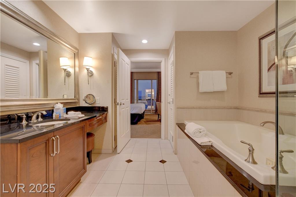 East on Harmon from Las Vegas Blvd to MGM Signature Guard gate located on the south side of Harmon between Audrie and Koval. Proceed through the gate to Tower 1 to grab the key from Residential Services, valet only no self-parking.