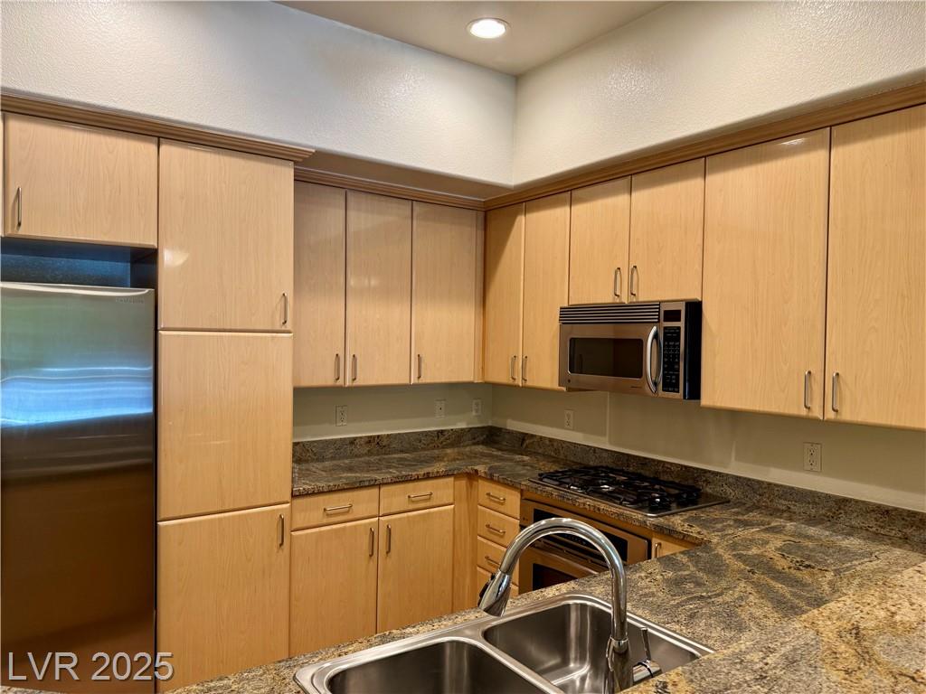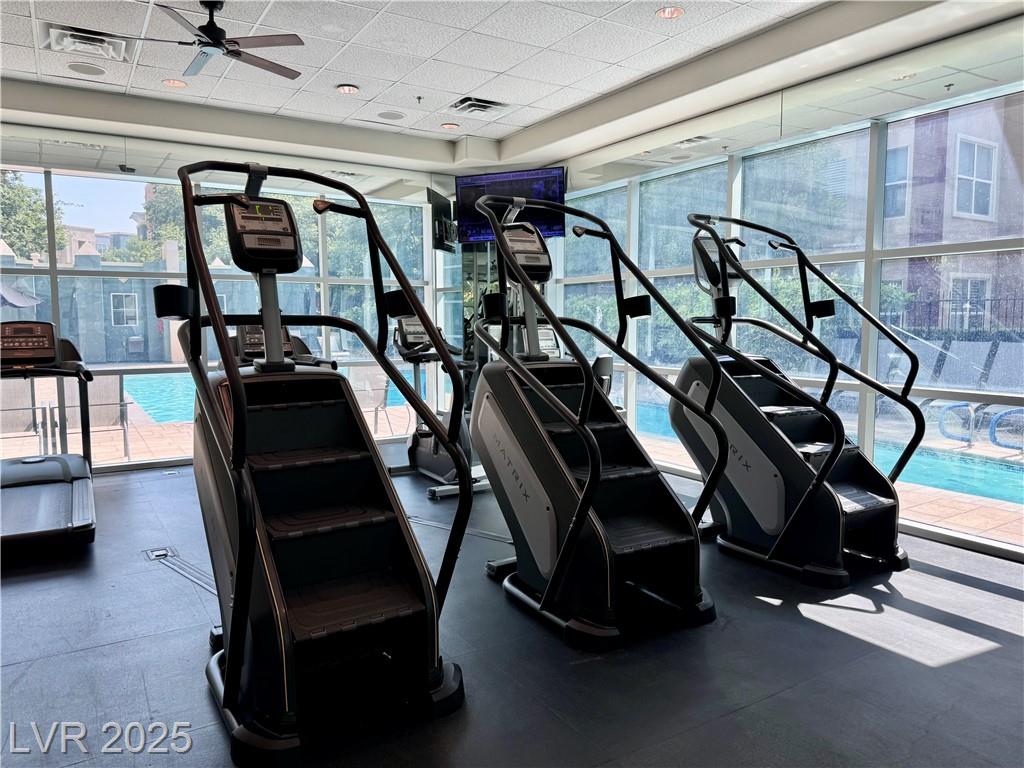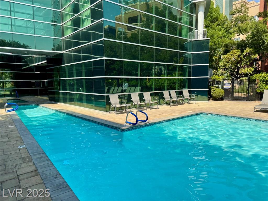 Experience luxury living in this stunning resort-style condo, ideally located just off the iconic Las Vegas Boulevard. This exceptional community offers a wealth of amenities, including: 24-hour guard-gated entry for your peace of mind, two inviting swimming pools, BBQ area nestled in the beautiful “Central Park”, well equipped cardio & weight rooms, convenient onsite management office, elegant carpeted interior hallways. Step inside this beautifully upgraded unit, where you'll discover: stylish kitchen with upgraded cabinets & stainless steel kitchen appliances, washer & dryer, textured tile floors and plush upgraded carpets throughout. Imagine relaxing on your shaded balcony, taking in serene views of the lush greenbelt. Plus, enjoy the comfort & peace of mind of a brand new HVAC unit, installed in 2022, valued at $12,500.