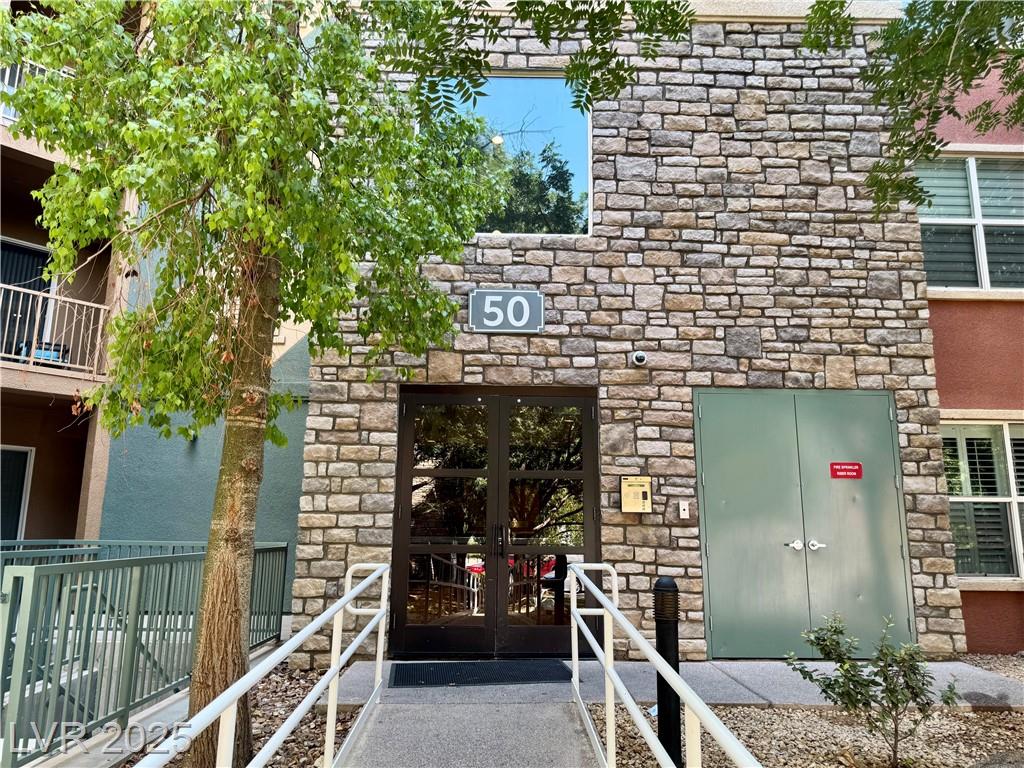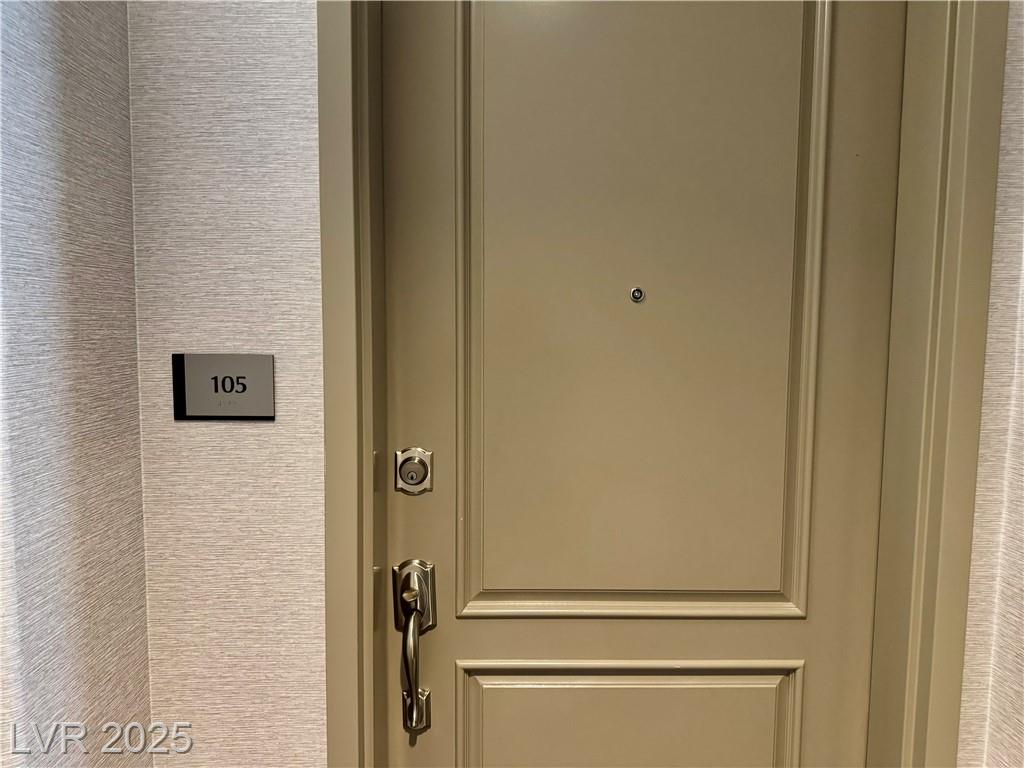 From Las Vegas Blvd & Serene; East on Serene; Left into Manhattan Condos; left guest lane & provide Security with your ID, Business Card & address. Ask security for a loaner FOB to get into the building. Through building 50 glass entry, continue straight pass mailboxes & go through the two fire doors to get to the 1st level units. Go left to unit #105.