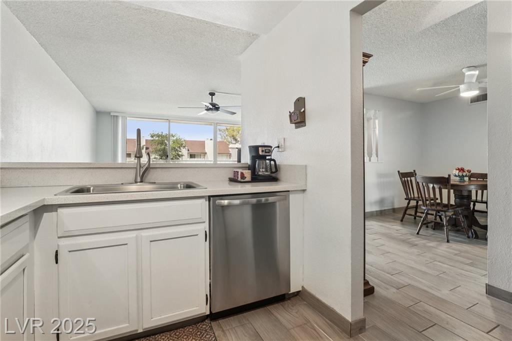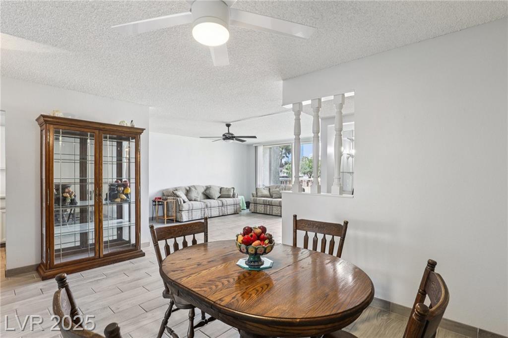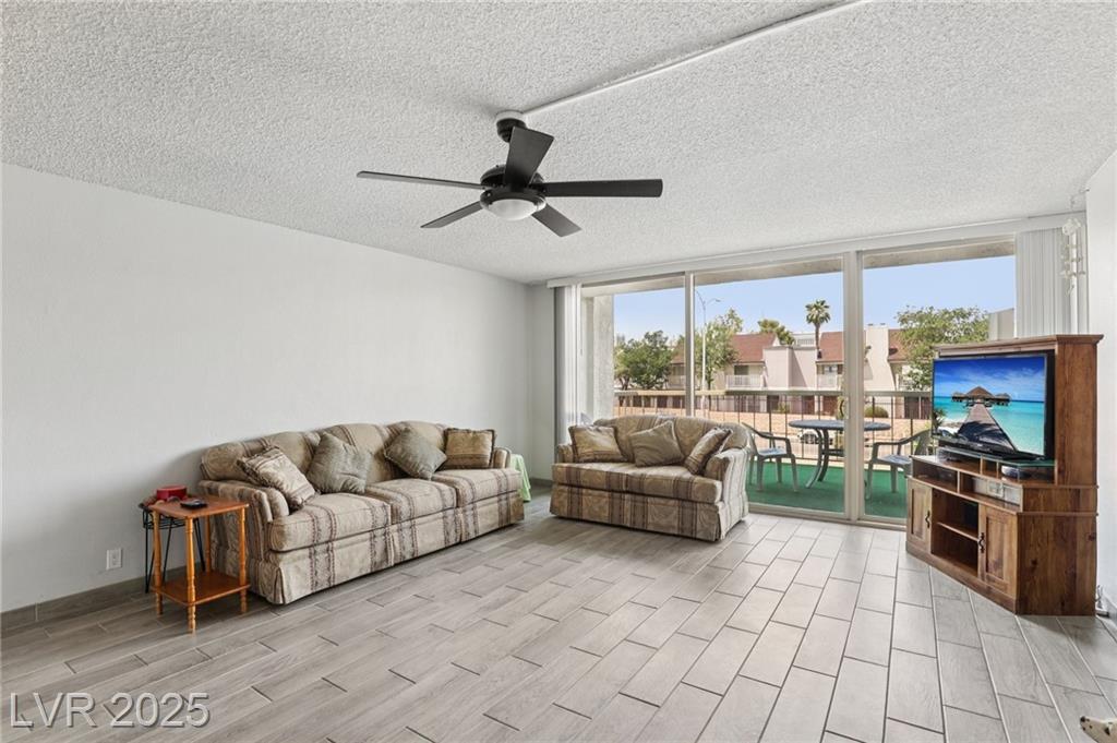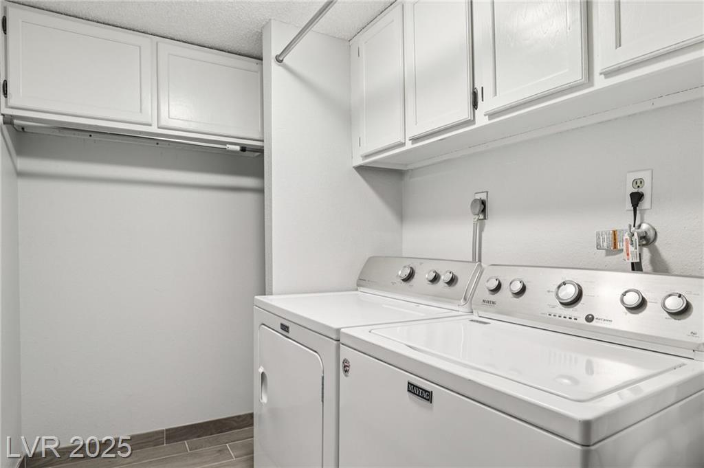 Remodeled 2 bed, 2 bath condo in 55+ guard-gated Casablanca. Features porcelain tile floors thought the entire unit, dual-pane windows, spacious layout, in-unit laundry w/ extra storage, and a generously sized turfed patio for outdoor living. Enjoy resort-style amenities: sparkling pool, relaxing spa, clubhouse, fitness center, and your own covered parking. Brand New AC Unit replaced 2023, Bathroom plumbing updated 2024. Conveniently located by the airport, and the Strip—move-in ready and beautifully upgraded.
