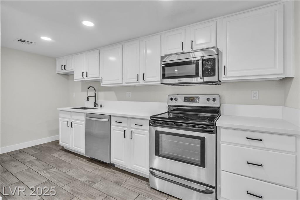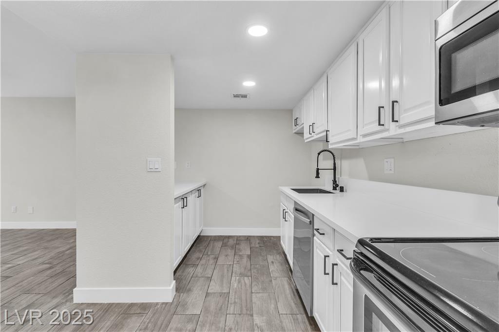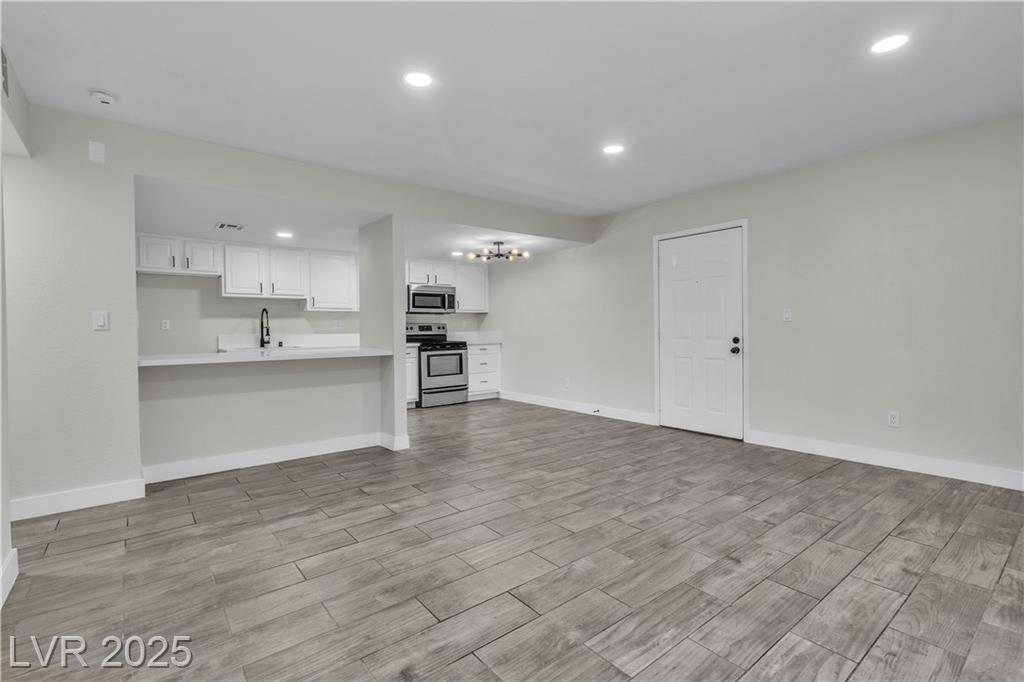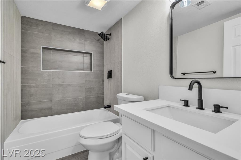 Enjoy coming home to this newly remodeled 2-bedroom, 1-bathroom condo located in the beautiful Bella Vita community! Just minutes away from the Las Vegas strip, this modern and stylish first floor unit features an open-concept layout and upgraded finishes. Step into the living area where you are greeted with wood-look ceramic tile flooring, LED lighting and fresh paint creating a warm and inviting atmosphere. The updated kitchen boasts quartz countertops, breakfast bar, stainless steel appliances, and all new fixtures. This condo has two spacious bedrooms and an updated full bathroom, with custom shower tiles. Enjoy resort-style amenities, including a pool, fitness center, clubhouse, and beautifully landscaped grounds. This prime location is just minutes from the 15 freeways, shopping, dining, and recreation. Don’t miss your chance to own this turn-key condo!