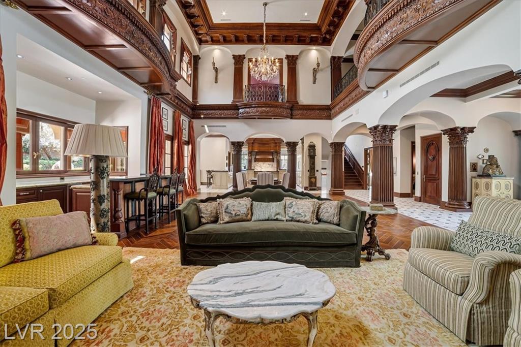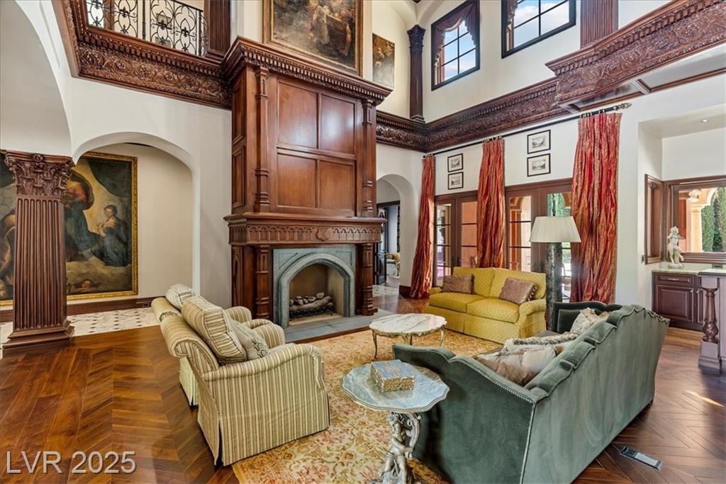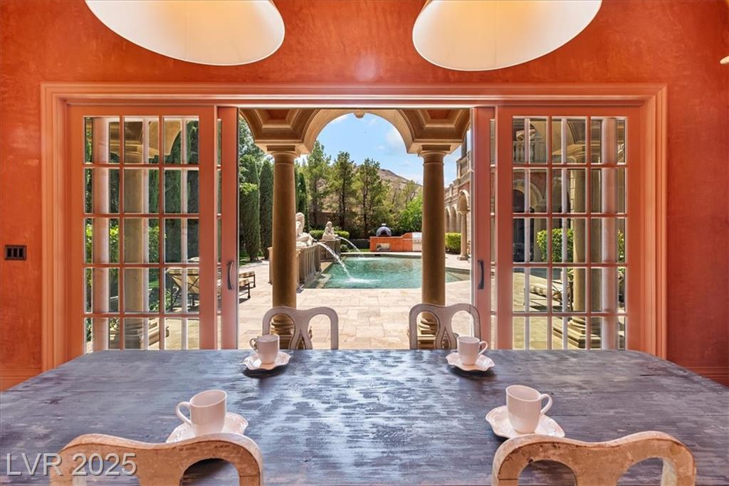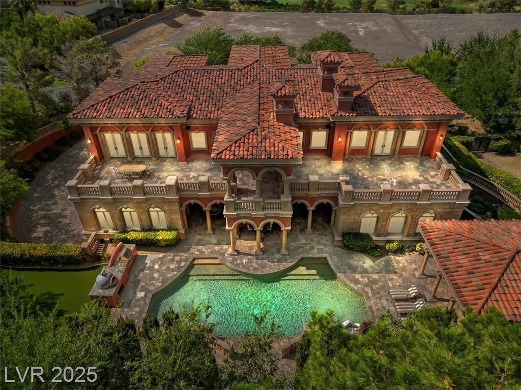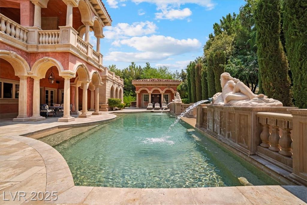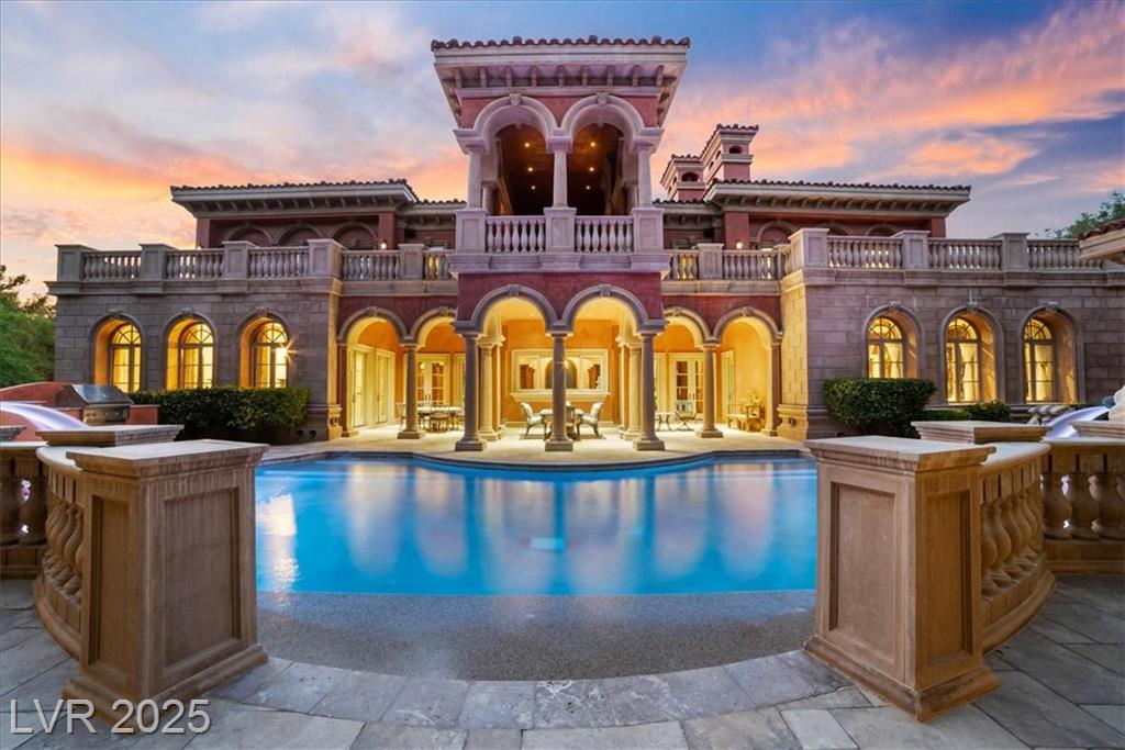Experience refined European elegance in this one-of-a-kind estate, tucked behind the exclusive guard gates of Southern Highlands. A true masterpiece inspired by the beauty of Lake Como. This Old World Italian Villa spans three levels and blends European charm with refined modern luxury. Featuring 6 elegant bedroom suites and 8 bathrooms, this architectural gem showcases ornate ironwork, imported stone & custom millwork throughout. Gentleman’s library, formal dining room with hand-painted murals evoke Italian grandeur The European-style kitchen includes dual islands with butcher block and marble countertops, professional-grade appliances, an onyx bar, breakfast room overlooking gardens Upstairs offers 4 suites, a tranquil lounge, balconies with views of the Italian-inspired pool & CASITA manicured grounds. The lower level features a gym with steam and dry saunas and an 8 car climate-controlled garage. A true estate for those seeking timeless elegance.