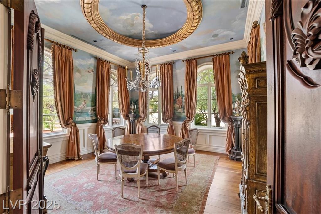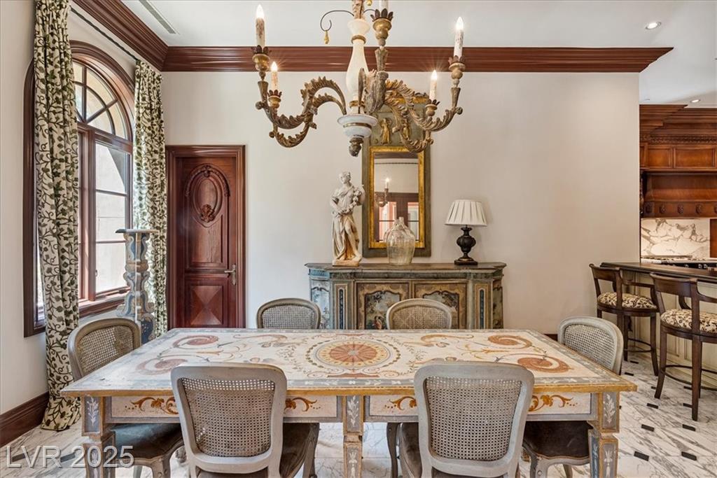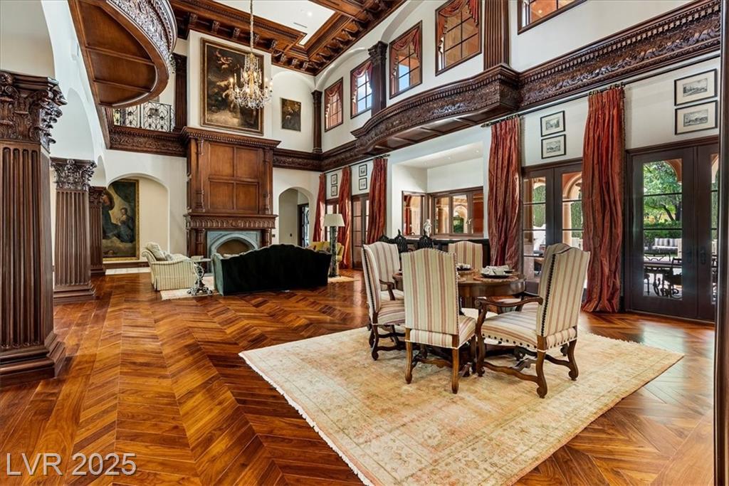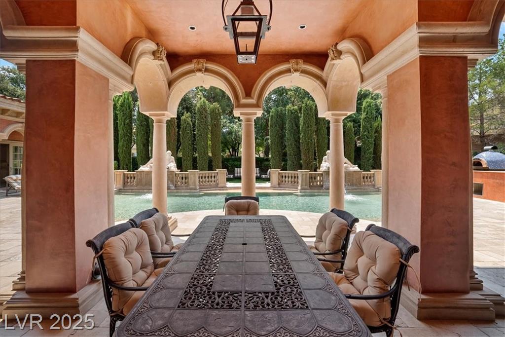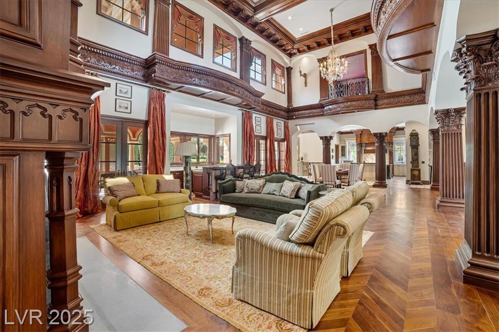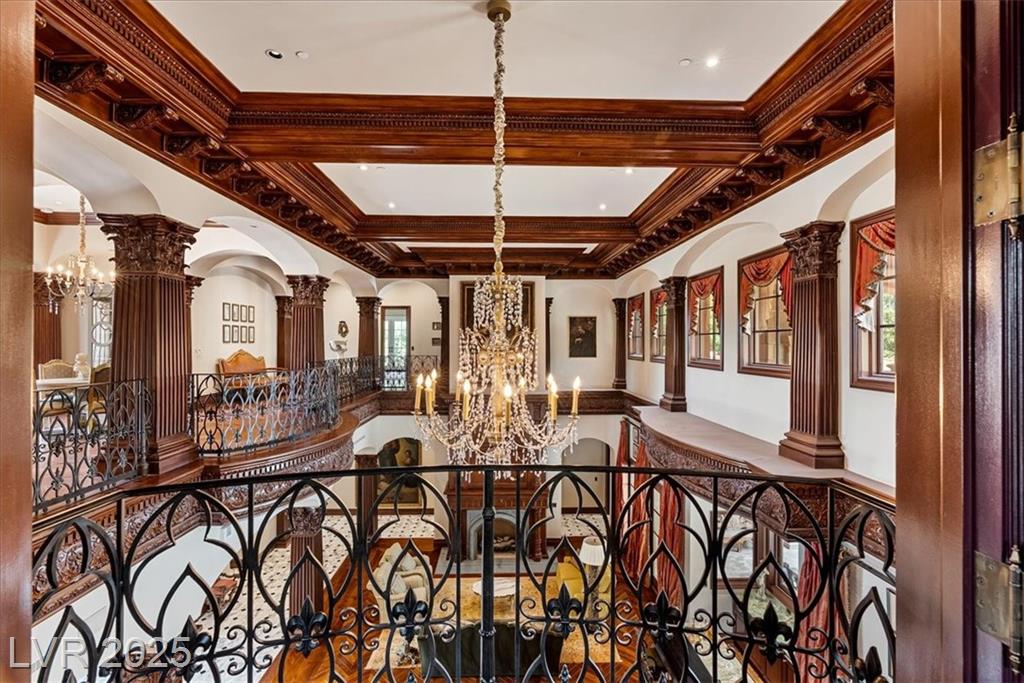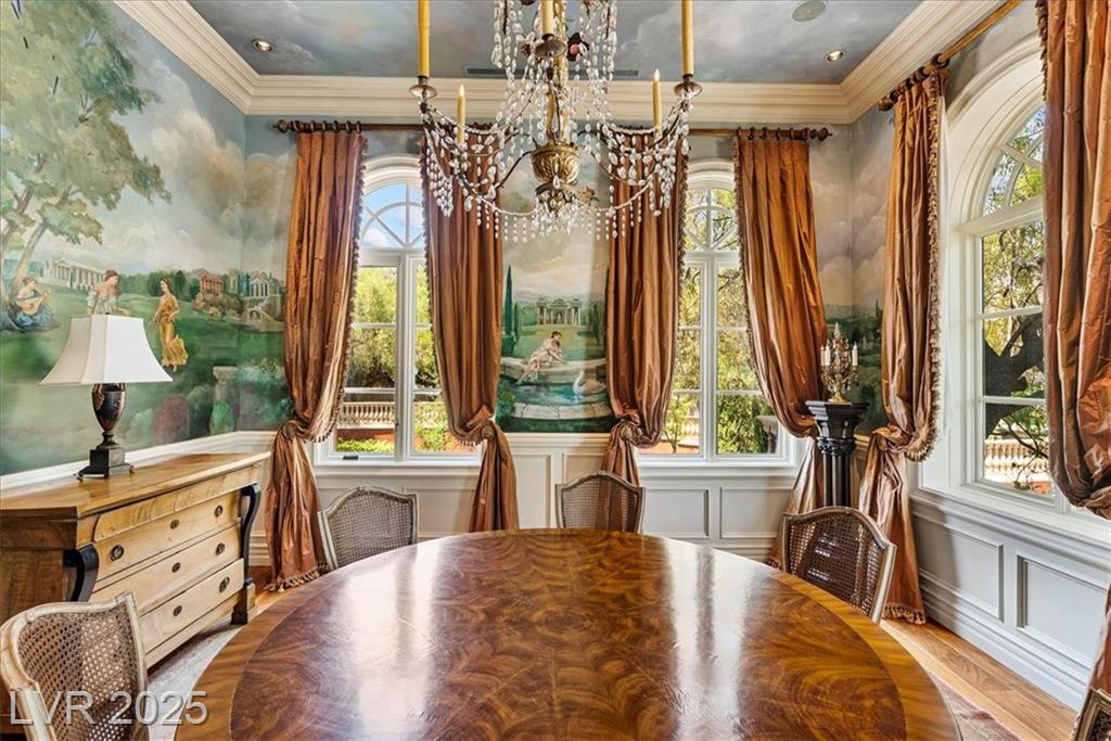 Experience refined European elegance in this one-of-a-kind estate, tucked behind the exclusive guard gates of Southern Highlands. A true masterpiece inspired by the beauty of Lake Como. This Old World Italian Villa spans three levels and blends European charm with refined modern luxury. Featuring 6 elegant bedroom suites and 8 bathrooms, this architectural gem showcases ornate ironwork, imported stone & custom millwork throughout. Gentleman’s library, formal dining room with hand-painted murals evoke Italian grandeur The European-style kitchen includes dual islands with butcher block and marble countertops, professional-grade appliances, an onyx bar, breakfast room overlooking gardens Upstairs offers 4 suites, a tranquil lounge, balconies with views of the Italian-inspired pool & CASITA manicured grounds. The lower level features a gym with steam and dry saunas and an 8 car climate-controlled garage. A true estate for those seeking timeless elegance.