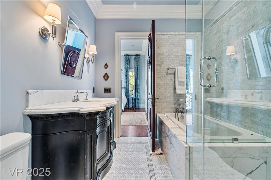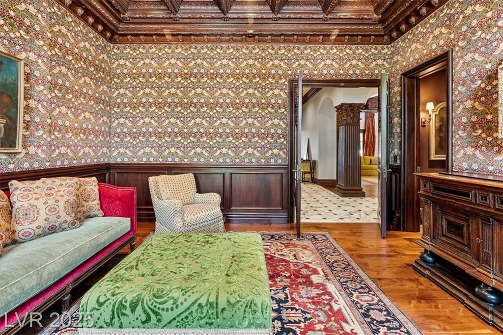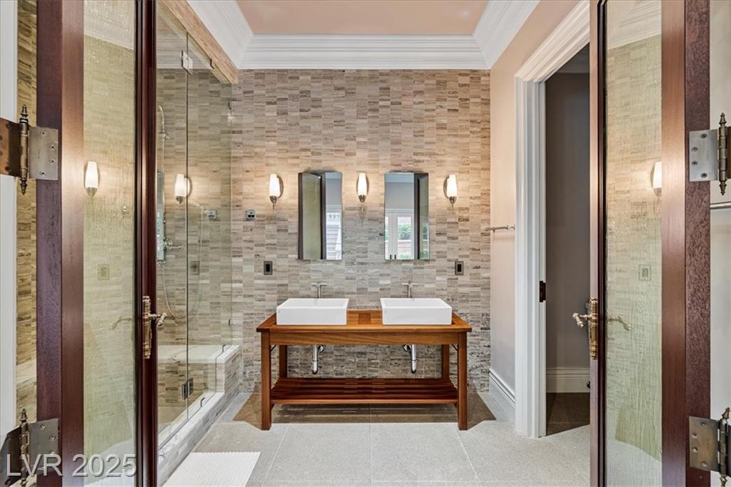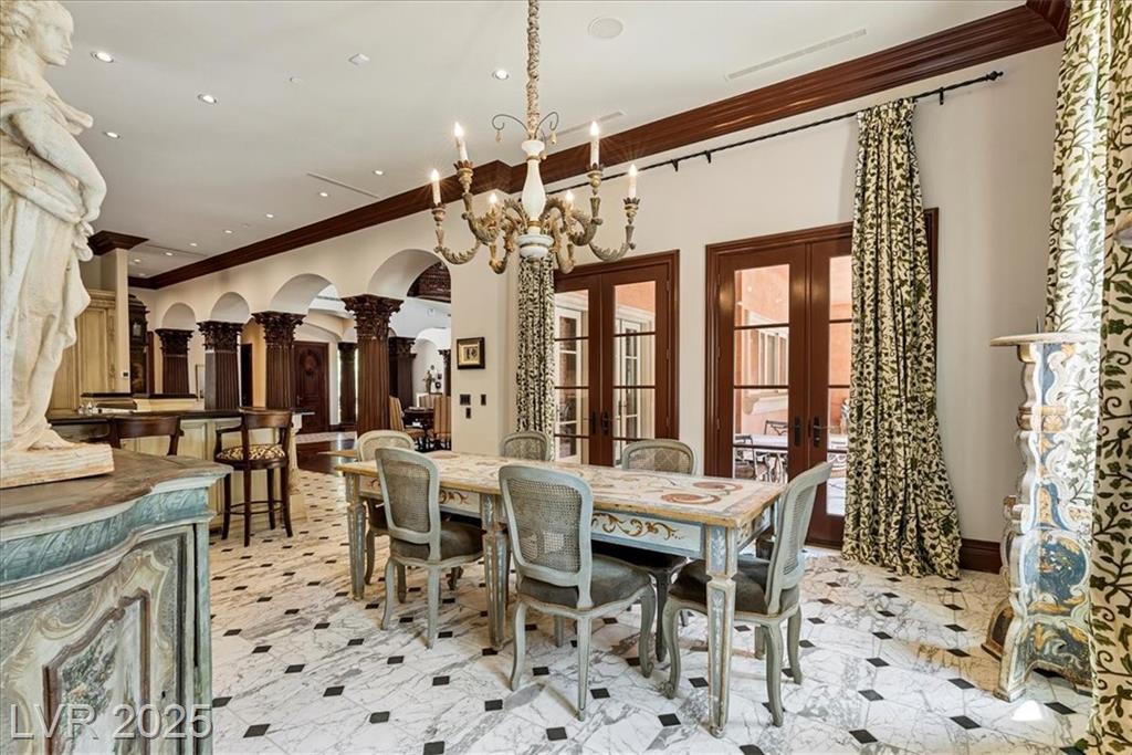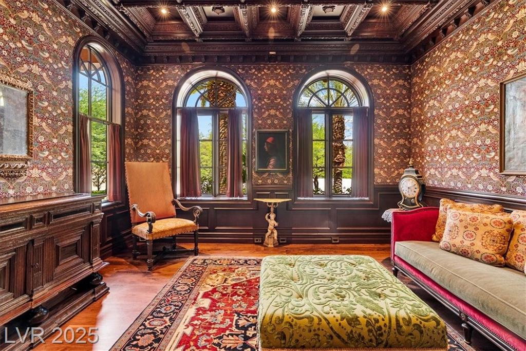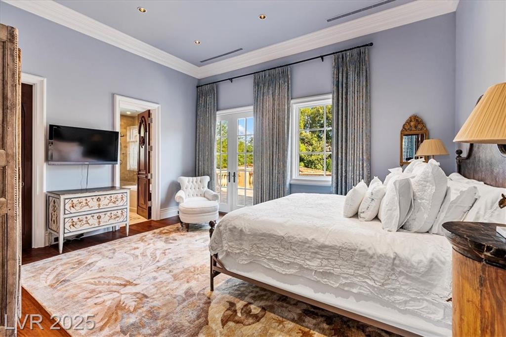 Experience refined European elegance in this one-of-a-kind estate, tucked behind the exclusive guard gates of Southern Highlands. A true masterpiece inspired by the beauty of Lake Como. This Old World Italian Villa spans three levels and blends European charm with refined modern luxury. Featuring 6 elegant bedroom suites and 8 bathrooms, this architectural gem showcases ornate ironwork, imported stone & custom millwork throughout. Gentleman’s library, formal dining room with hand-painted murals evoke Italian grandeur The European-style kitchen includes dual islands with butcher block and marble countertops, professional-grade appliances, an onyx bar, breakfast room overlooking gardens Upstairs offers 4 suites, a tranquil lounge, balconies with views of the Italian-inspired pool & CASITA manicured grounds. The lower level features a gym with steam and dry saunas and an 8 car climate-controlled garage. A true estate for those seeking timeless elegance.