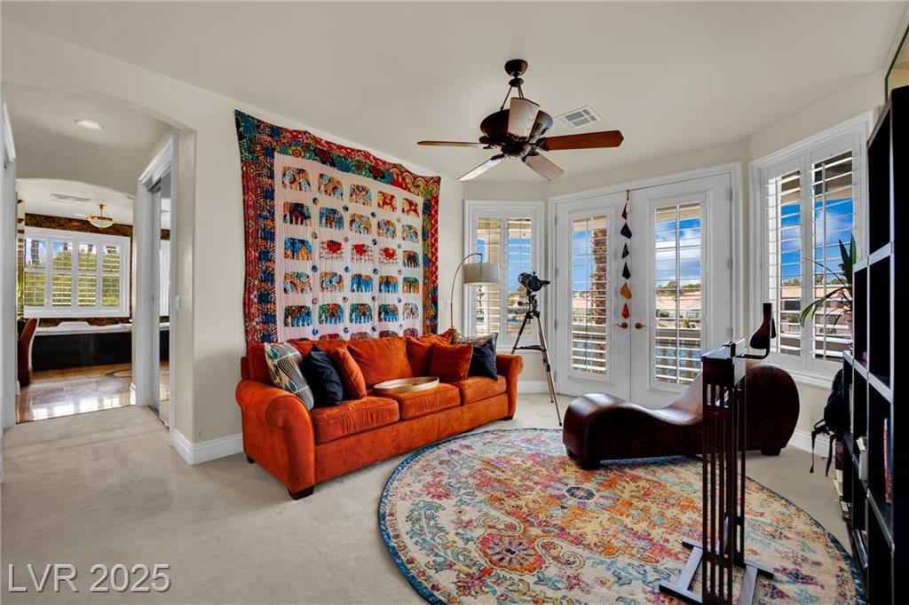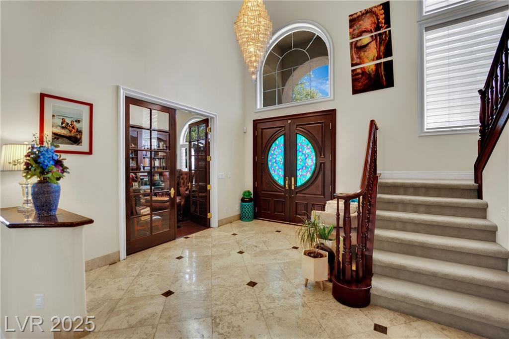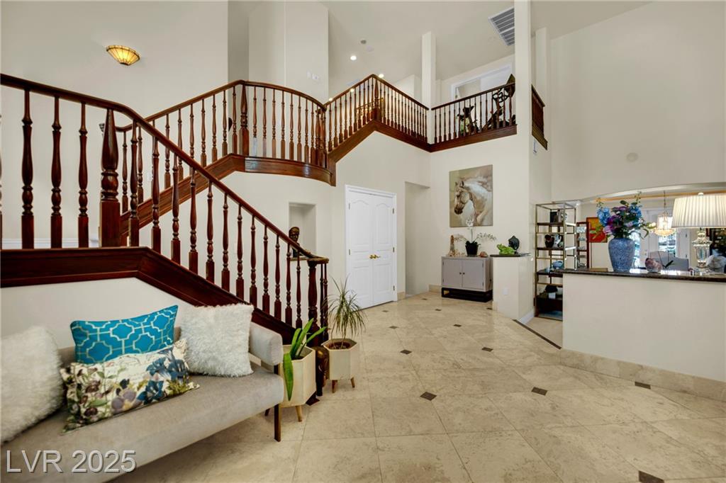 From Summerlin Parkway, exit north on Buffalo Dr. Turn left on Regatta Dr / Smoke Ranch Rd. Enter the Diamond Bay community gate. Turn left on Desert Jewel Ave and follow it to the end of the cul-de-sac.The home is located at the end.