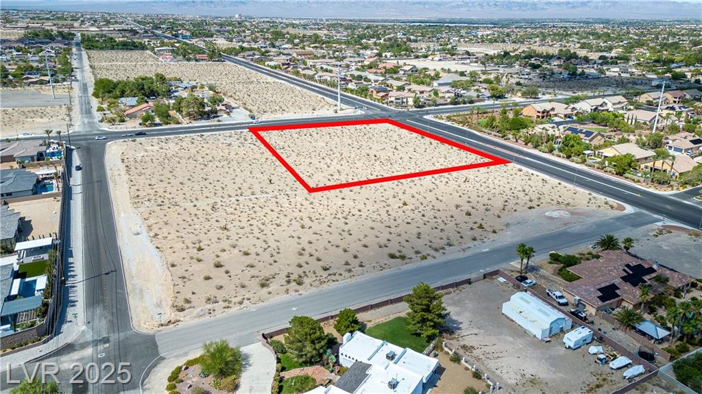 Prime corner lot at W Lone Mountain Rd & N Ft Apache Rd with 4-way signal. Zoned R-E (2 units/acre), surrounded by million-dollar homes. Mountain and Strip views. Improvements include curbs, gutters, and sidewalks.