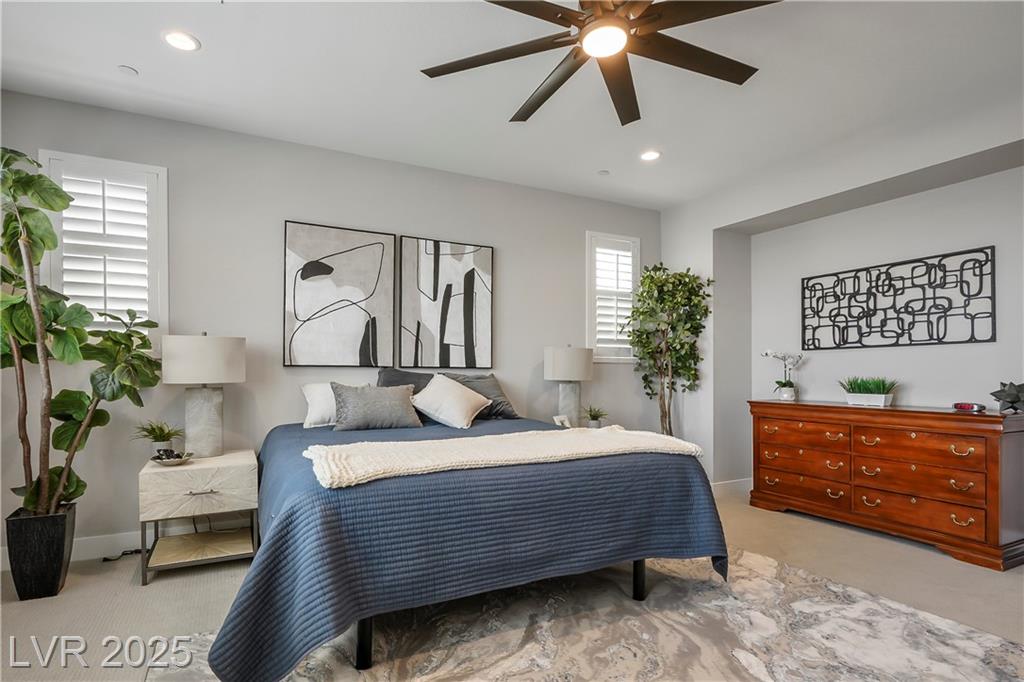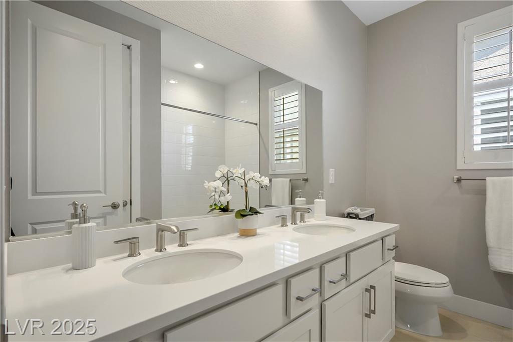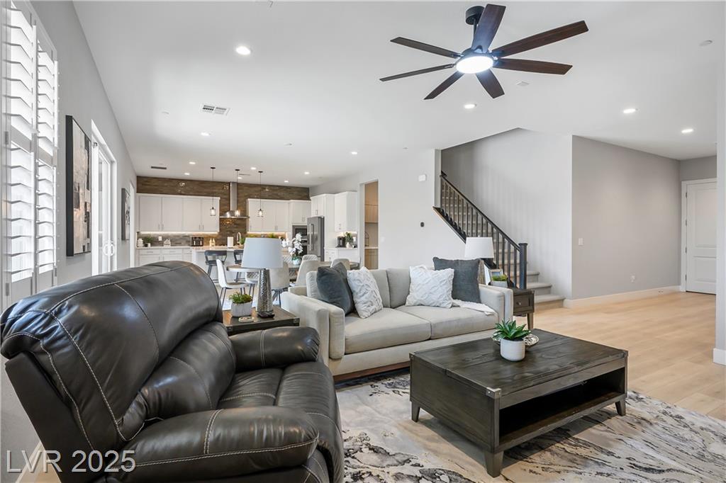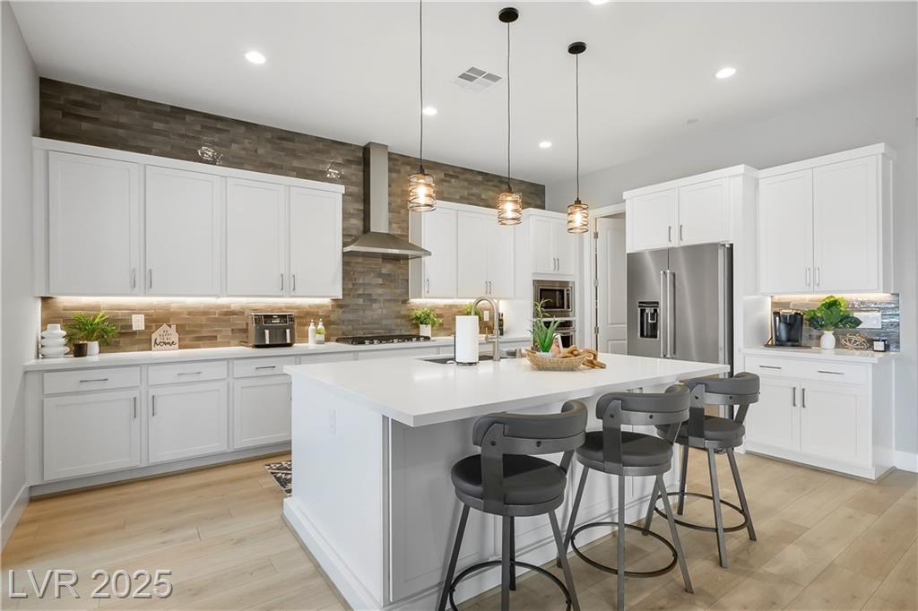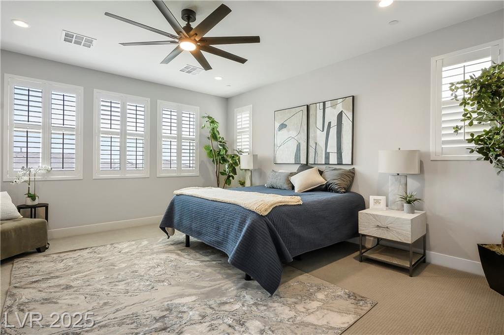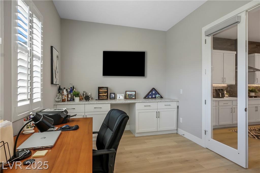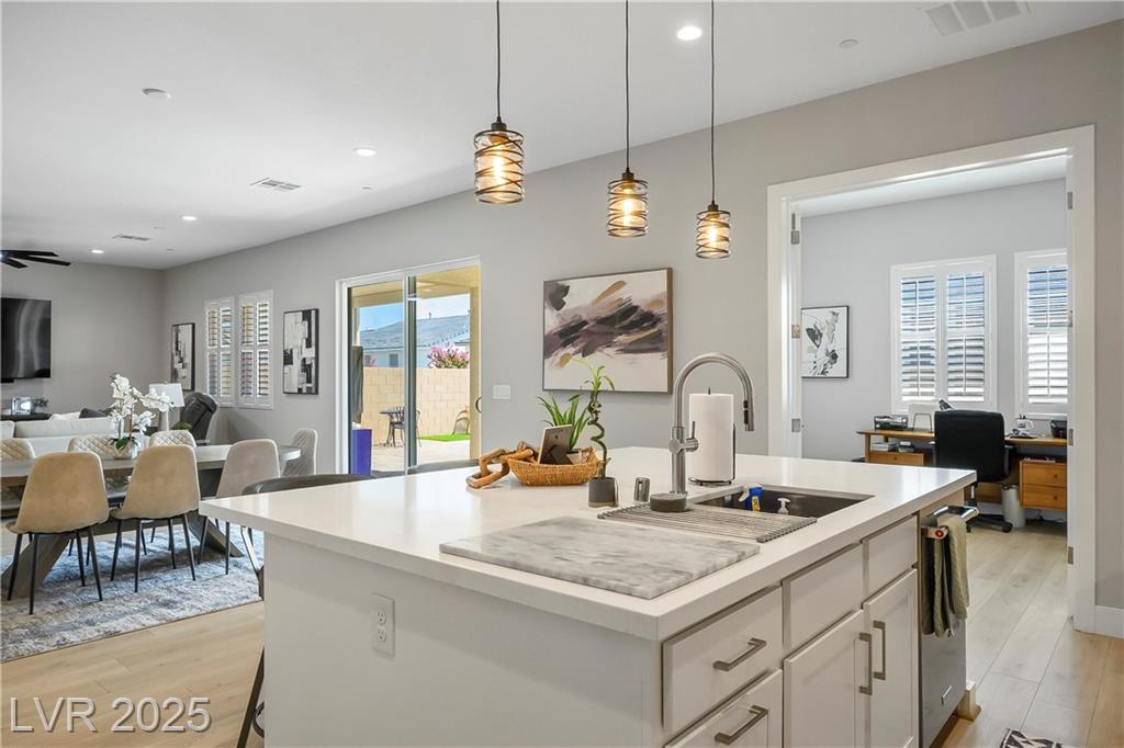 Welcome to this beautifully upgraded Carini model by Toll Brothers, nestled in highly desirable Skye Canyon. Designed for both comfort and style, the open-concept kitchen flows effortlessly into the dining and living area, office is nearby for remote work or study. The luxurious primary suite includes custom closet built-ins, along with two other bedrooms that also feature built-in organization. Enjoy over $125,000 in owner upgrades, including sparkling pool with water features, smart home features, laundry room built-ins, oversized 3-car garage complete with overhead storage, a built-in workbench, expanded covered patio, and tankless water heater and more! This home combines designer finishes, smart functionality, and resort-style outdoor living—all in one of Las Vegas’s most sought-after master-planned communities.