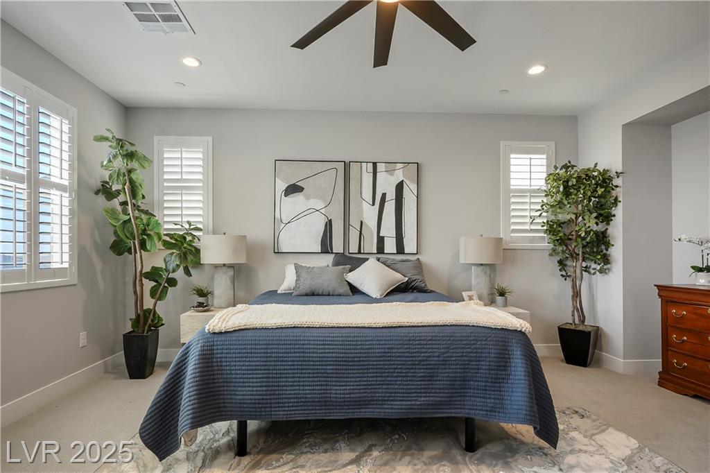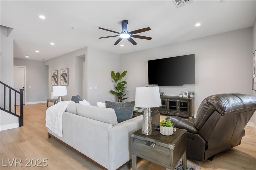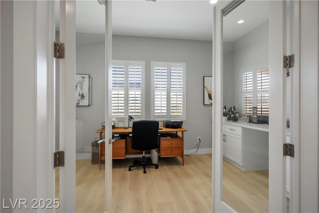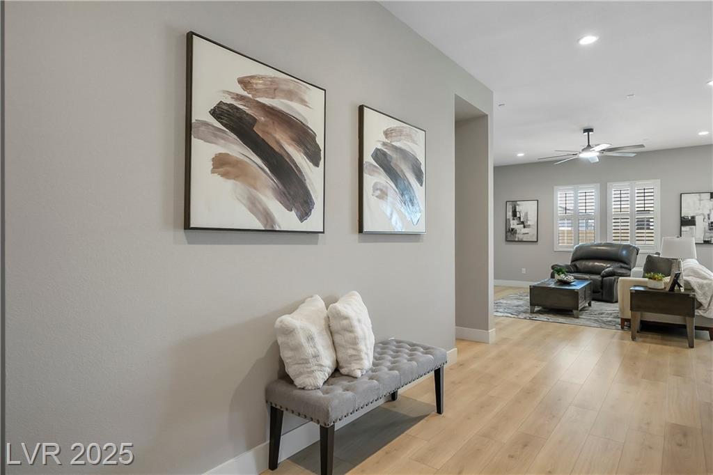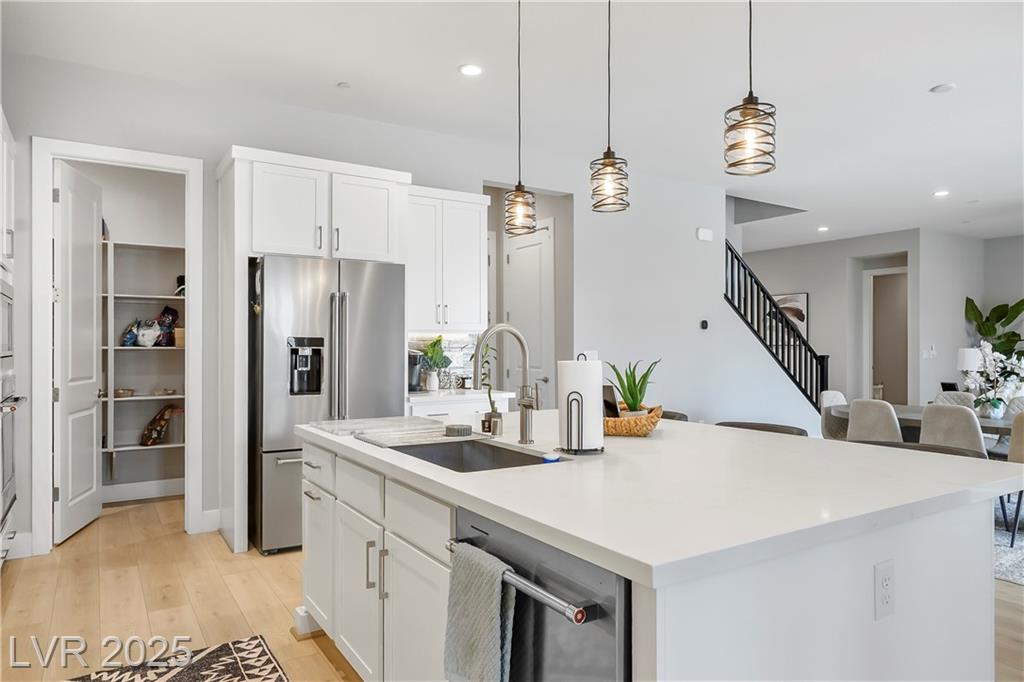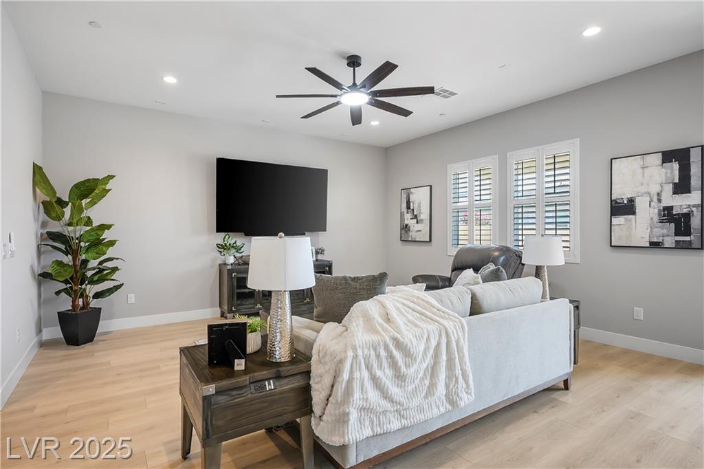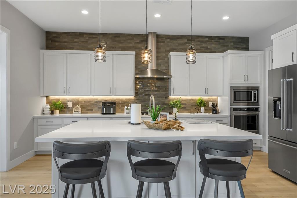 Welcome to this beautifully upgraded Carini model by Toll Brothers, nestled in highly desirable Skye Canyon. Designed for both comfort and style, the open-concept kitchen flows effortlessly into the dining and living area, office is nearby for remote work or study. The luxurious primary suite includes custom closet built-ins, along with two other bedrooms that also feature built-in organization. Enjoy over $125,000 in owner upgrades, including sparkling pool with water features, smart home features, laundry room built-ins, oversized 3-car garage complete with overhead storage, a built-in workbench, expanded covered patio, and tankless water heater and more! This home combines designer finishes, smart functionality, and resort-style outdoor living—all in one of Las Vegas’s most sought-after master-planned communities.