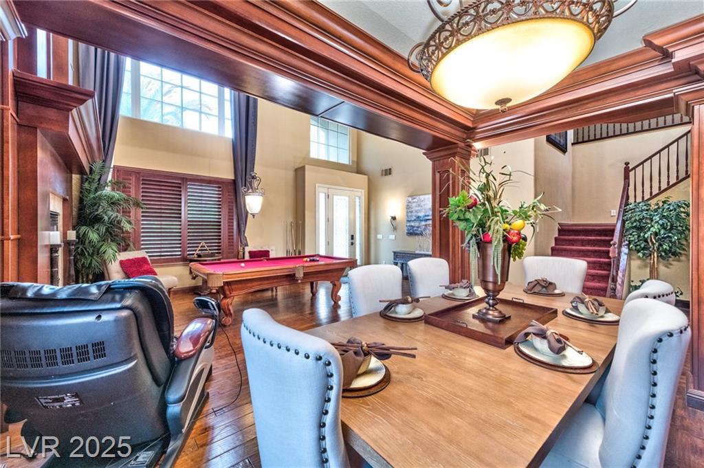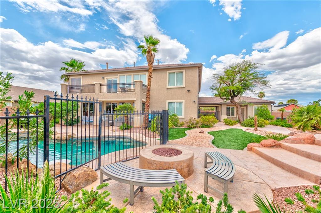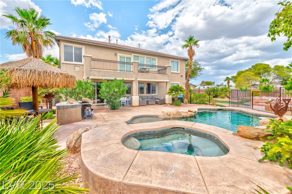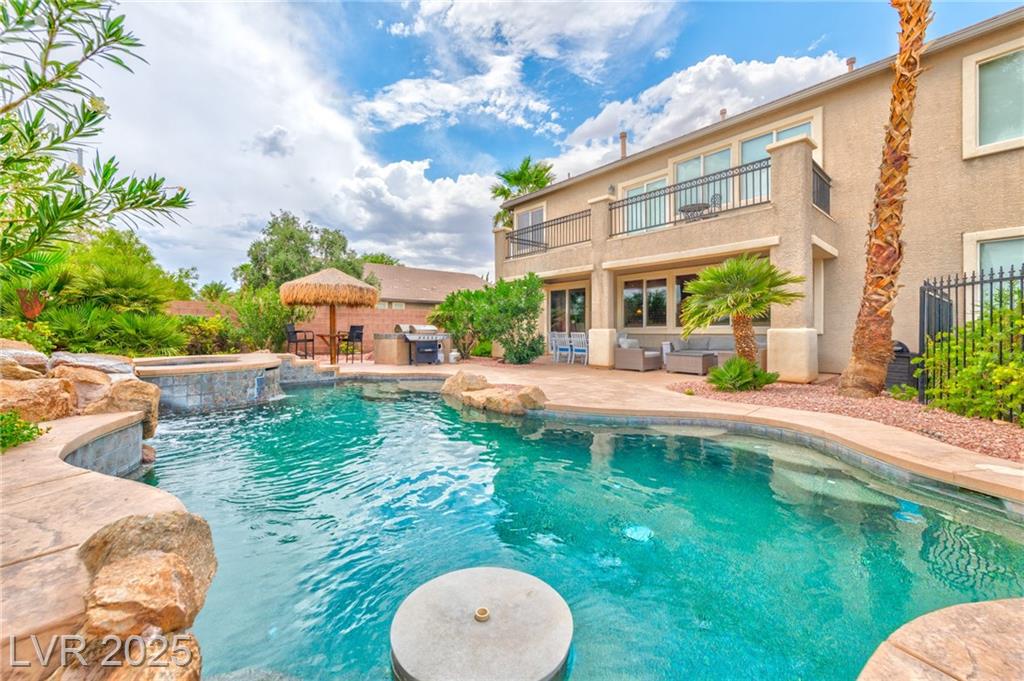 Experience unparalleled luxury in this stunning 7-bedroom, 5-bathroom mansion, just minutes from the Las Vegas Strip. The main house boasts 6 beautifully designed bedrooms, complemented by a detached casita with a 7th bedroom—ideal for guests or family. Inside, a grand gathering space flows into a professional-grade kitchen with top-tier appliances, perfect for entertaining. A game room with a pool table adds fun, while the resort-style backyard features a pool, spa, and firepit for relaxation under the stars. With elegant finishes and a prime location, this estate is a rare find for discerning buyers seeking a luxurious retreat or investment opportunity. Schedule your private tour today and step into sophistication! Approximately 4338sf of living space with the casita.