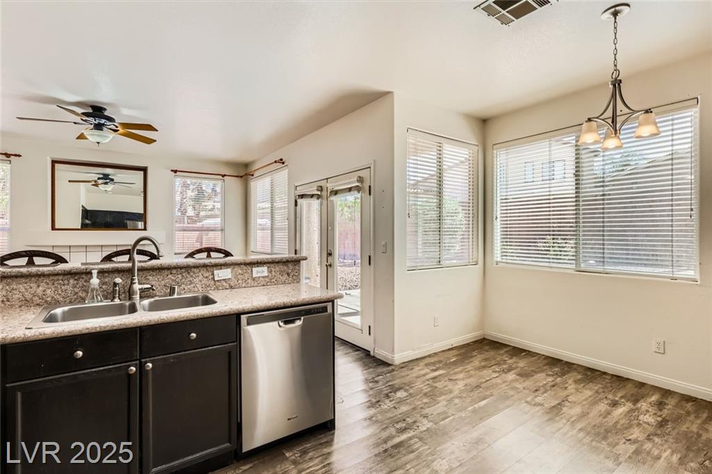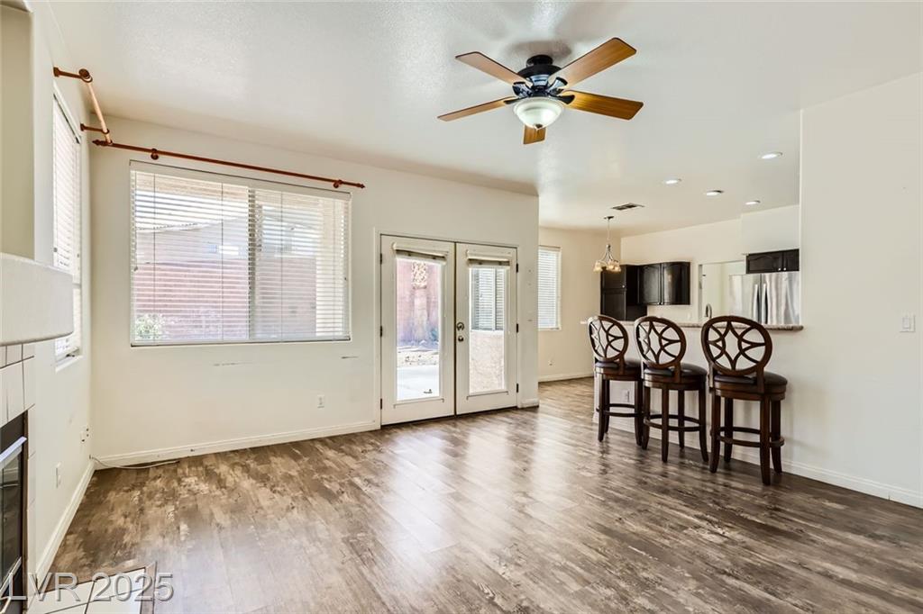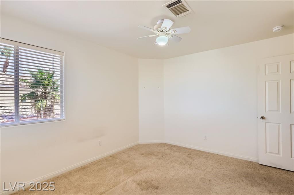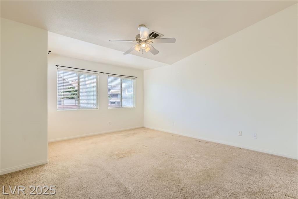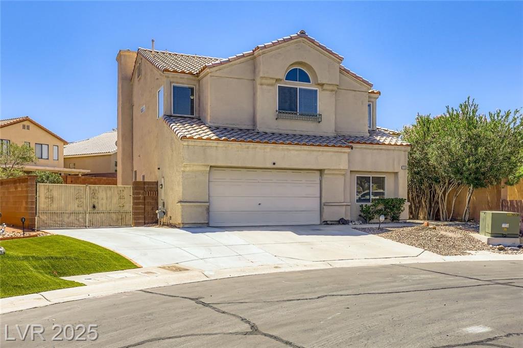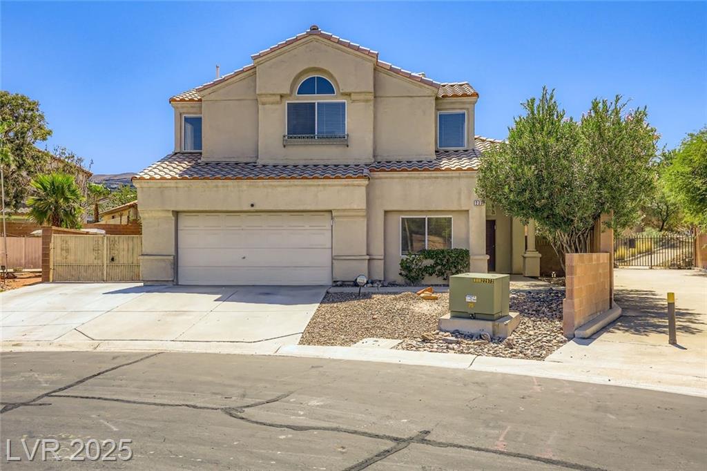 BEAUTIFUL HOME IN GATED COMMUNITY ON OVERSIZED CORNER PIE-SHAPED LOT! BRIGHT, OPEN & AIRY FLOOR PLAN FEATURES A VAULTED FORMAL LIVING ROOM WITH ABUNDANT NATURAL LIGHT. PLANK LAMINATE FLOORING DOWNSTAIRS. SEPARATE FAMILY ROOM OFFERS A CEILING FAN & A FIREPLACE. THE KITCHEN INCLUDES GRANITE COUNTERTOPS, BREAKFAST BAR, AND AMPLE CABINET STORAGE, WITH A SEPARATE DINING AREA OFF THE KITCHEN. THE OVERSIZED PRIMARY SUITE HAS A LARGE WALK-IN CLOSET, DUAL SINKS, A SOAKING TUB WITH A SUNLIT WINDOW, AND A SHOWER. SECONDARY BEDROOMS INCLUDE CEILING FANS. THE LOFT OFFERS FLEXIBILITY AS A 2ND FAMILY ROOM, PLAY AREA, OR OFFICE. TWO-CAR GARAGE INCLUDES A WORKSHOP AREA THAT COULD EASILY BE CONVERTED INTO A 5TH BEDROOM. TWO NEW A/C UNITS INSTALLED IN 2021. THE BACKYARD FEATURES A PATIO, DOG RUN AREA, & LOW-MAINTENANCE LANDSCAPING. THE COMMUNITY OFFERS BEAUTIFULLY MAINTAINED PARKS & WALKING TRAILS. CONVENIENTLY LOCATED NEAR THE DISTRICT, GREEN VALLEY RANCH, SHOPPING, DINING, ENTERTAINMENT, & FREEWAY