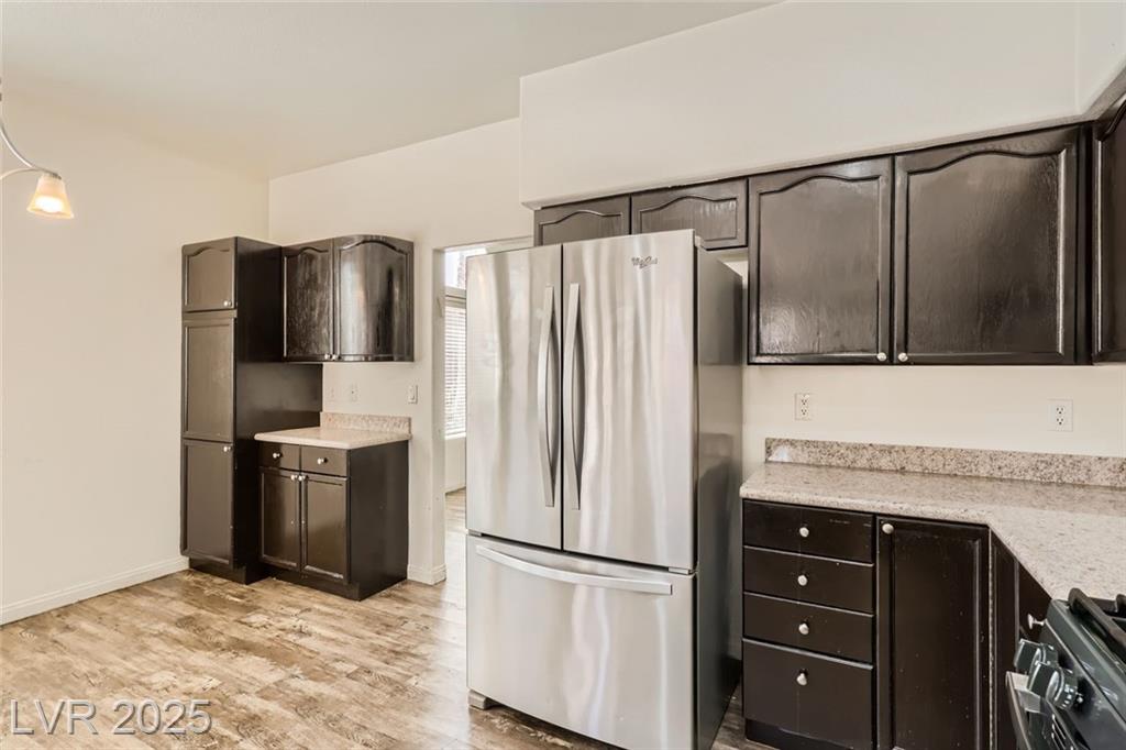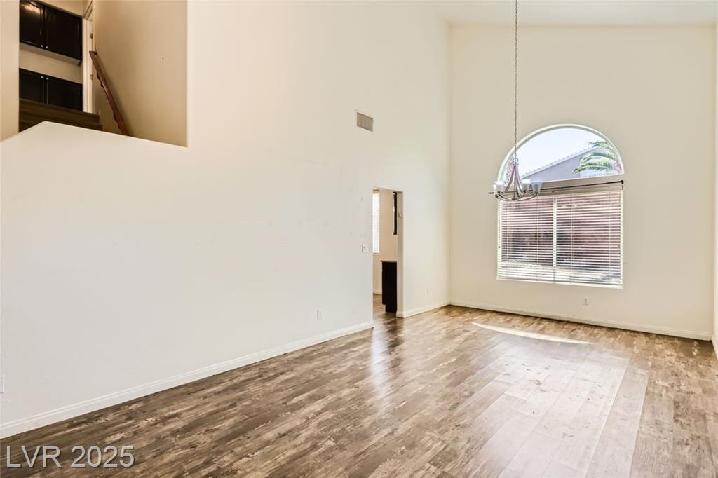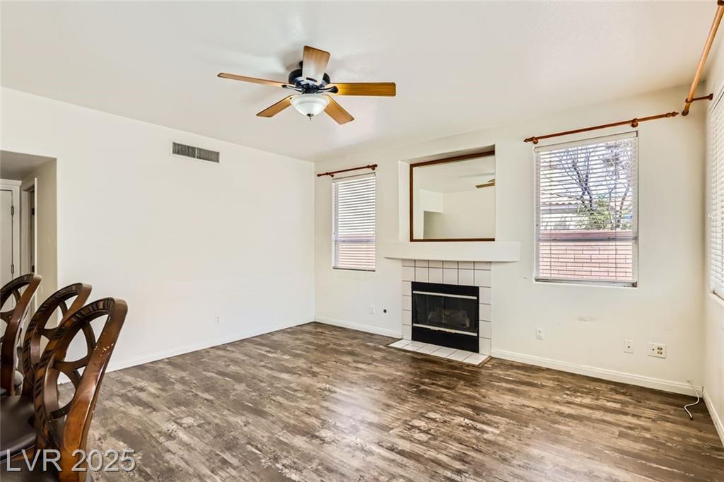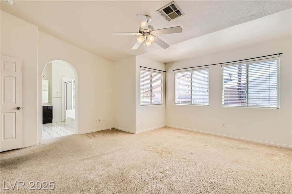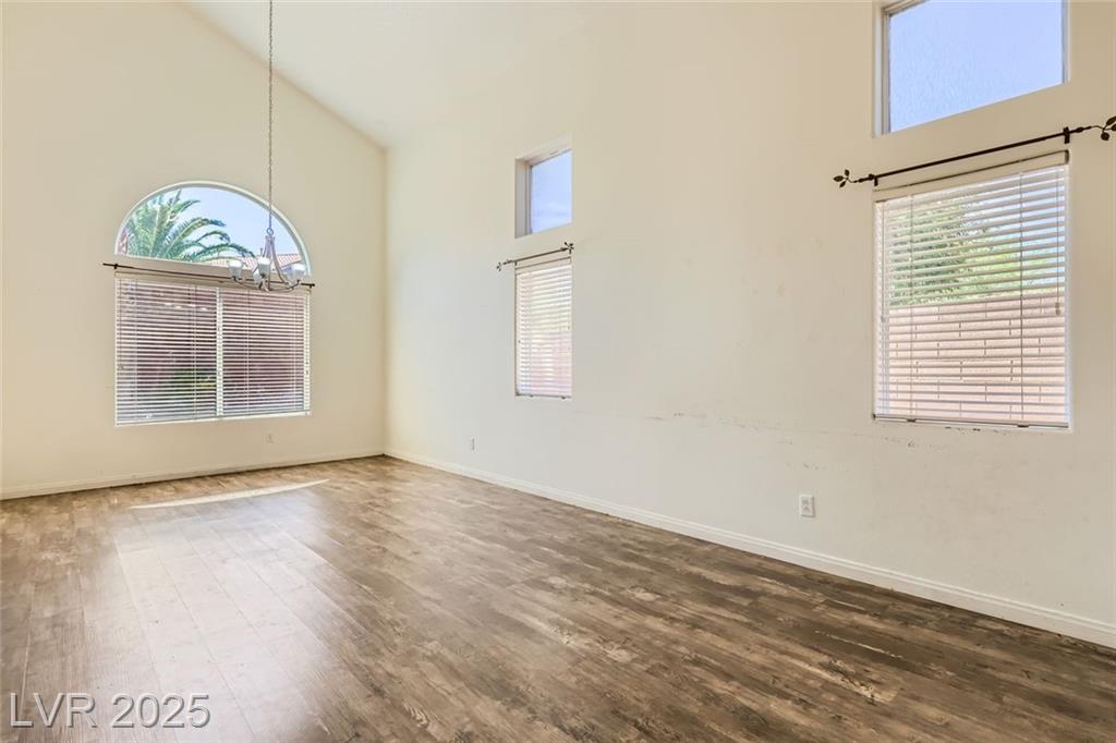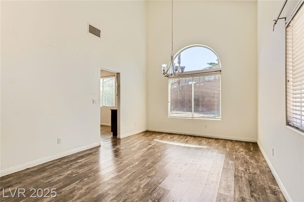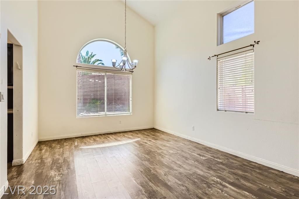 BEAUTIFUL HOME IN GATED COMMUNITY ON OVERSIZED CORNER PIE-SHAPED LOT! BRIGHT, OPEN & AIRY FLOOR PLAN FEATURES A VAULTED FORMAL LIVING ROOM WITH ABUNDANT NATURAL LIGHT. PLANK LAMINATE FLOORING DOWNSTAIRS. SEPARATE FAMILY ROOM OFFERS A CEILING FAN & A FIREPLACE. THE KITCHEN INCLUDES GRANITE COUNTERTOPS, BREAKFAST BAR, AND AMPLE CABINET STORAGE, WITH A SEPARATE DINING AREA OFF THE KITCHEN. THE OVERSIZED PRIMARY SUITE HAS A LARGE WALK-IN CLOSET, DUAL SINKS, A SOAKING TUB WITH A SUNLIT WINDOW, AND A SHOWER. SECONDARY BEDROOMS INCLUDE CEILING FANS. THE LOFT OFFERS FLEXIBILITY AS A 2ND FAMILY ROOM, PLAY AREA, OR OFFICE. TWO-CAR GARAGE INCLUDES A WORKSHOP AREA THAT COULD EASILY BE CONVERTED INTO A 5TH BEDROOM. TWO NEW A/C UNITS INSTALLED IN 2021. THE BACKYARD FEATURES A PATIO, DOG RUN AREA, & LOW-MAINTENANCE LANDSCAPING. THE COMMUNITY OFFERS BEAUTIFULLY MAINTAINED PARKS & WALKING TRAILS. CONVENIENTLY LOCATED NEAR THE DISTRICT, GREEN VALLEY RANCH, SHOPPING, DINING, ENTERTAINMENT, & FREEWAY