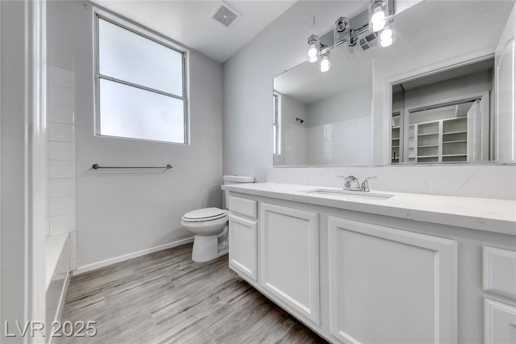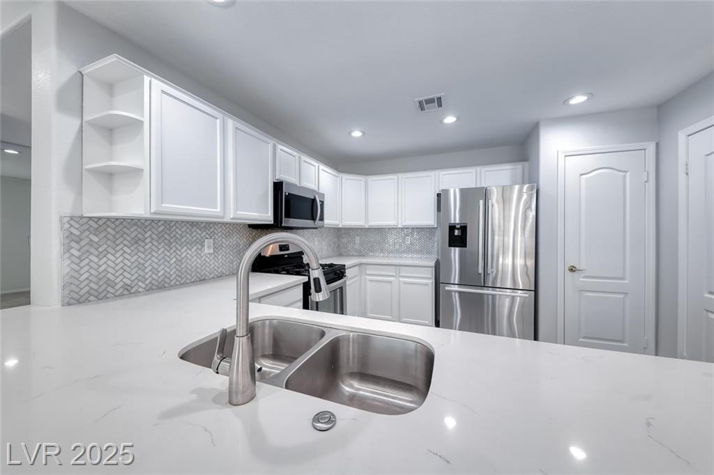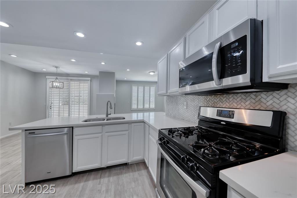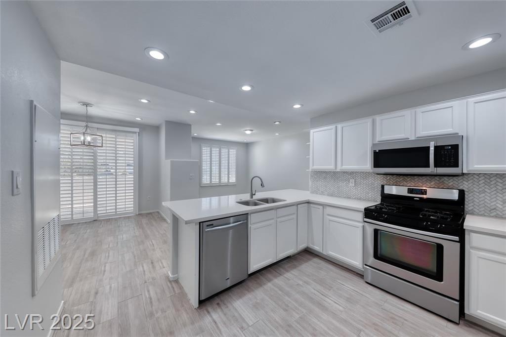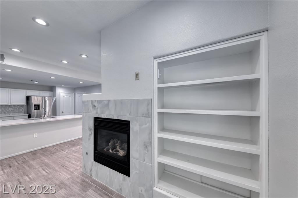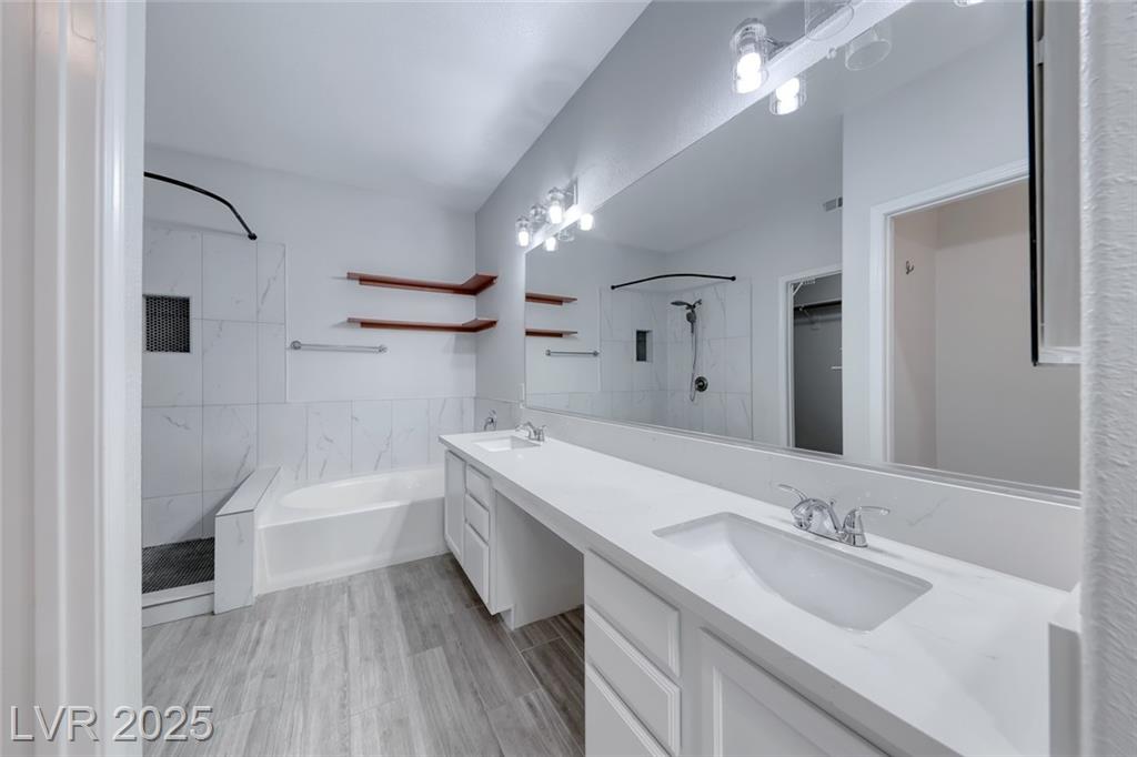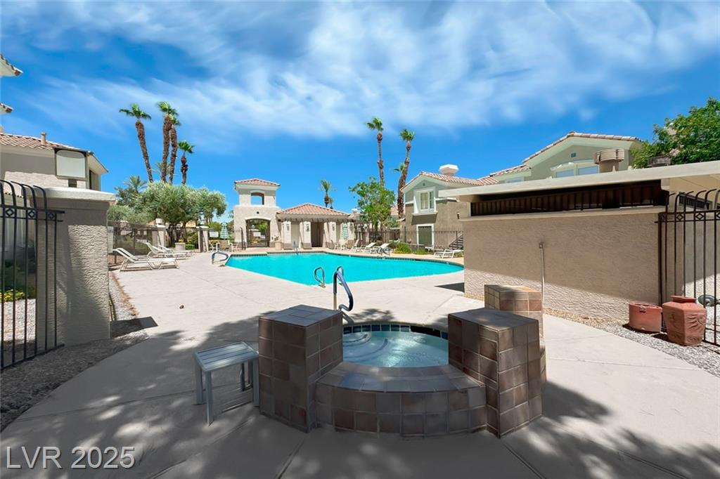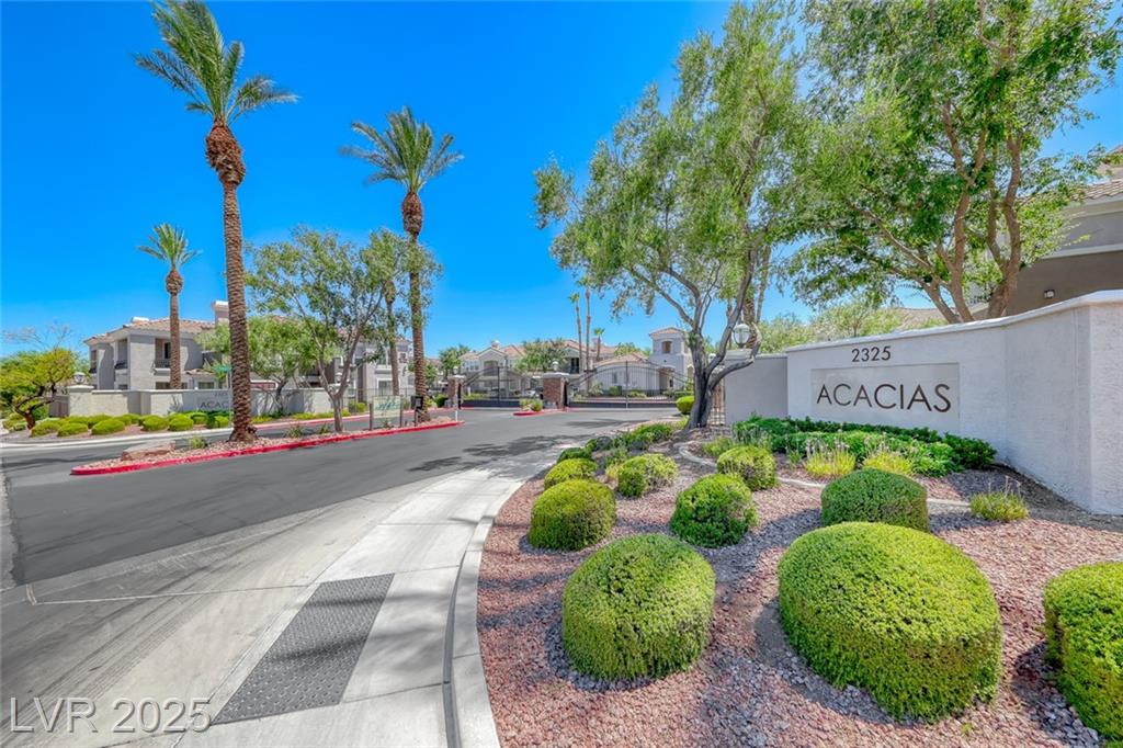 Welcome To This 1st Floor Unit In Gated Condo Community In The Heart Of Henderson. Ideally Located Next To Pool/Spa & Gate Entry, This Home Offers Convenience & Comfort In A Well-Maintained Setting. Featuring Bright White & Grey Tones, Large Windows & A Mix Of Wood Tile & Plush Carpet - The Space Feels Clean, Bright & Move-In Ready. Living & Dining Areas Are Elegantly Divided By A Cozy Fireplace While Maintaining A Smooth Open Layout Throughout. Kitchen Features Marble Countertops, Stainless Steel Appliances, Tile Backsplash, Large Breakfast Bar & Plenty Of Cabinet & Pantry Storage. Bedrooms Are Thoughtfully Positioned On Opposite Sides Of The Unit. Spacious & Well Lit Primary Suite Offers Private Patio Access & Roomy Walk-In Closet. Primary Bath W/ Double Sinks, XL Vanity Mirror, Custom Shower & Soaking Tub. Built-Ins Throughout Offer Great Display & Storage Options. Community Features Pool/Spa, Park, Covered Parking & Ample Guest Parking. Minutes From Shopping, Dining & More!