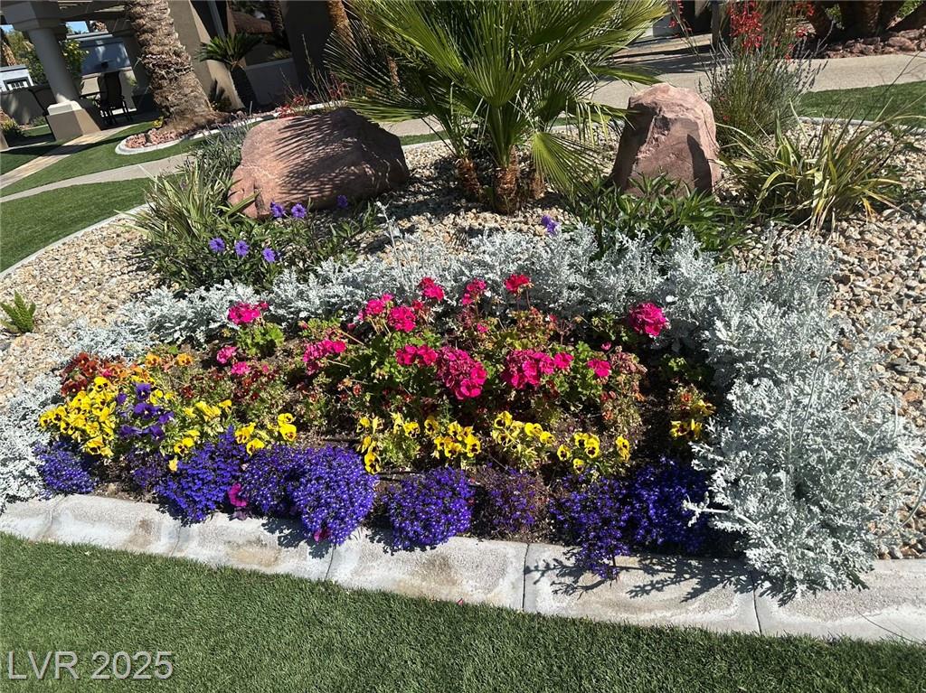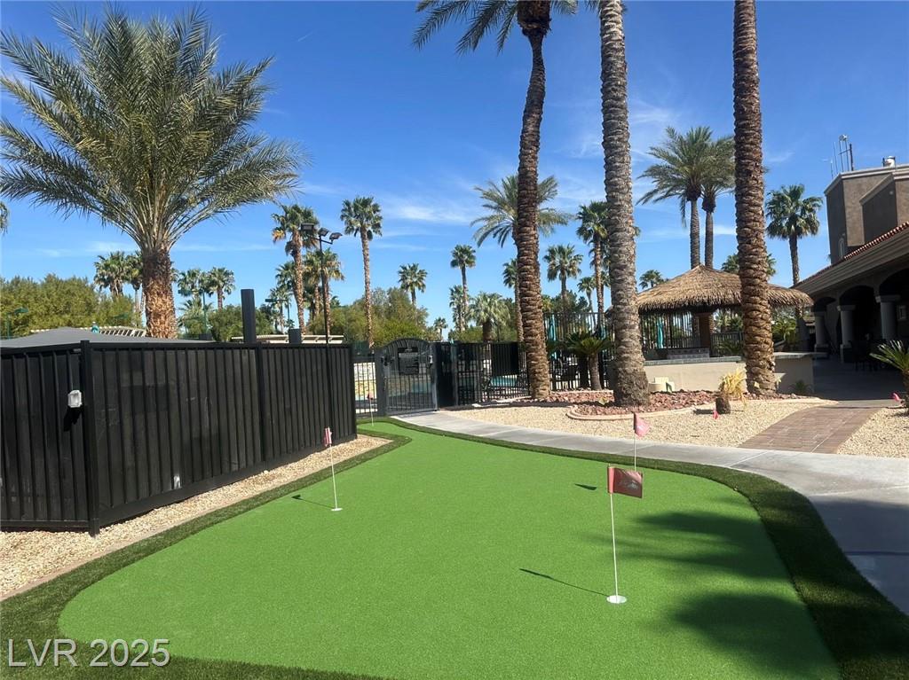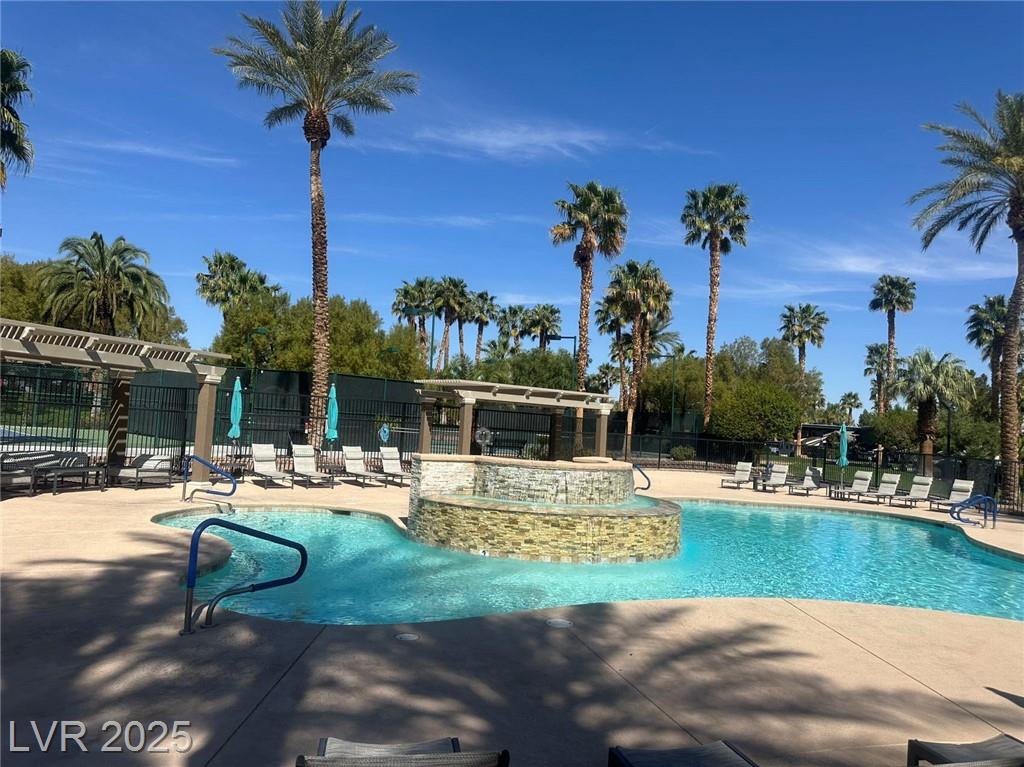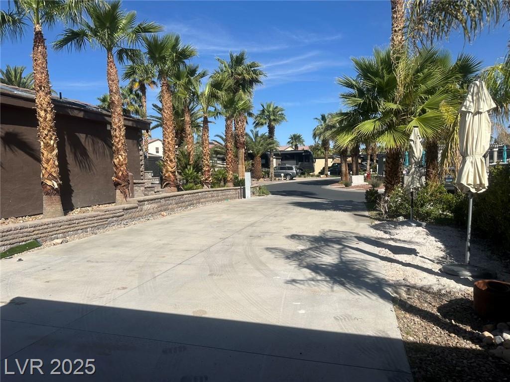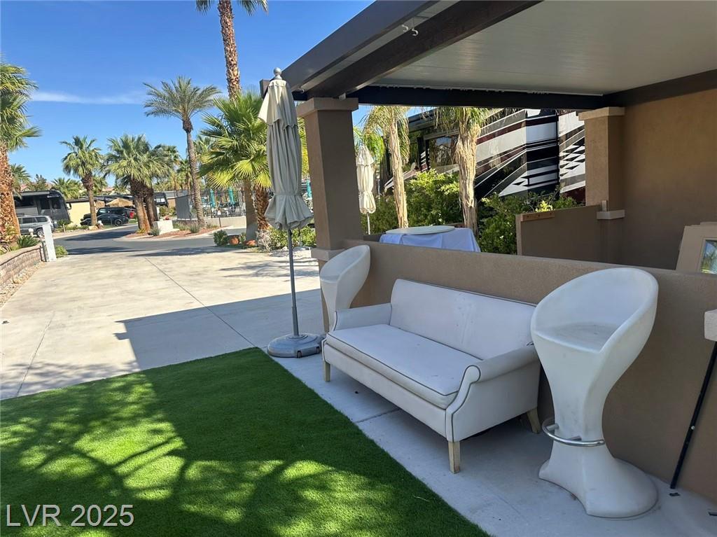 Located in the guard gated Las Vegas Motor coach Resort, this beautiful site is right across from a satellite pool! This North facing site is full of privacy and shade featuring a hard roof structure with living room area and space for an outdoor kitchen! Near the pool, pool bath room and small parking. Tons of potential for this site!