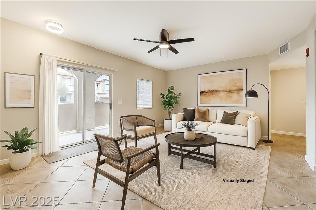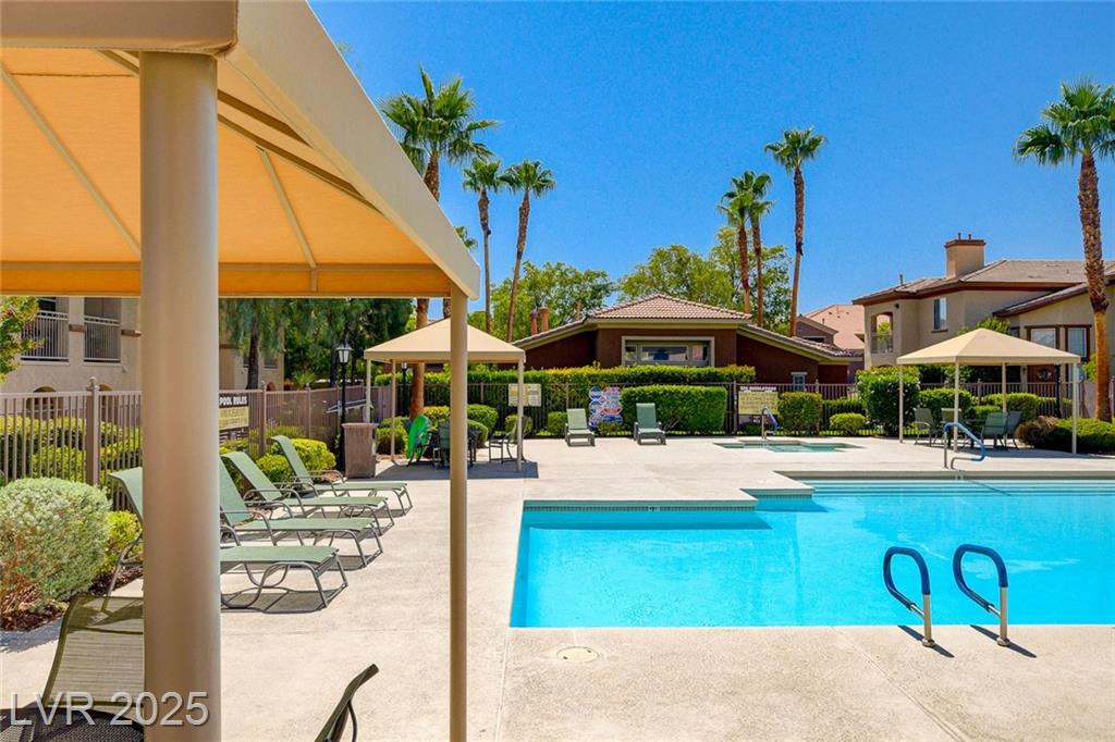 Spacious 3-bedroom, 2-bath first-floor condo in the beautifully maintained Legends community featuring resort-style amenities! This light-filled home offers an open layout, a functional kitchen with quartz countertops, stainless steel appliances, and a comfortable living space. The primary suite features a walk-in closet and private bath. Enjoy access to multiple pools, a fitness center, and manicured common areas. Conveniently located at the base of Lone Mountain, near shopping, dining, and freeway access—offering comfort, convenience, and low-maintenance living with picturesque mountain views!