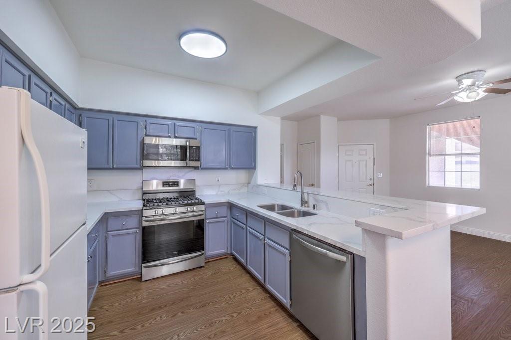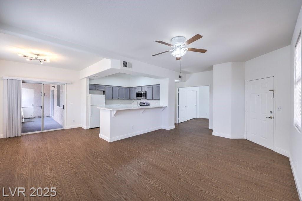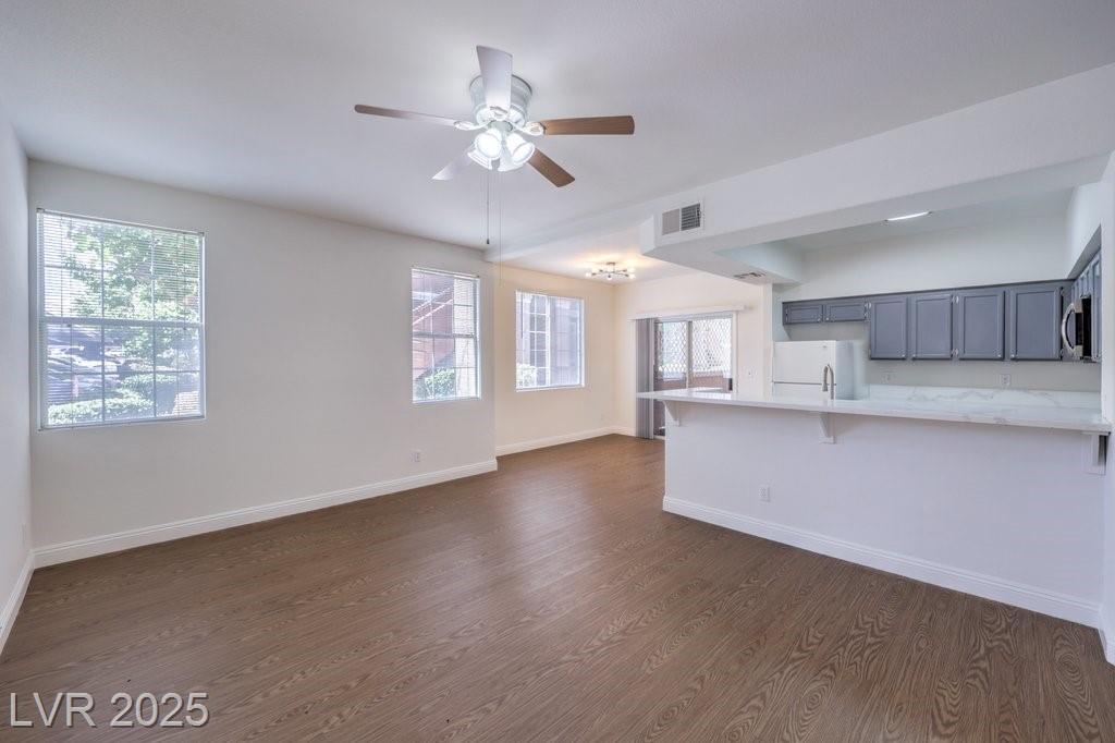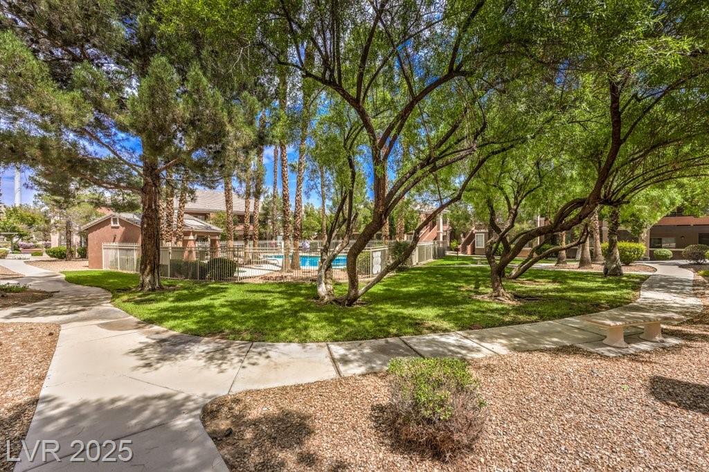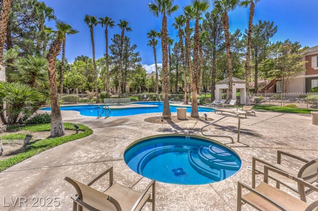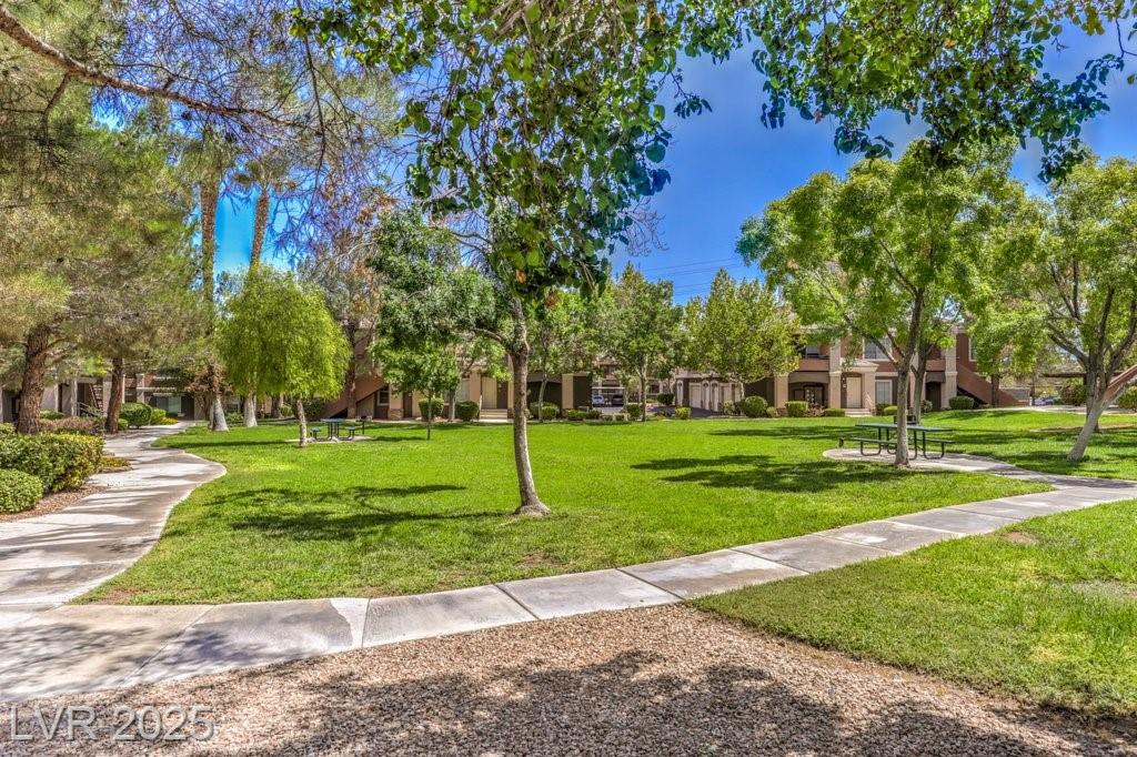 Discover resort-style living at Adagio, a sought-after condo community offering a pool, spa, fitness center, scenic walking paths, and picnic areas. Ideally located near the Summerlin border, enjoy world-class dining, shopping, entertainment, and quick access to the Las Vegas Strip. This popular first-floor corner unit includes a rare 2-car garage and brand-new interior paint that enhances the open-concept layout. The living area flows seamlessly to an 18-foot covered patio—perfect for indoor-outdoor living. The updated kitchen features sleek cabinetry, quartz countertops, a breakfast bar, nook, and stainless-steel appliances. Retreat to the beautifully remodeled primary bath with a modern, designer touch. A new 2024 AC unit ensures year-round comfort.