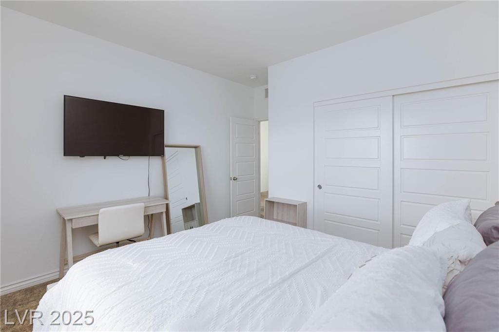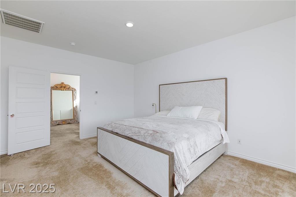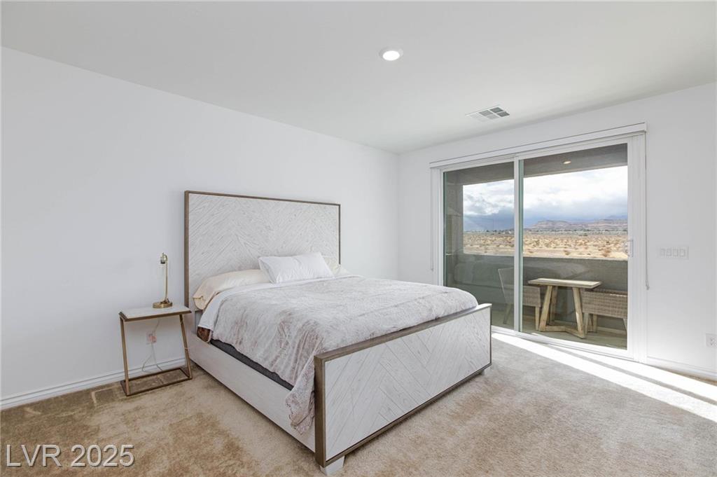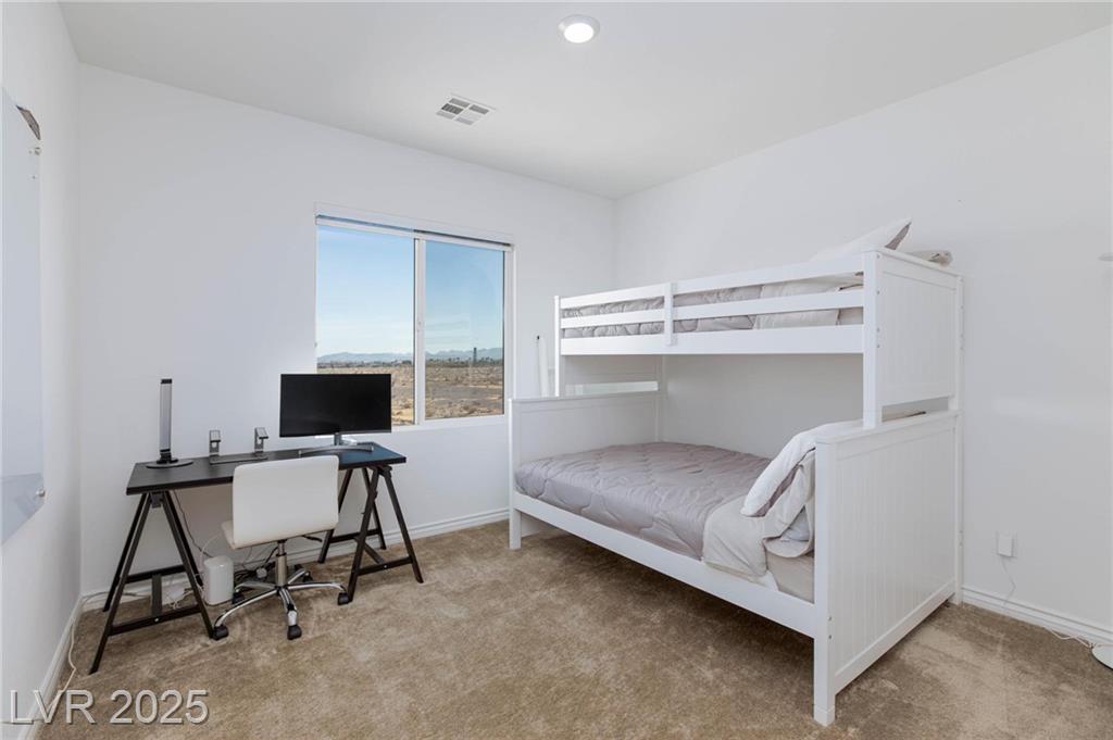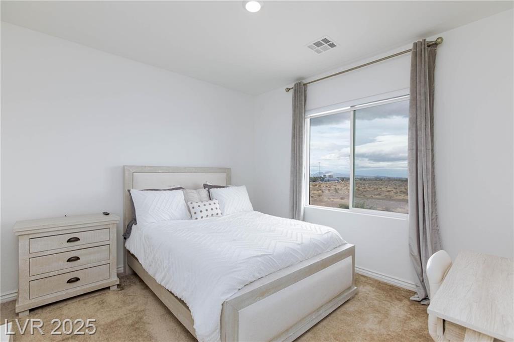 FULLY FURNISHED & MOVE-IN READY! Beautiful modern home on a cul-de-sac in a newer community with no HOA and rare long driveway. Features include open layout, 9’ ceilings, stainless steel appliances, extra fridge in garage, 80” TV, keyless entry, and Kinetico soft/filtered water system. Upstairs has 3 bedrooms with king, queen, full, and twin beds, 2 desks for work-from-home, and a new washer/dryer. Private lot with only one neighbor, Las Vegas Strip views from backyard and mountain sunsets from master deck. Security system includes 4 Ring cameras (front, driveway, side, backyard). Quiet neighborhood near Sierra Vista High School, park, 215 freeway, Durango Resort, and airport. No pets due to carpeted floors. Come see this stunning home today!