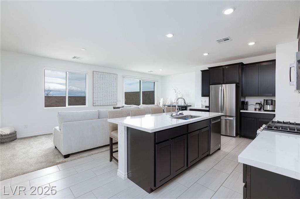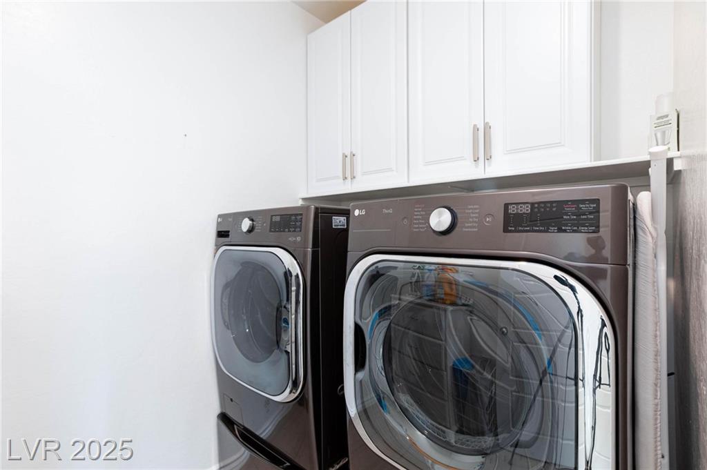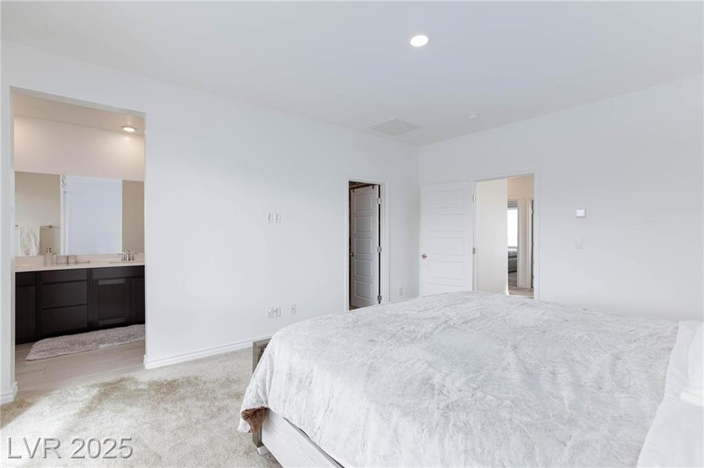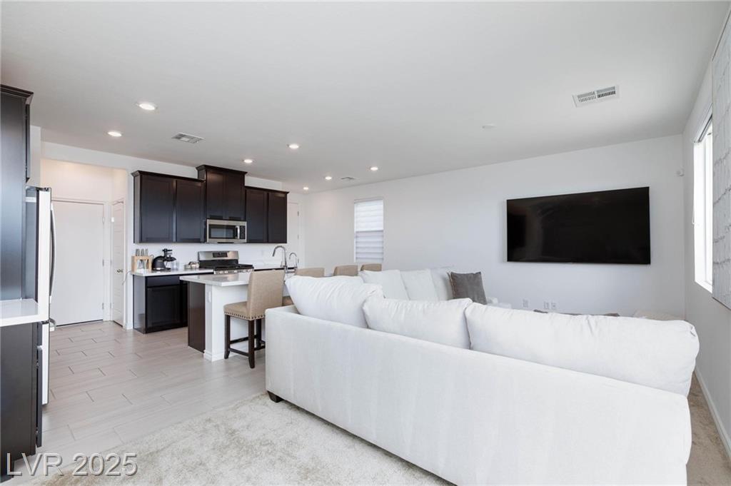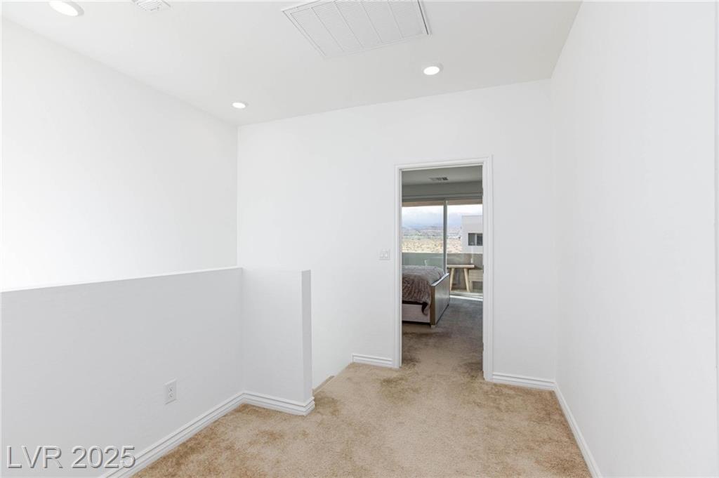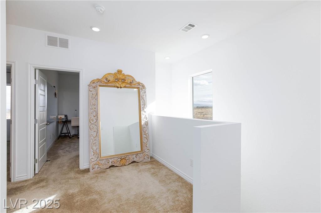 FULLY FURNISHED & MOVE-IN READY! Beautiful modern home on a cul-de-sac in a newer community with no HOA and rare long driveway. Features include open layout, 9’ ceilings, stainless steel appliances, extra fridge in garage, 80” TV, keyless entry, and Kinetico soft/filtered water system. Upstairs has 3 bedrooms with king, queen, full, and twin beds, 2 desks for work-from-home, and a new washer/dryer. Private lot with only one neighbor, Las Vegas Strip views from backyard and mountain sunsets from master deck. Security system includes 4 Ring cameras (front, driveway, side, backyard). Quiet neighborhood near Sierra Vista High School, park, 215 freeway, Durango Resort, and airport. No pets due to carpeted floors. Come see this stunning home today!