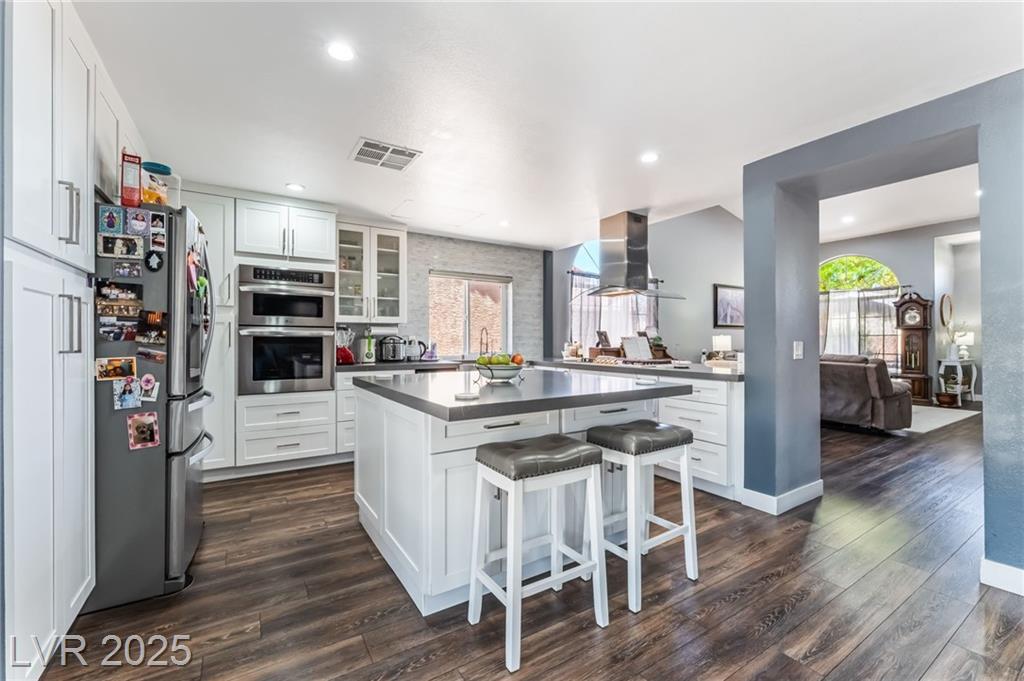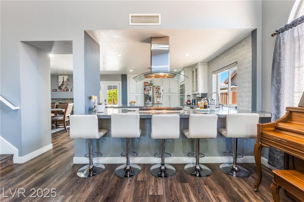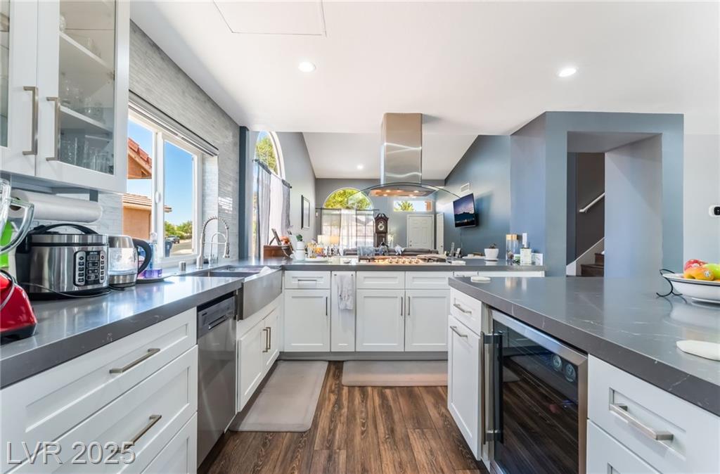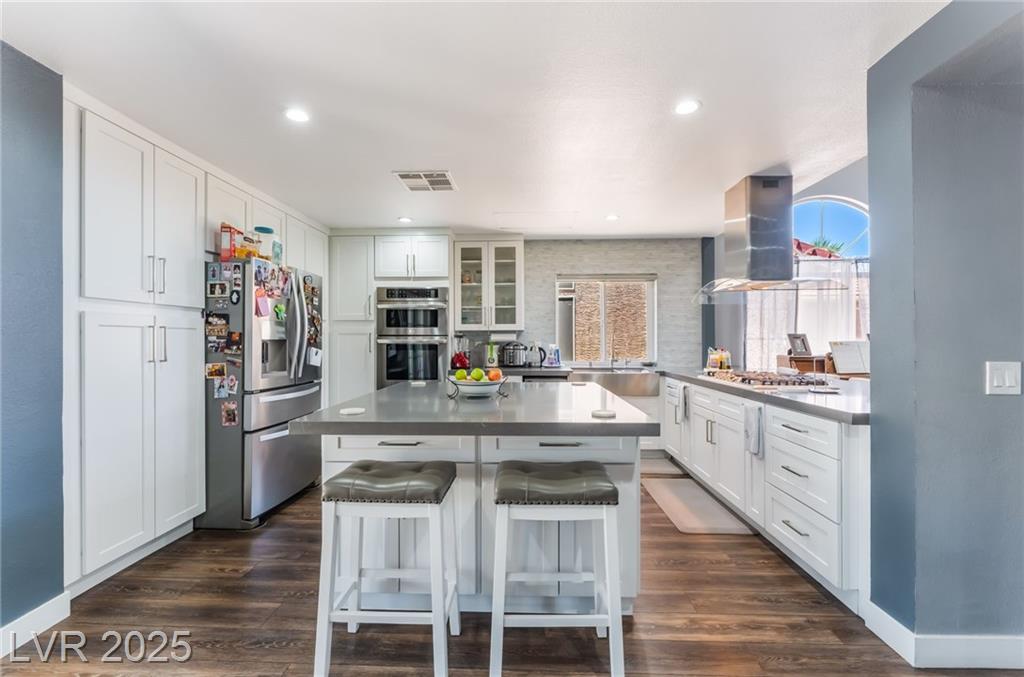 Discover the allure of this stunning home, which features remarkable upgrades that will leave you in awe. Enjoy the elegance of quartz countertops throughout the kitchen, complemented by an island with a built-in drinks cooler and a convenient breakfast bar. Equipped with stainless steel appliances, this kitchen is a chef's dream! The luxury vinyl wood-look flooring adds to the charm throughout the home. The bathrooms has been fully remodeled, enhancing the overall appeal. Step outside to the beautiful backyard, ready to welcome you and your guests. There’s also an extra storage room in the backyard and solar panels to help save on energy costs. This is a home you must see!