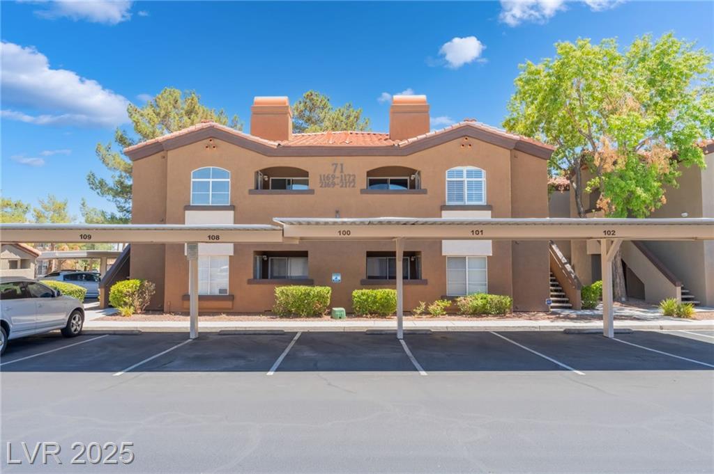 Welcome to this beautifully maintained 1 bedroom, 1 bathroom condo. The inviting living room features a cozy fireplace and opens to a private balcony, perfect for morning coffee or evening relaxation. Plantation shutters throughout add an elegant touch while providing light control and privacy. Nestled in a desirable community, you’ll enjoy access to amenities including a community pool, tennis court and fitness center. A dedicated covered parking space is also included for your convenience. Whether you're a first-time buyer, downsizing, or searching for a smart investment, this condo has it all. Opportunities like this don’t come often, schedule your private showing today before it’s gone!