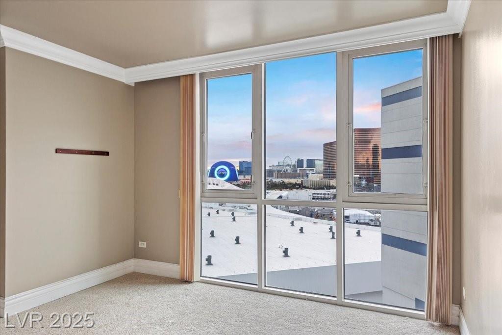 TURNBERRY PLACE – 17TH FLOOR LUXURY! Stunning 2 bed, 1¾ bath high-rise with breathtaking views of the Las Vegas Strip, the Sphere, city lights, and surrounding mountains. Located in prestigious Turnberry Place just off the Strip adjacent to Fountainbleu. This open-concept unit features top-of-the-line appliances, granite counters, custom cabinetry, and breakfast nook. It all opens to the spacious great room where you can watch the never ending displays and changes to the Sphere or the romance of sunset and the world class Strip come to life in lights through your huge picture window. The primary suite is super private and includes marble bath and custom walk-in closet and on the opposite side of the unit - a separate guest bedroom with full bath and custom closet. Enjoy world class resort-style amenities including valet/garage parking, fitness center, pool, and 24-hour security. Live elevated – see now! Base rent $3000; Sewer $29; Bene Pkg $19 Total Monthly Rate: $3048