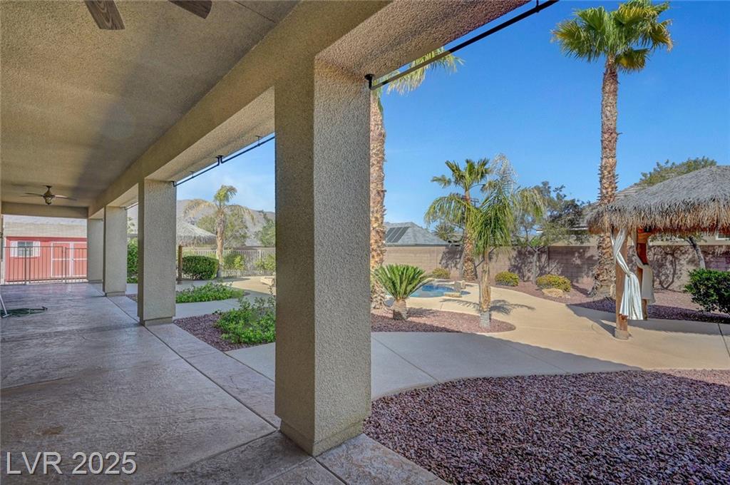 A perfect blend of space, privacy, and comfort in this move-in ready 4-bedroom, 4.5-bath home on a generous half-acre lot. Step inside to an open layout with 10’ ceilings, tile flooring leading into a chef’s kitchen featuring granite counters, double ovens, gas cooktop, walk-in pantry, and reverse osmosis system. Each bedroom is a serene retreat with its own en-suite bath and walk-in closet, ensuring family and guests enjoy ultimate privacy and comfort. The cozy ambiance of a three-way fireplace adds warmth to the living spaces, perfect for relaxing or entertaining. Recent updates include a newer AC system (40K), water service infrastructure (20K), and landscaping (12K). Outside, enjoy your oasis with a full-length covered patio, pool, RV/boat parking, and a powered workshop/shed. This home also features a front courtyard and a spacious 3-car garage with ample storage. With stunning mountain views, this property is a rare find you don’t want to miss!