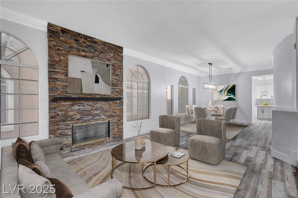 Stunning 2-Story Luxury Home in Guard-Gated Granada Hills! This beautifully upgraded 5-bedroom, 4.5-bathroom home features soaring ceilings, new luxury vinyl plank flooring, and a grand entry. The formal living/dining area includes a gas fireplace, while the chef’s kitchen boasts quartz countertops, a farmhouse sink, a large island with built-in spice rack and wine fridge, plus premium appliances. The open-concept great room includes a floor-to-ceiling feature wall and electric fireplace. All remodeled bathrooms feature quartz counters and new vanities. The oversized master suite includes a extra room and a spa-like ensuite with a freestanding tub, rain shower, and dual vanities. Outdoors, enjoy two sitting areas, a covered gazebo, and a 600+ sq. ft. pool/spa with waterfalls. This home offers the ultimate in luxury and comfort, in a prime Granada Hills location.