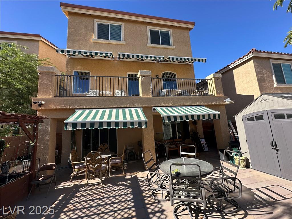 Exterior Description Back Yard Access,Balcony,Covered Patio,Shed